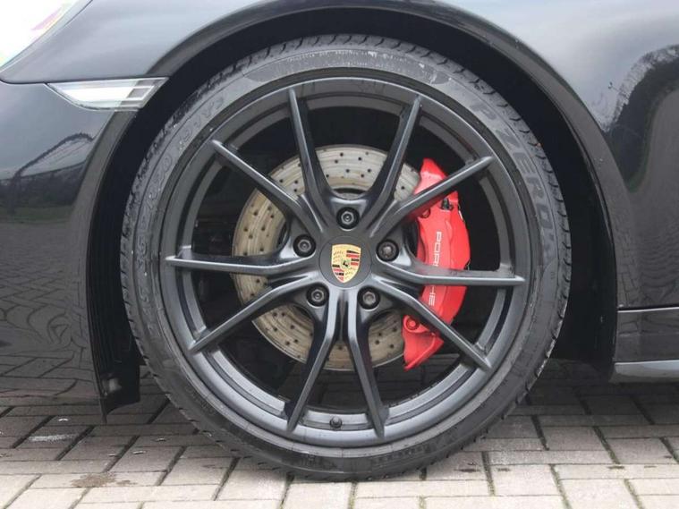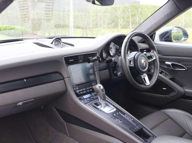 Black rev counter, Instrument cluster with high-resolution 4.6-inch TFT colour display, Mobile telephone preparation, On board computer, PCM voice control, Porsche communication management including navigation, Telephone module for PCM, Porsche stability management (PSM), Porsche TORQUE Vectoring (PTV) with mechanical rear differential lock, 2 USB ports, Auxiliary input socket, Connect Plus with Apple CarPlay, wireless internet access, Carfinder, Remote Vehicle Status and Remote Services, DAB Digital radio, SD card slot, Air blades with active cooling air flaps, Aspherical driver's exterior mirror, Automatic headlamp levelling, Automatic headlights, Automatically extending rear boot spoiler, Body coloured bumpers, Dynamic cornering light with headlamp levelling and speed sensitive driving light control, Electric windows + one touch open/close + door seal protection function, Electrically adjustable and heated door mirrors, Front lip spoiler, Green tinted heat insulating glass, Headlight range control, Headlight washers, Heated rear window, Heated windscreen washers, LED daytime running lights, Sports exhaust system, Tinted LED tail lights, Trim strips in high gloss finish, Welcome home function, Windscreen with grey top tint, 12V socket in front passenger footwell, 2 in-dash cupholders above glove compartment, Air quality sensor, Air recirculation system, Alcantara centre console main storage compartment, Alcantara door handle, Alcantara door panel armrest, Alcantara roof lining, Alcantara seat centre panels, Alcantara steering wheel rim, Centre console storage, Clothes hooks on front seat backrests, Continuously variable dimming interior light, Dual zone automatic climate control, Footwell illumination, Glovebox illumination, Ignition Lock illumination, Illuminated vanity mirrors, Illumination of luggage compartment, Interior orientation lighting, Isofix child seat preparation, LED reading lights, Manual height/reach adjust steering wheel, Pollen/active carbon filters, Rear centre armrest, Split folding rear seats, Sport design steering wheel, Steering wheel gearshift paddles, Storage compartments in doors, Sport chrono package - 911 [991] PDK, ABS, ASR + ABD, Driver/Front Passenger airbags, Electronic parking brake, Front head airbags, Front passenger airbag deactivation, Front seat thorax airbags, Front seatbelt pretensioners with force limiters, Height adjustable front seatbelts, POSIP, Red brake calipers, Tyre pressure monitoring system, Alarm system with interior radar surveillance, Anti-theft wheel bolts, Porsche vehicle tracking system (VTS), Remote control central locking, Transponder engine immobiliser, Brushed aluminium dash trim and centre console inserts, Sealing compound and compressor kit,