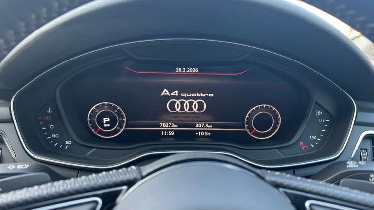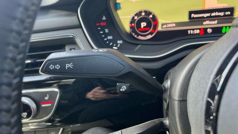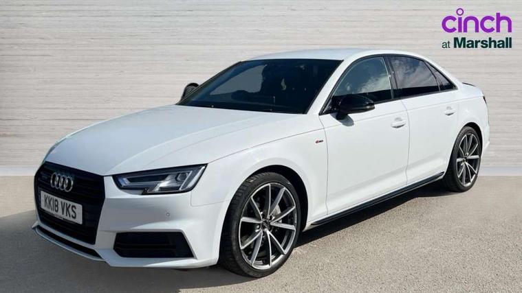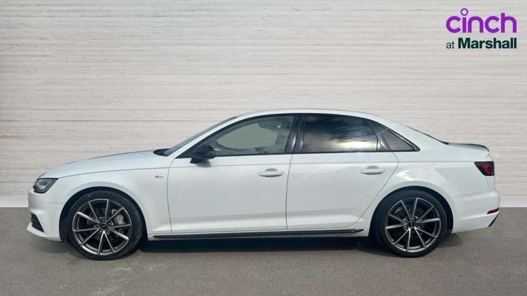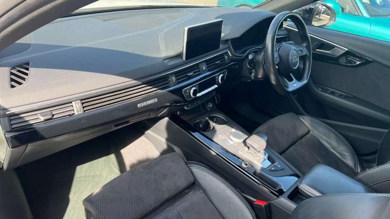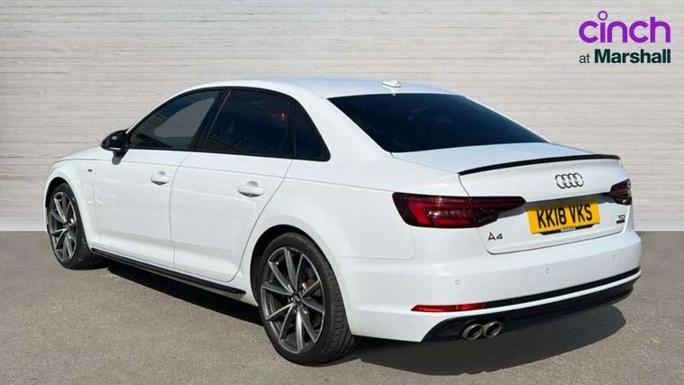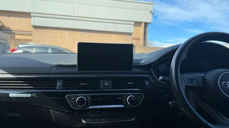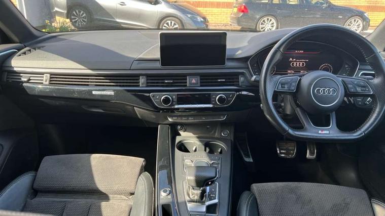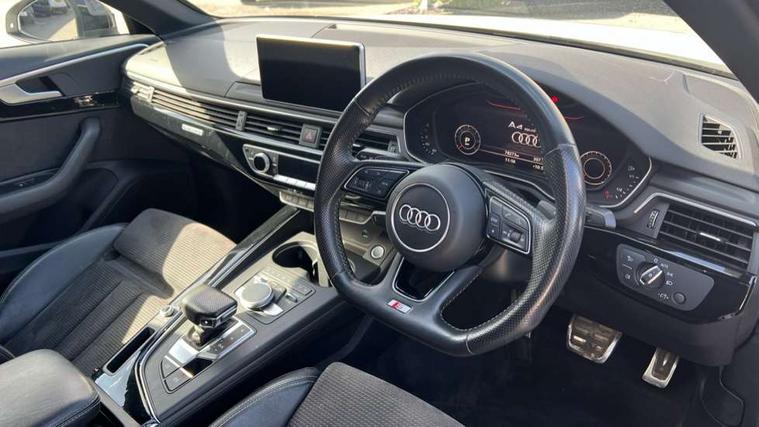 Audi drive select, Audi Pre sense collision avoidance, Audi smartphone interface, Auto boot lid opening, Colour driver's information system display, Electro-mechanical PAS, MMI SD card Navigation, Mobile telephone preparation - bluetooth interface, Service interval indicator, Stop/start button, Voice control system, 2 USB ports, Aux input, DAB digital radio module, MMI radio plus with CD player, Acoustic windscreen, Air inlets in titanium black, Auto dimming rear view mirror, Automatic headlights + automatic windscreen wipers, Body colour bumpers, Body colour door handles, Chrome rolled exhaust, Electric adjustable heated door mirrors, Electric front windows, Electric rear windows, Headlight range control, High gloss black triangular aperture at rear door, LED daytime running lights, LED indicators in door mirrors, Privacy glass with front acoustic glazing, Rain and light sensors, Rear diffuser in Twilight grey matt, Rear spoiler, 3 spoke flat bottom high multi-function leather steering wheel, 3 zone climate control, Black cloth headlining, Front centre armrest with 12v socket, Front headrests, Front/rear floor mats, Gearshift paddles, Illuminated door sill finishers, Isofix child seat preparation for front passenger/outer rear seats inc passenger airbag deactivation, Jack and tool kit, Luggage compartment carpet, Perforated leather gearknob, Reach + rake adjustable steering column, Rear headrests, Split folding rear seats, Stainless steel foot rest, Stainless steel pedals, Sunvisors with vanity mirrors, Top tether anchor plate for isofix child seat, Black styling pack - A4/S4, Non Smokers pack, S line exterior styling pack - A4 Saloon, 3 point seatbelts on all rear seats, ABS/EBD, Active bonnet, Adaptive driver and front passenger airbags, EDL + ASR, Electromechanical parking brake, ESP, First aid kit, Front head airbags, Front seatbelt pretensioners + load limiters, Front side airbags, Multi-Collision braking, Seatbelt warning, Traction control, Tyre pressure monitoring system, Warning triangle, Anti theft alarm, Keyless start, Locking wheel bolts, Remote central locking, Thatcham category 1 alarm + immobiliser, Piano black finish inlay, Space saver spare wheel,