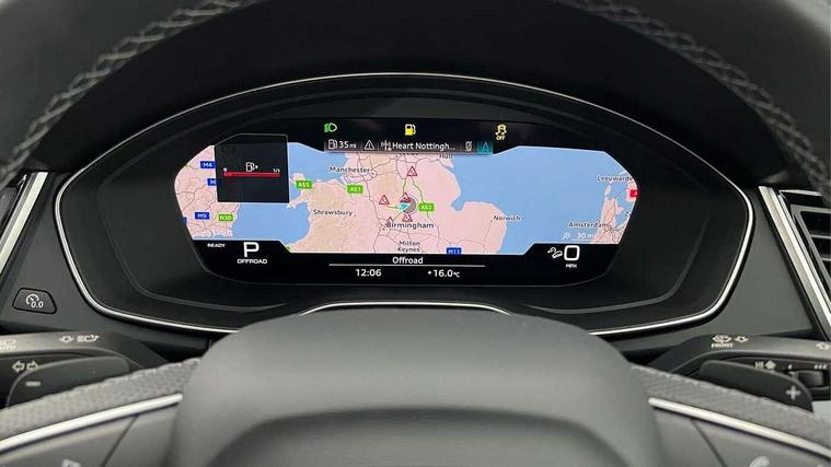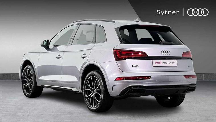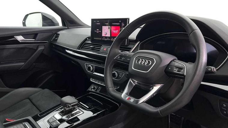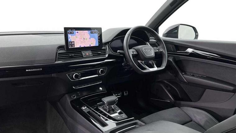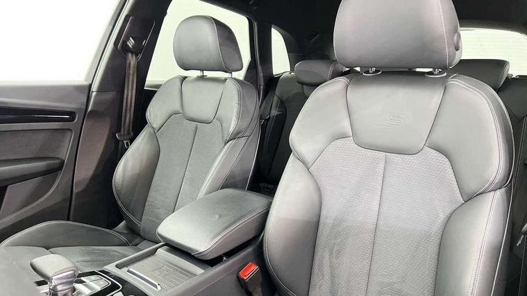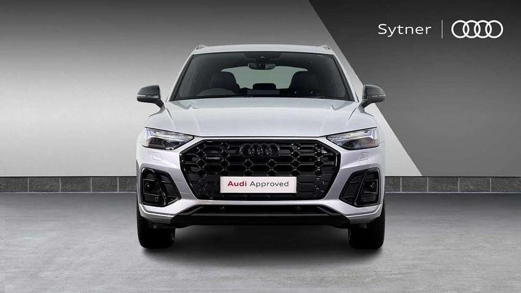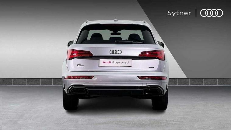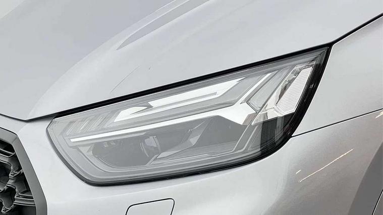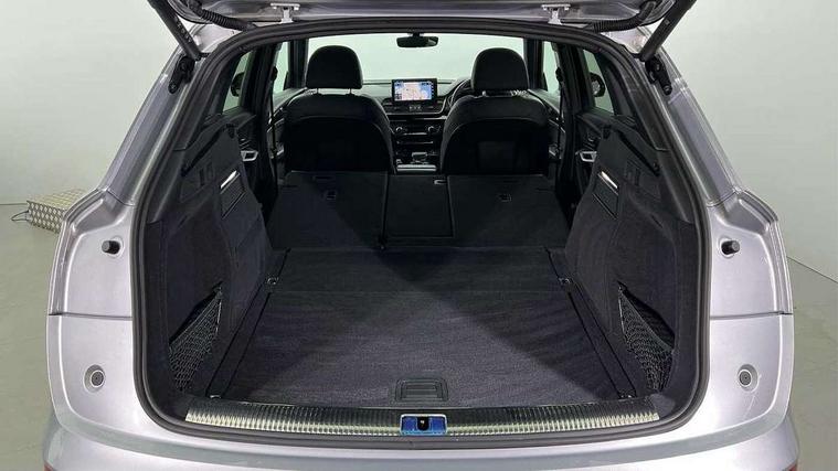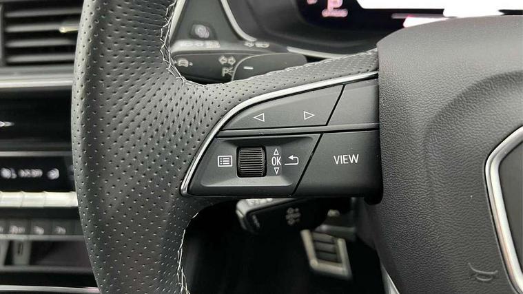 Acoustic front and rear parking sensor, Audi connect safety and service (e-call), Audi drive select, Audi virtual cockpit plus with 12.3" screen and three different layout designs, Audi wireless smartphone interface, Automatic start-stop system with coasting functionality and efficiency programme, Bluetooth interface, Camera based traffic sign recognition, Electro - mechanical power assisted steering, Lane departure warning, MMI navigation plus with 10.1" touch screen, Power tailgate, Reversing camera, Service interval indicator, Voice control system with Audi hotword activation "Hey Audi", Diesel particulate filter, Quattro on demand, S line sports suspension, 2 x USB charging port with aux input socket, 8 loudspeakers, DAB Digital radio, Acoustic windscreen, Auto dimming door mirrors, Auto dimming frameless rear view mirror, Automatic headlight adjustment, Automatic headlights and windscreen wipers, Black roof rails, Black styling with black rings, Body colour bumpers, Body colour rear diffuser with matt aluminium silver surrounds, Body colour underbody protection, Chrome plated exhaust trims, Daytime running lights, Door sills in Selenite silver, Electric adjustable/heated/folding door mirrors, Front air inlet surrounds in aluminium, Front and rear electric windows, Front radiator grille in honeycomb design, LED 3rd brake light, LED headlights and LED tail lights, Loading edge protection in stainless steel, Lower bumpers painted in contrast Manhattan grey, Rear chrome trim strip below lights, Rear privacy glass and rear side windows, Rear side wing doors, Rear wiper, Roof bars, S Line badges on the front wing panels, S Line front and rear bumpers, S Line rear spoiler, S Line side skirts, 3 rear headrests, Black cloth headlining, Comfort front centre armrest, Contrast stitching on seats, steering wheel and gear lever gaiter, Deluxe 3 zone electronic climate control, Front head restraints, Front sport seats with S embossed logo, Front/rear floor mats, Gear lever in black leather, Heated front seats, Height/reach adjustable steering column, Illuminated door sill trims with S logo, Luggage compartment cover, Manual seat adjustment with 4-way electric lumbar support, Single front passenger seat, Stainless steel pedals, Sunvisors with vanity mirrors, Top surface of the rear centre armrest in artificial leather, High gloss pack - Q5, LED interior light pack - Q5, 3 point seatbelts on all seats, 6 airbags - Driver, front passenger, curtain and side airbags, Attention and drowsiness assist, Electrically operated child locks on rear doors, Electromechanical parking brake, Electronic stabilisation control including ABS, ASR and EDL, First aid kit with warning triangle and vests, Front passenger airbag deactivation, Hill descent control, Hill hold assist, ISOFIX child seat mounting for front passenger seat and ISOFIX child seat mounting with Top Tether for outer rear seats, Multi collision brake assist, Pop-up bonnet for pedestrian protection, Pre sense city, Seatbelt monitoring, Tyre pressure warning, Anti theft alarm, Anti-theft wheel bolts, Remote central locking, Remote control key with SAFELOCK and keyless go, Air vents inserts and centre console in gloss black, Tool kit, Tyre repair kit,