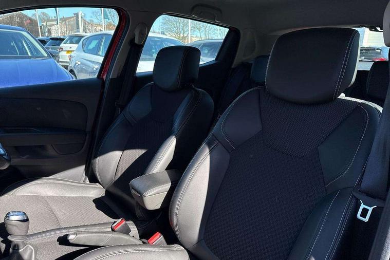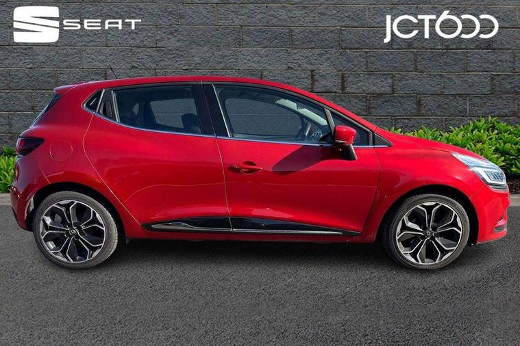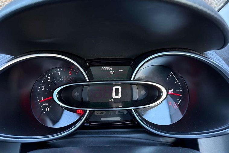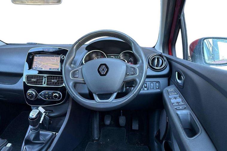 Cruise control + speed limiter, Eco mode, Push button starter, Smartphone cradle, Trip computer, Variable PAS, Aux-in socket, DAB Digital radio, Automatic headlights + automatic windscreen wipers, Black headlamp surrounds, Body colour door handles, Body coloured bumpers, Body coloured rear spoiler, Chrome tailgate decoration, Chrome window surround, Electric adjustable door mirrors, Electric folding door mirrors, Electric front windows + one touch + anti-pinch, Electric rear windows, Front fog lamps, Gloss black door protectors with chrome inserts, Heated door mirrors, LED daytime running lights, LED Headlights, Rear wiper, Variable front intermittent wipers, 12V Accessory socket, 3 rear height adjustable headrests, 60/40 split rear seats, Air recirculation control, Auto climate control, Chrome gear knob insert, Chrome interior door handles, Driver's seat height adjustment, Front centre armrest with storage compartment, Front cupholders, Front door storage bin, Glovebox, Height adjustable front headrests, Height/reach adjust steering wheel, Isofix system on outer rear seats, Leather steering wheel, Multi function steering wheel, Pollen filter, System for Restraint and Protection SRP-front seats, 3 point seatbelts on all rear seats, ABS+EBD+Brake assist, Driver and passenger front and side airbag deactivation, Driver/Front Passenger airbags, Driver/front passenger side airbags, ESP + Traction control + Understeer control, Front side airbags(head+thorax), Height adjustable driver's seatbelt, Hill start assist, Seatbelt warning, Tyre pressure warning, Anti-drill door locks, Child lock control of rear doors and windows, Deadlocking system, Hands free Renault card, Locking fuel filler cap, RAID (Renault Anti-Intruder Device) with automatic door locking, Remote central locking, Thatcham Cat 2 engine immobiliser, Gloss black centre console, Gloss black dashboard inserts,