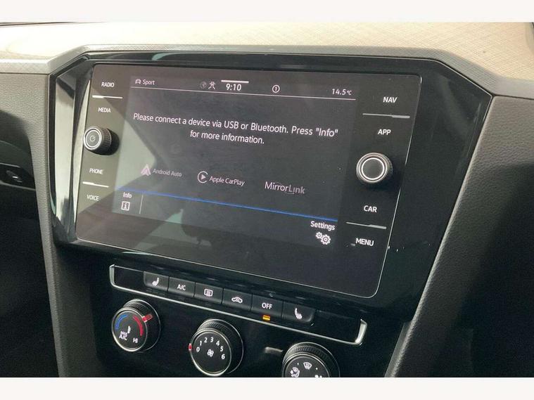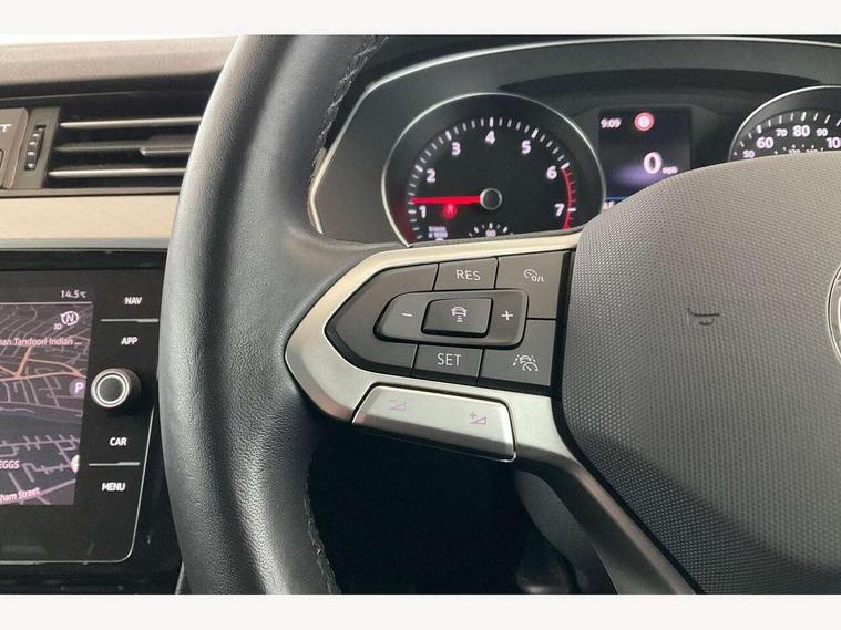 Adaptive cruise control including Front Assist, radar sensor controlled distance monitoring system, City emergency braking system, Driver alert system, Driver profile selection, Exterior temperature gauge with frost alarm, Lane assist, Low washer fluid warning light, Multifunction computer includes visual gear, One touch indicator turn signal, Proactive occupant protection, Remote tailgate unlocking, Security and service including e-call, Speed sensitive power steering, Speedo and rev counter, electronic odometer, trip, service interval display and fuel gauge, Start/Stop function, Traffic jam assist, Voice activation, Warning buzzer and light for front seatbelts unfastened, Battery regeneration during braking, Misfuel prevention device, Petrol Particulate Filter, Aerial for radio integrated into rear windscreen, DAB Digital radio receiver, Auto dimming interior rear view mirror, Automatic headlights with dusk sensor, Automatic leaving home and manual coming home lighting functions, Black radiator grille with chrome louvres, Body colour bumpers, Body colour door handles, Body coloured door mirrors with intergrated indicators, Chrome side window surrounds, Front and rear electric windows, Fully galvanised body, Gloss black finish on B pillar, Heated rear window, High level 3rd brake light, LED rear lights, LED rear number plate lights, Rain sensor, Rear side wing doors, Rear tinted glass from B pillar backwards, approx 65% tinted, Remote electrically adjustable and foldable heated door mirrors including automatic dimming function on drivers side door mirror puddle lights, Warning lights for open tailgate and doors, White instrument lighting, Windscreen wipers/ intermittent wipe + 4 position delay, 12V socket in front centre console, 12V socket in luggage compartment, 3 seat bench in 2nd row, 60:40 split folding rear seat with backrest, Driver's door storage compartment for 1.0 litre bottle, Front + rear carpet mats, Front and rear interior lighting with delay and dimming function, Front centre armrest with storage compartment and two rear air vents, Front cupholders x2 with covers, Front passenger storage compartment for 1.5 litre bottle, Height adjustable rear seat head restraints (x3), Height/reach adjust steering wheel, Illuminated vanity mirrors, Isofix child seat preparation, outer rear seats, Load lashing points x 4 in luggage compartment, Load through provision, Lockable, illuminated, cooled glovebox, Luggage compartment lighting, Rear seat centre armrest with storage compartment, Single front passenger seat, Storage compartment in rear doors, Storage compartment in roof console with cover, Three spoke leather trimmed multifunction steering wheel with gear knob, Vienna leather upholstery + heated front seats + heated windscreen washer jets, 3x3 point rear seatbelts, ABS (Anti locking brake system) includes BAS (Brake assist) and EBD (Electronic brake pressure distribution), Automatic post collision braking, Disc brakes front and rear, Door open warning reflectors, Driver/Front Passenger airbags, Drivers and front passengers safety optimised head restraints, longitudinal and height adjustable, Drivers knee airbag, Electronic parking brake with auto hold, First aid kit, Front and rear passenger curtain airbags, Front passenger airbag deactivation switch, Front side impact airbag, Height adjustable front 3 point seatbelts + pretensioners, Hill hold function, Pre crash preventive occupant protection, Rear door child safety locks, Rear seat side impact airbags, Rigid safety cell with front and rear crumple zones, Tyre pressure loss indicator, Volkswagen roadside assistance, Warning light for rear seat belts if unfastened, Alarm with interior protection and deactivation via infotainment system, Electronic engine immobiliser, Chrome air vent and instrument surround, Cross hatch decorative inserts in dash and door panels,