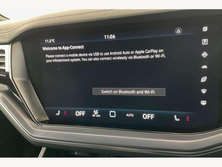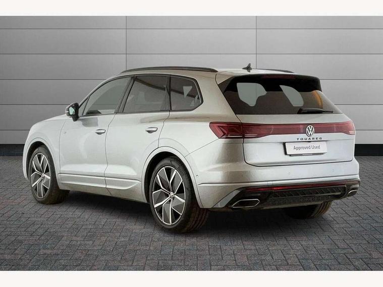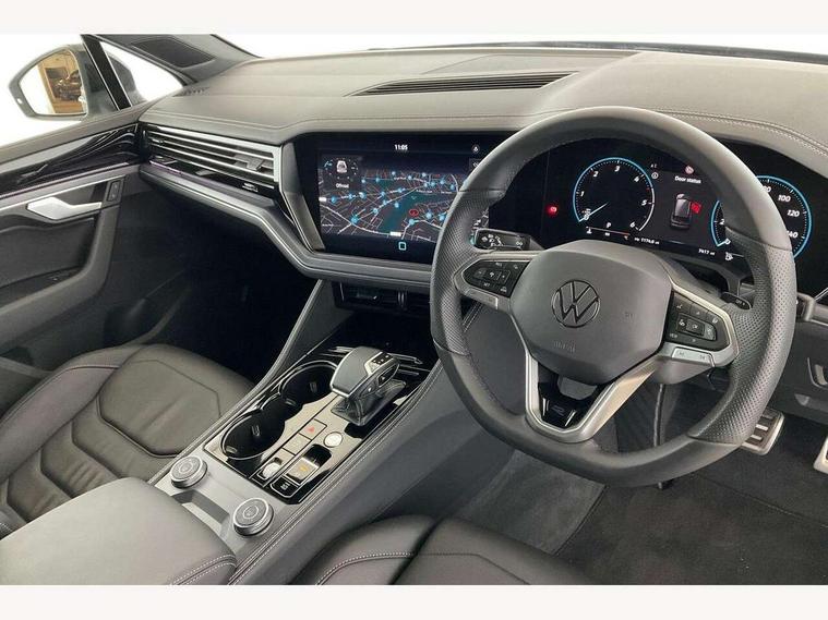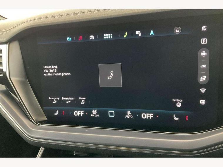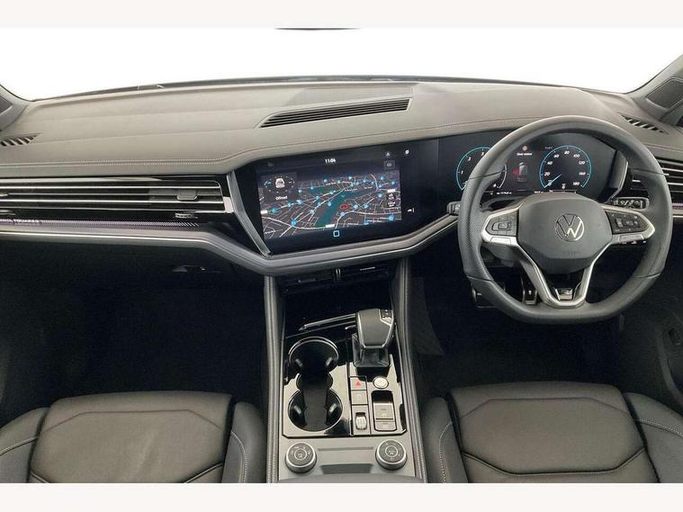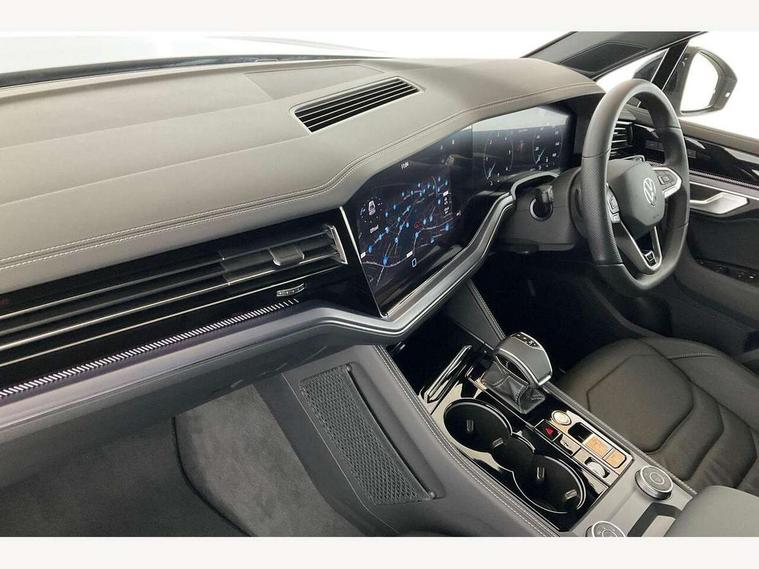 15" Screen Top infotainment system Premium (MIB3), Adaptive cruise control, Advanced driver attention and drowsiness monitor, Driver profile selection, Dynamic road sign display, E-Sim card for online connectivity, eCall emergency system, Innovision cockpit, Intelligent park assist, Mobile phone interface with inductive charging, Multi-colour Active Info display, Park Assist - Sensor controlled steering aid to assist parallel or bay parking, PAS, Warning signal and warning light for front and rear seatbelts not fastened, Wireless app connect, Adaptive chassis control, DAB Digital radio, Diversity antenna for AM/ FM reception, We Connect and We Connect Plus functionality, Automatic coming/leaving home lighting function, Automatic headlights, Black door mirrors, Black style comfort bumpers, Dynamic headlight range control with dynamic cornering light, Electric front tilt/slide panoramic sunroof and fixed rear sunroof, Electrically power adjustable, heated, folding, auto dimming, front passenger exterior door mirror lowering function, External USB type C socket and charging sockets, Gloss black roof rails, HD LED Matrix beam plus digital headlight projection with variable light distribution, Headlight washers, Highway light, LED 3rd brake light, LED daytime running lights, LED rear combination lamp with variable lighting functions and special styling, Poor weather light, Rain sensor, Rear exhaust tailpipe, Rear fog light with back up light on both sides, Rear light bar and illuminated logo, Rear side wing doors, Rear wiper, Stainless steel door sill protection, 12V socket in centre console, 3 rear headrests, 3 seat bench in 2nd row, 4 zone climate control, Airbag label on sun visor and B-pillar, Brushed stainless steel pedals, Double sun visors with illuminated vanity mirrors, Front + rear carpet mats, Front centre armrest, Leather wrapped multifunction sports steering wheel, heated, with touch control and shift paddles, Mechanical rear seat release, Power adjustable lumbar support in front, Power seats in front, right side with memory features and seat cushion depth adjustment, Rear seat backrest and split folding with center armrest, Single front passenger seat, Memory pack plus - Touareg, 3 point seatbelts, outer rear with ECE lable, ABS, Child locks on rear doors, Curtain airbags, Driver and front passenger safety-optimised head restraints, Driver/Front Passenger airbags, Extended pedestrian protection measures, Front assist, Front seat side impact airbags, Generative braking with start and stop system, Height adjustable 3 point front seatbelts with pre tensioners, Passenger airbag deactivate switch, Three 3 point rear seatbelts, Two tone horn, Warning triangle and first aid kit, Alarm system with interior protection, Easy open and close sensor controlled luggage compartment opening and closing with remote unlocking, Keyless Access Keyless locking and starting system with SAFELOCK, Aluminium decorative inserts, Black decorative trims, Gloss black decorative inserts in centre console, Tool kit,