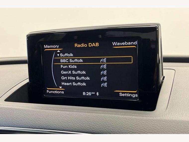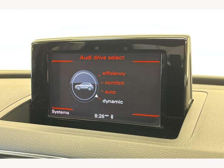6.5" colour display screen, Audi drive select, Cruise control, Low washer fluid indicator, MMI - Multi Media Interface control system, On board computer, PAS, Remote electric boot opening/closing, Service interval indicator, Voice control system, Diesel particulate filter, Audi music interface, DAB digital radio module, Acoustic windscreen, Aluminium window surround, Auto dimming rear view mirror, Body colour door mirrors, Body coloured bumpers, Chrome exhaust tailpipe, Chrome fog light surround, Chrome grille, Coming home function, Door mirror integrated indicators, Front and rear electric windows, Front fog lights, Heated windscreen washer jets, High beam assist, LED daytime running lights, LED headlights with headlight washers, Light and rain sensor for auto activation of lights and windscreen wipers, Loading sill protector in stainless steel, Privacy glass, Rear wiper, S Line body styling, Sunband for windscreen, Towbar preparation, 12V socket in rear centre console, 3 spoke multi-function Q design steering wheel with paddle shift, Aluminium door sill trims, Black cloth headlining, Dual zone climate control, Electric front lumbar adjustment, Front and rear headrests, Front and rear velour floor mats, Front centre armrest with storage compartment and angle adjustment, Front sports seats, Height/reach adjust steering wheel, ISOFIX on front passenger and rear outer seats, Jack and tool kit, Perforated leather gearknob, Retractable luggage cover, Split fold rear seat, Under floor storage in luggage area, 3x3 point rear seatbelts, ABS+Electronic Brake force Distribution, Curtain airbags, Driver and passenger airbags, Driver and passenger side airbags, EDL + ASR, Electrically operated child locks on rear doors, Electromechanical parking brake, ESP, First aid kit, Front passenger airbag deactivation, Seatbelt warning light, Tyre pressure monitoring system, Warning triangle, Locking wheel bolts, Remote central locking, Thatcham category 1 alarm + immobiliser, Matt brushed aluminium fascia and door trim inlays,