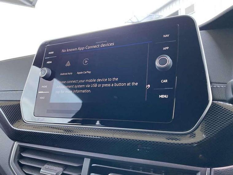 'Lights On' Reminder warning buzzer, 10.25" Digital cockpit pro, Advanced driver attention and drowsiness monitor, Bluetooth telephone and audio connection for compatible devices, Car information display, Driver profile selection including ECO function, Dynamic road sign display, E-Sim card for online connectivity, eCall emergency call system, Front and rear parking sensors, Front assist, forward collision warning, autonomous emergency braking and speed limiter, Low washer fluid warning light, Multifunction computer with visual gear change recommendation for fuel consumption, Multifunction front facing camera for distance control, Operating permit alteration, Power assisted steering, Predictive adaptive cruise control, Preparation for navigation system with media and internet package, Preparation for We connect and We connect plus, Semi-automated driving assistance, travel assist including lane keeping system Lane Assist and emergency assisst, Side assist, Speedo, rev counter, electronic odometer, trip, service interval display, exterior temperature and fuel gauge, Warning sound and light for doors and tailgate open, Warning sound and light for front seatbelts unfastened, Wireless Car net app connect with Apple CarPlay, combined functionality of Apple CarPlay/Android Auto and MirrorLink, Wireless charging, Misfuel prevention device, Start-stop system with battery regeneration (recuperation - energy recovery during braking), 2 USB C ports in front, 2 USB charging sockets on the centre console in the rear charging capacity upto 45W, DAB Digital radio receiver, Diversity antenna for FM reception, Multi device interface (MDI) with USB connection, Music playback - MP3, WMA and AAC files, Radio, Automatic dimming interior rear view mirror, Automatic hazard lights activation under emergency braking, Automatic headlight control with LED separate daytime running light and coming home and leaving home feature, Body colour door handles, Body coloured bumpers, Dynamic headlight range control with self adjusting whilst driving, Electric folding door mirror, adjustable, heated with front passenger exterior mirror lowering function, Exterior mirrors convex on the left and aspherical on the right, Front and rear electric windows, Front door sill protectors with R-Line logo, Galvanised body, Heat insulating and laminated safety glass windshield, Heat insulating darkened glass in side and rear windows, High Beam Assist, automatic sensing for switching between dipped and main beam, LED rear combination lights, LED third brake light, Lower door sills and door pillars in black, Rain sensor, Rear fog light on one side, reversing light on both sides, Rear side wing doors, Rear window aerial, Rear window wiper with intermittent control, Reflectors in all doors, Scuff plates, Tailgate with integrated roof spoiler, 12V Accessory socket in centre console, 2 Front and rear reading lights incorporating LED technology, 3 rear head restraints, 3 seat bench in 2nd row, 60/40 split folding rear seat backrest, Air care climatronic 2 zone air conditioning system, Ambient lighting, Brushed stainless steel pedals, Chrome plated radiator grille inserts, air vent surrounds and light switch surrounds, Cloth upholstery, Comfort front sport seats, Door and side trim panel, Driver and front passenger sunvisor with vanity mirror, Dust and pollen filter, Front + rear carpet mats, Front centre armrest with storage compartment, Front footwell illumination, Front seat back storage pockets, Glove compartment door with light, Heated front seats, Heating and fresh air system with 4 stage blower, Height/reach adjust steering wheel, Instrument lighting white adjustable panel illumination, Interior light with switch off delay and dimmer, Isofix anchors for child seats on outer rear seats and front passenger seats, Leather gearshift handle, Leather wrapped multifunction steering wheel, Luggage compartment floor, Luggage compartment lighting, Manual front seats with height adjustment, Padded dashboard, Removable luggage compartment cover, Single front passenger seat, Storage compartment in drivers and front passengers door, Titanium black roof lining, Unsplit sliding rear seat bench, Without drawers under front seats, 3 point outer rear seat belts with ECE label, 3 Point seatbelt for centre rear seat, Anti-lock Braking System (ABS) with Hydraulic Brake Assist (HBA), Automatic post collision braking system, Disc brakes in front, Disc brakes in rear, Driver and front passenger safety-optimised head restraints, Drivers and Front Passengers airbags with front passengers airbag deactivation switch, ESC with EDL and ASR (traction control), Extended and predictive pedestrian/cyclist protection, Front and rear passenger curtain airbag system including front side airbags, Height adjustable front 3 point seatbelts + pretensioners, Hill start assist, Pre crash preventive occupant protection, Proactive passenger protection system in combination with front assist, Rear door child safety locks, Rigid safety cell with front and rear crumple zones, Single tone horn, Tyre pressure loss indicator, Volkswagen roadside assistance, Alarm with interior protection, Anti theft alarm system, Electronic engine immobiliser, Remote tailgate unlocking using key fob, Titanium Black Decorative inserts - R Line, Low rolling resistance tyres,