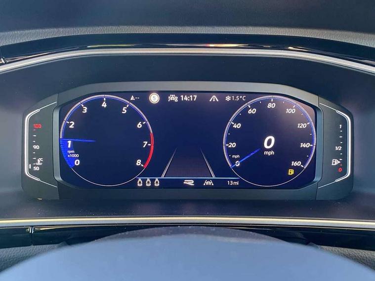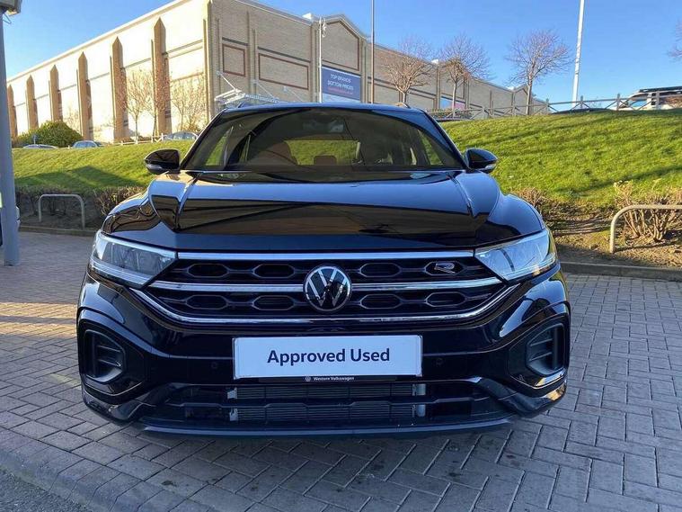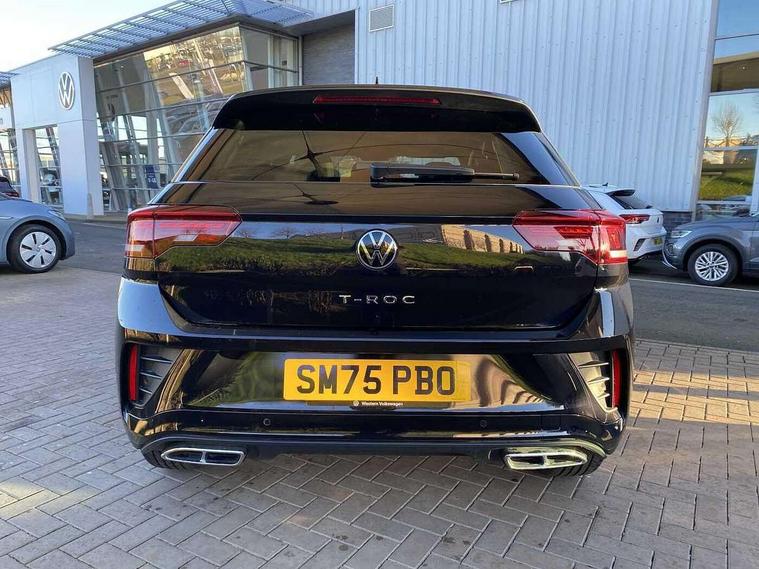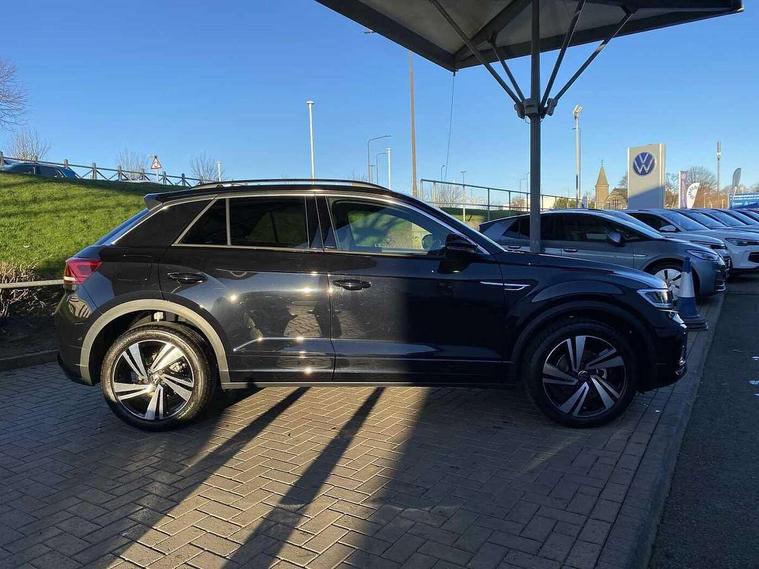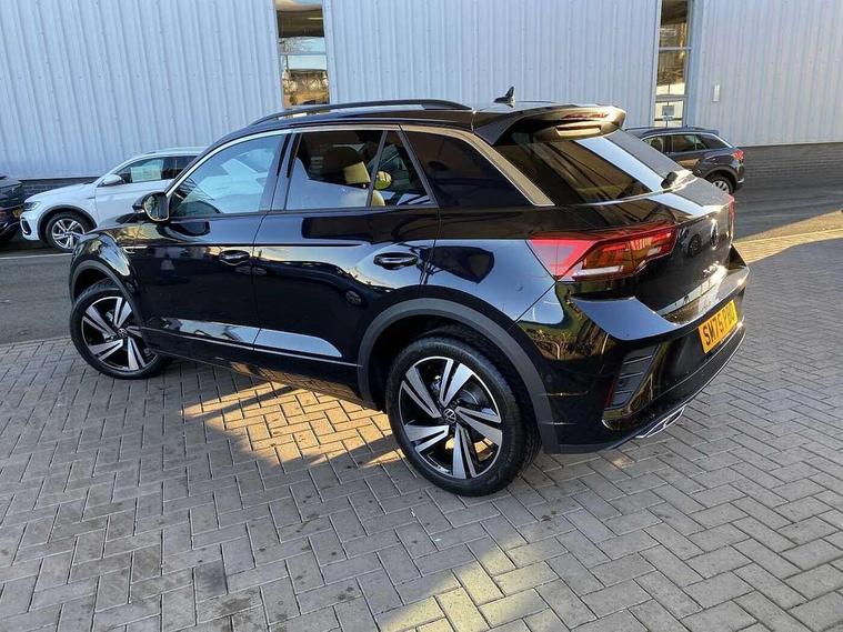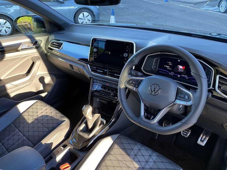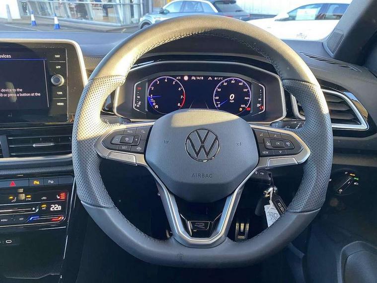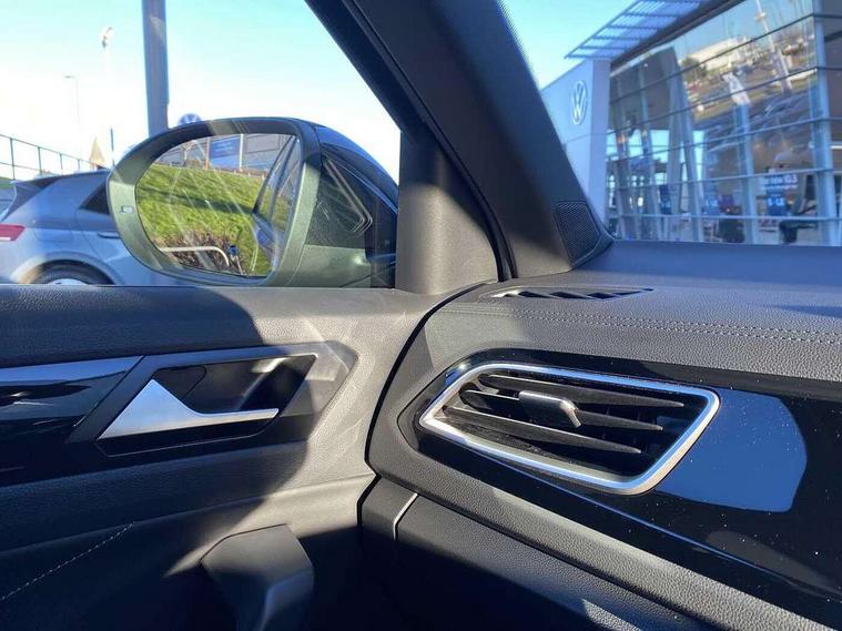 10.25" Digital cockpit pro, Advanced driver attention and drowsiness monitor, Emergency call service, Lane keeping system Lane Assist, Mobile phone interface, Modified key software - reduce switch off time for key status change to Long no motion, Online services, Park assist including front and rear parking sensors, Service interval indicator, Tailgate/trunk lid release from outside, Think blue trainer driver tips and journey analysis, Warning sound and light for front seatbelts unfastened, Wireless app connect, Battery regeneration during braking, Start/stop function with battery regeneration, DAB Digital radio, Diversity antenna for FM reception, Front and rear 6 speakers, Music playback - MP3, WMA and AAC files, Premium USB cable in choice of either Apple or Android smartphone compatibility, SD card slot, Simultaneous pairing of 2 compatible mobile devices, Title and cover art display, We Connect and We Connect Plus functionality, Auto dimming interior rear view mirror, Automatic hazard lights activation under emergency braking, Automatic headlight control with LED separate daytime running lights with coming/leaving home function, Body coloured exterior mirror housings and door handles, Electrically adjustable and heated door mirrors, Extended roof spoiler, Exterior mirrors aspherical on driver side, convex on front passenger side, External USB type C socket and charging sockets, Front windscreen wiper with intermittent wipe and 4 position delay, Heated rear window, LED 3rd brake light, LED rear combination lamps, LED rear number plate lights, Power windows with comfort operation and circuit breaker, Privacy glass for rear side windows and rear window, R-Line design body coloured bumpers, Rain sensor, Rear exhaust tailpipe, Rear fog light on one side and reversing lights on both sides, Rear side wing doors, Rear wash/wipe with intermittent wipe setting, Remote electrically foldable door mirrors, puddle lights and reverse activated passenger's door mirror, 12V power socket in centre console, 3 rear head restraints, 3 seat bench in 2nd row, 4 load lashing points in luggage compartment, Air care climatronic air conditoning system with active combination filter and 2-zone temperature control, Black roof lining, Chrome plated decorative trims, Chrome plated radiator grille inserts, air vent surrounds and light switch surrounds, Door and side trim panel with leatherette insert, Front + rear carpet mats, Front centre armrest, Front cupholders x 2, Front footwell illumination, Front reading light, Front scuff plates with R Line logo, Front seat back storage pockets, Glove compartment door with light, Instrument lighting, white adjustable panel illumination, Interior ambient lighting and surround lighting, Interior light delay, Isofix child seat preparation, Leather gearshift handle, Load-through provision with cup holder when folded down ('Unsplit rear seat bench, split folding backrest, with centre armrest), Luggage compartment lighting, Single front passenger seat, Stainless steel pedals, Storage compartment in left and right luggage area, Storage compartment in rear doors, Storage compartments in driver and front passenger doors, Sunvisors with illuminated vanity mirrors, Variable boot floor, height adjustable and removable, Driver assistance pack without proactive passenger protection - T-Roc, 3 point height adj front seatbelts + pretensioners, 3 point seatbelts in outer rear with ECE label, ABS, Child locks on rear doors, City emergency braking and pedestrian monitoring, Driver and front passenger airbag with front passenger airbag deactivation, Driver and front passenger safety-optimised head restraints, Drivers seatbelt reminder, Electronic parking brake, Electronic Stability Control (ESC) inc EDL (Electronic Differential Lock) and ASR (Traction Control), Front and rear passengers curtain airbag system including front side airbags, Hill start assist, Predictive pedestrian protection, Rear disc brakes, Two tone horn, Tyre pressure loss indicator, Volkswagen roadside assistance, Piano black decorative inserts in dashboard and front door trim panels, Trims for alloy wheels,