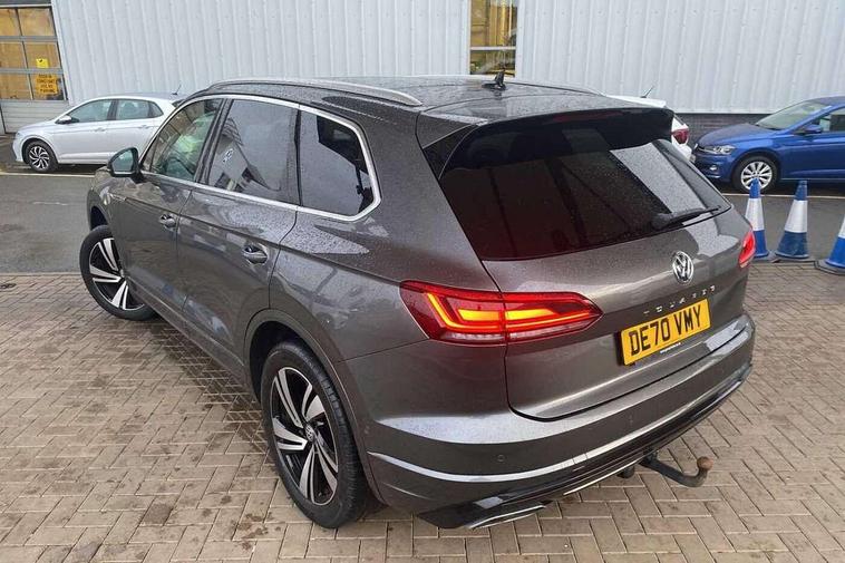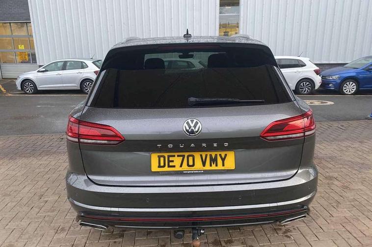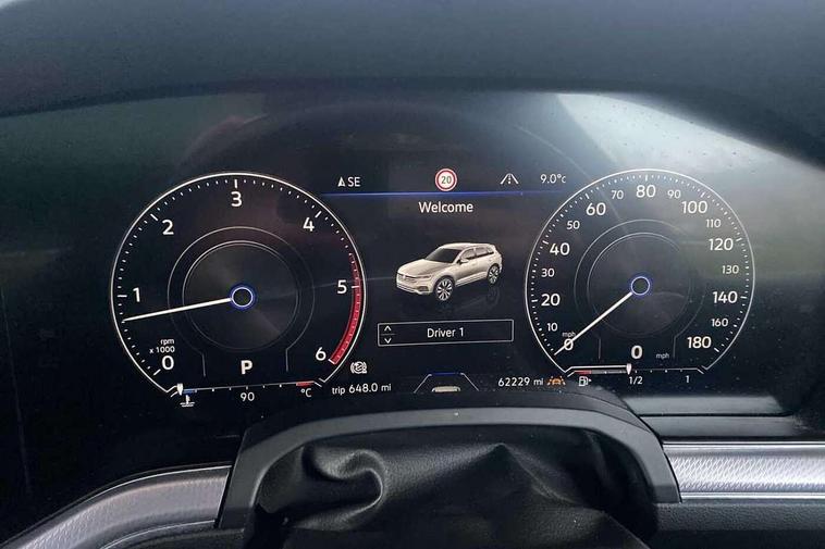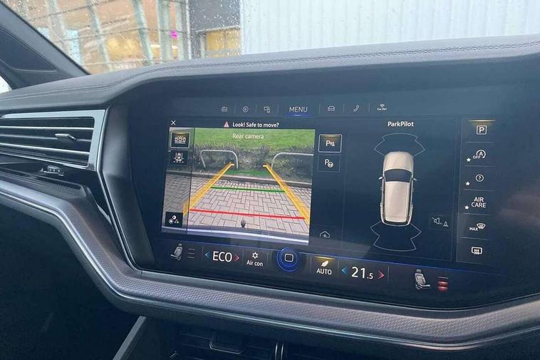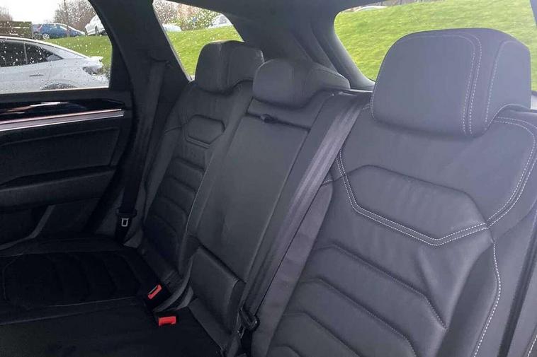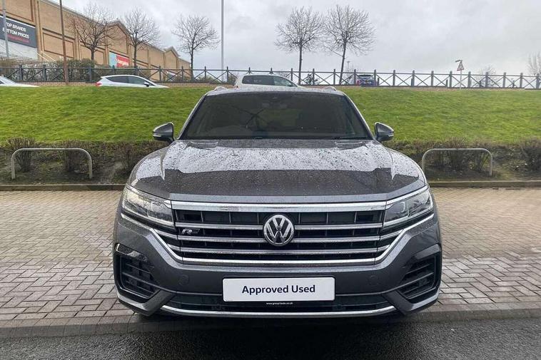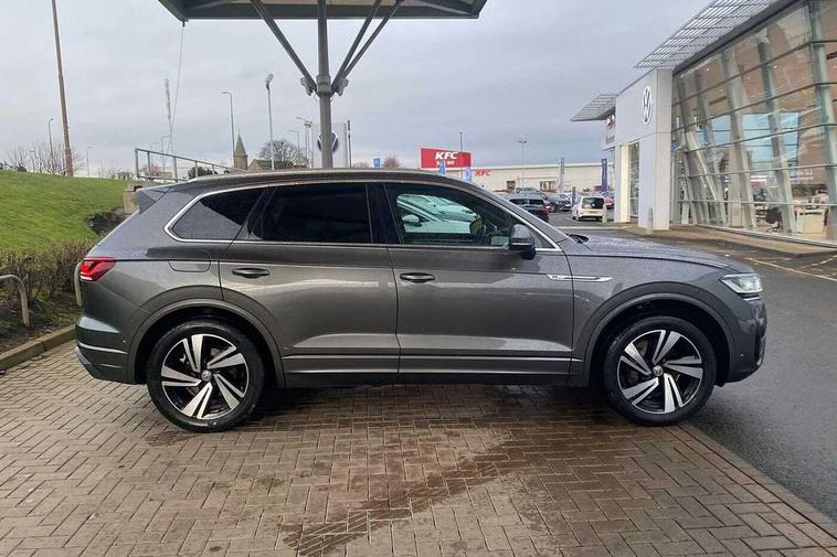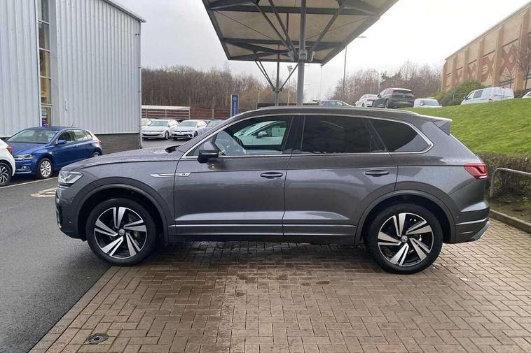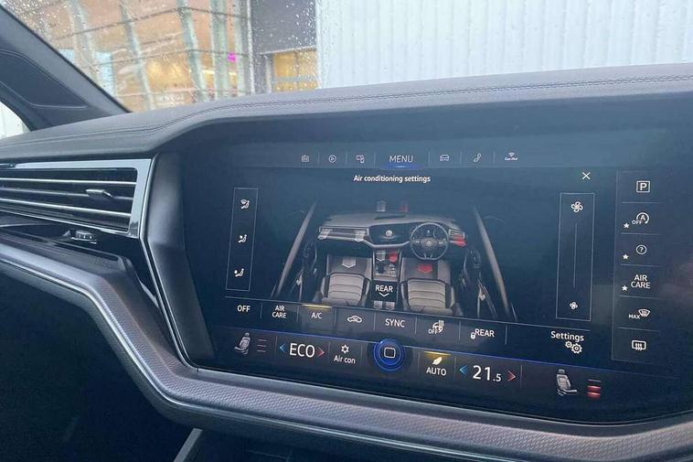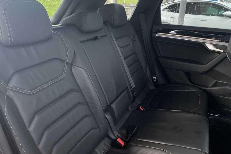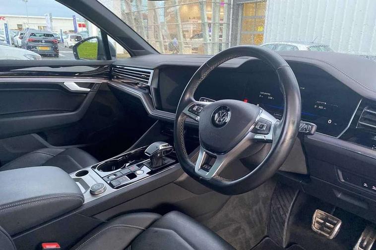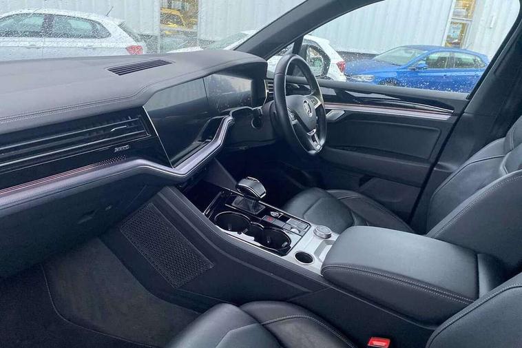 2D/3D map view, ACC - Adaptive cruise control with front assist, forward collision warning, distance monitoring, city emergency brake and speed limiter, Apple car play/Android Auto, Audible and visual fatigue detection system, Bluetooth hands free telephone connection, Car information display, Drive select with Damper control, Driver alert system, Dynamic road sign display camera controlled system with visual warning for traffic and road signs, eCall emergency system, Instrument cluster, MirrorLink, Multifunction camera with lane assist, Multifunction computer premium with 7" colour display, One touch indicators with repeat function, Service interval indicator, Speed sensitive power steering, Start/stop system with regenerative braking, Tailgate power latch, Think blue trainer driver tips and journey analysis, Traffic sign recognition, Voice control system, Wireless Smartphone charger, Torsen limited slip differential, DAB Digital radio, Dynamic navigation based on TMC+, Gesture control for infotainment system, Multi device interface (MDI) with illuminated USB-C connection, Music playback - MP3, WMA and AAC files, SD card slot, Simultaneous pairing of 2 compatible mobile devices, SMS functionality - read, compose and send SMS messages using touch-screen display, Title and cover art display, Volkswagen media control, Adaptive low beam for urban and motorway use, Auto dimming rear view mirror, Automatic coming/leaving home lighting function, Automatic headlights, Body colour door handles, Body colour door mirrors with integral indicators, Body coloured wheel arches, C signature gloss black front air intake, Chrome trimmed radiator grille and air intake, Chrome trimmed side windows, Chromed tailpipe on the left and right integrated in the bumper with trapezoid design, Dusk sensor, Dynamic headlight range control, Electrically power adjustable, heated, folding, auto dimming, front passenger exterior door mirror lowering function, Front and rear electric windows, Galvanised body, Gloss black finish B pillar, Gloss black rear diffuser, Heat insulating darkened glass in side and rear windows, Heated windscreen washer jets, LED rear fog light, LED rear number plate lights, Plastic scuff plates in door apertures, Poor weather light, Puddle lights, Rain sensor, Rear wiper, Silver anodised roof rails, Stainless steel door sill protectors with R-line logo, 12V socket in front and rear centre console and boot, 2 Coat hooks on B pillar, 3 rear head restraints, 3 spoke sport heated leather multi-function sports steering wheel with gear shift paddles - generation 2, 4 way adjustable front head restraints, 4 way electric lumbar support for driver and front passenger, 4 zone climate control, 40:20:40 split folding slide/recline rear seat, B pillar vents, Branded points of interest, Double sun visor for drivier and passenger with LED illuminated vanity mirrors, Electric luggage compartment cover, Folding rear centre armrest with 2 cupholders, Front + rear carpet mats, Front centre armrest with storage box, Front seats with R-line logo on seat backrest, Gear shift indicator, Height/reach adjust steering wheel, Illuminated air conditioned glovebox, Isofix preparation for 2 rear child seats, Jack and tool kit, Leather trimmed gear knob with gloss black inlay/aluminum trim, Leatherette door trim, LED luggage compartment lighting, Load through provision, Luggage compartment with load lashing rings, Plastic loading edge protection, R Line badge, Rear seat remote release levers, Soul black headlining, Stainless steel pedals, Innovision cockpit pack - Touareg, R line styling pack - Touareg, 3 point front seatbelts with pre-tensioners, ABS, Active bonnet, Automatic post collision braking system, Curtain airbags, Driver/Front Passenger airbags, EBD + Brake Assist, EDL, Electronic parking brake with auto hold, ESC with ASR, Front seat side impact airbags, Hill descent control, Hill start assist, Passenger airbag deactivate switch, Seatbelt warning lamp and buzzer, Three 3 point rear seatbelts, Two tone horn, Volkswagen roadside assistance, Warning triangle and first aid kit, Alarm with interior monitoring in cab, backup horn and towing protection, Child security locks for front and rear doors, Electronic engine immobiliser, Remote central locking, High gloss black centre console, Silver wave design aluminium decorative inlays, Tyre repair kit,