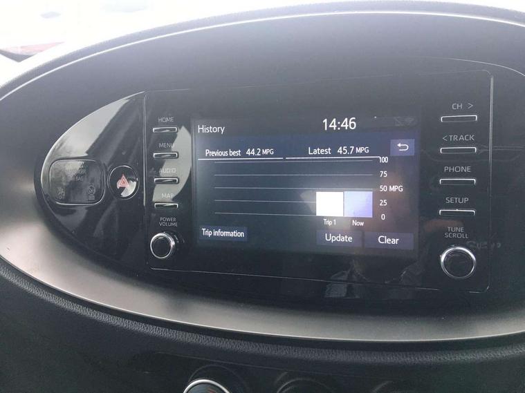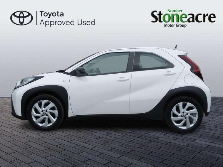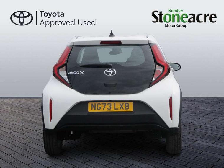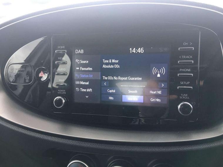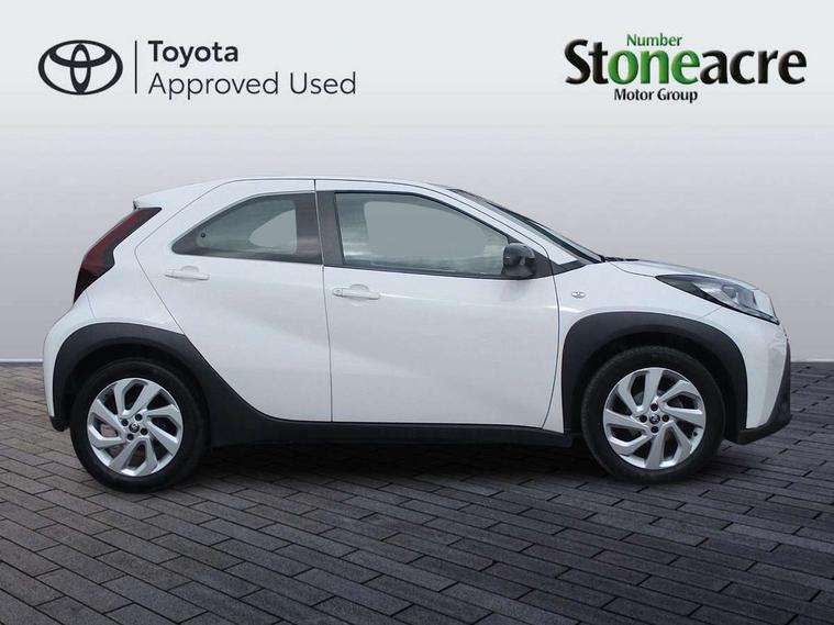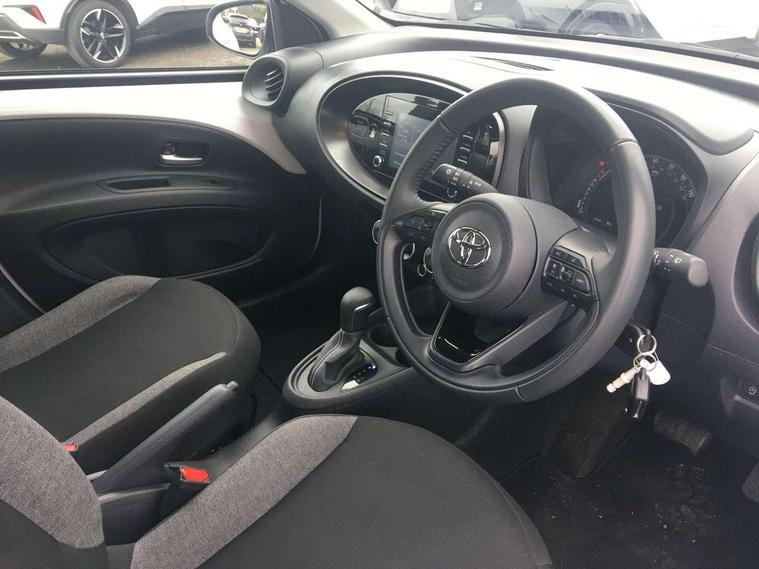 4.2" TFT colour screen, Adjustable speed limiter, Analogue speedometer, Bluetooth connectivity, Digital tachograph, Driver attention alert system, eCall emergency call system, ECO-driving indicator, Electric power steering, Intersection turn assist, Key reminder warning, Noise reduction kit, Pre collision system with emergency steering assist, Reversing camera with static guide lines, Smart phone integration with Apple car play/Android Auto, Speed limit display, Start and stop, Vehicle Stability Control (VSC), 4 speakers, 9" HD multimedia display touch screen with Toyota smart connect, DAB digital audio broadcast, USB connector, Auto headlights, Automatic headlights cut-off, Bicycle towing hook, Black lower front grille, Black rear bumper, Black side protection mouldings, Black upper front grille, Black wheel arch mouldings, Body colour door handles, Body coloured front bumper, Boot door scuff plate, Electric heated door mirrors, Follow me home headlights, Front power windows, Gloss black door mirrors, Headlight cut-off reminder, LED daytime running lights, LED front light guide, LED High mounted stop lamp, Manual day/night rear view mirror, Manual headlight levelling, Pagoda roof, Power adjustable door mirrors, Power back door, Projector halogen headlights, Rain sensor, Rear combination lights LED bulb type, Rear side wing doors, Rear windscreen defogger, Rear windscreen wiper, Short antenna, Variable intermittent windscreen wipers, 12v power outlet - front, 2 seat bench in 2nd row, 3 spoke leather steering wheel, 50/50 split folding rear seat, Adhesive roof headlining, Adjustable speed limiter switch on steering wheel, Audio and telephone switches on steering wheel, Black insert on steering wheel, Boot light, Centre room light, Chrome interior door handles, Chrome surround on air conditioning buttons, Clean air filter, Fabric upholstery, Floor mats, Front and rear cup holders, Front head rest deco art, Front head restraints, Gear shift indicator, Height adjustable driver seat, Intelligent adaptive cruise control switch on steering wheel, ISOFIX child restraint system on rear seats, Lane departure alert switch on steering wheel, Leather gearshift knob, Light grey roof lining, Manual air conditioning, Manual tilt steering wheel, Manually reclining and sliding driver seat, Manually reclining and sliding front passenger seat, Multimedia switches on steering wheel, Pollen filter, Rear door pockets, Rear head restraints, Resin console box storage, Satin silver insert on gear shift knob, Silver stitching on gear shift knob, Single compartment glovebox with lights, Single front passenger seat, Soft tonneau cover, Sun visors with mirror on driver and passenger side, Voice recognition switch on steering wheel, Toyota safety sense pack - Aygo X, Anti lock braking system + Electronic brake force distribution, Child safety door lock, Emergency brake light signal (EBS), Hill start assist control (HAC), Passenger airbag on/off switch, Seat belt reminder for front and rear seats, Supplement restraints system (SRS) - 6 airbags, Traction control, Tyre pressure warning system, Immobiliser, Remote power door locks, Black air vent surround, Black wheel centre caps, Tyre repair kit,
