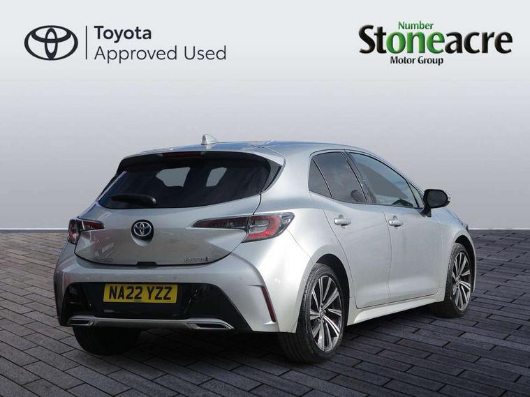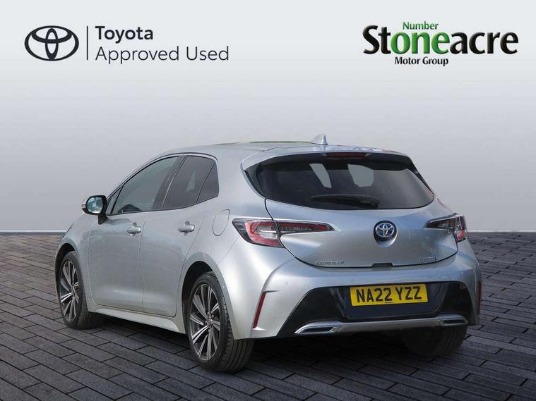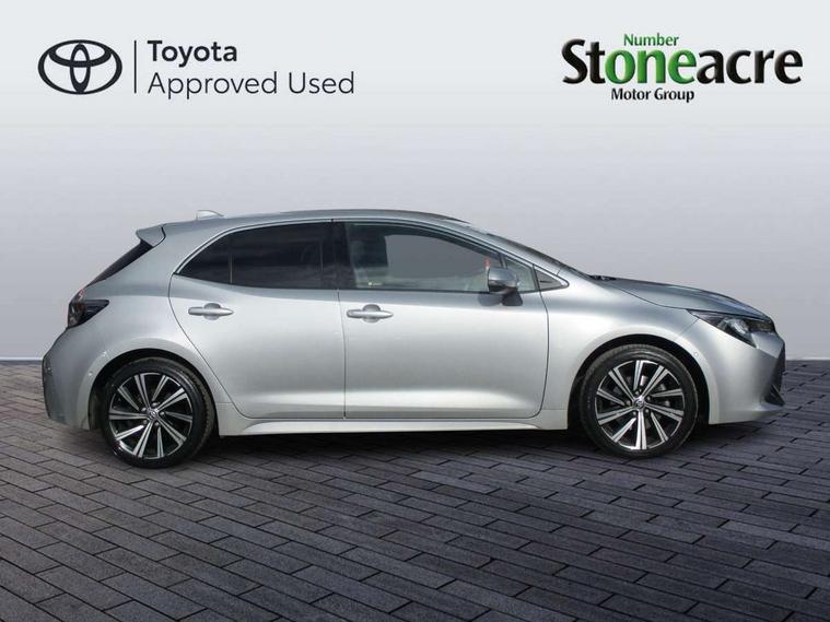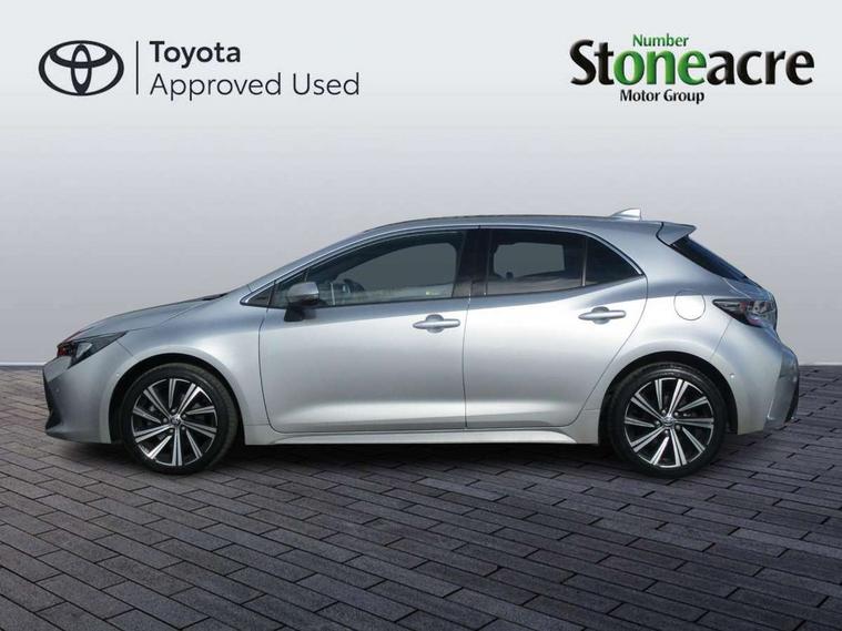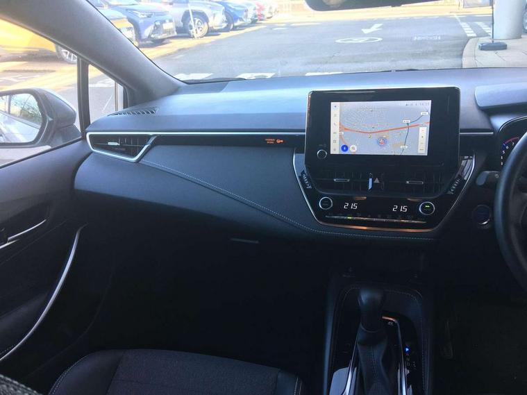 7" Multi information display screen, Bluetooth telephone connectivity, Connected car functionality upgrade, tracker, remote status and e-care, Door trim and centre console material, Dynamic radar cruise control (with RSA) including switch on steering wheel, E-call, Electrically assisted power steering, EV drive indicator, Intelligent park assist, Lane Departure Alert (LDA) switch on steering wheel, Memory on adjustable speed limiter, Push button start, Reversing camera, Smartphone integration with Apple CarPlay and Android auto, Gasoline particulate filter, Vehicle Stability Control (VSC), 6 speakers, 8" Touchscreen with MM19 Multimedia system and voice recognition, AM/FM radio, DAB Digital radio, Toyota touch 2 with go navigation system, USB and Aux in connectors + 12V front outlet, Anti-jam protection on power windows, Auto dimming inside rear view mirror, Auto up and down function on all power windows, Automatic folding mirrors, Automatic headlights with high beam assist, Black metallic surround on lower front grille, Black toyota logo in front, Black window frames, Body colour rear spoiler, Body coloured bumpers, Body coloured door mirrors, Body coloured outside door handles, Follow me home headlights, LED daytime running lights, LED front fog lights, LED Headlights, LED High mounted stop light, LED rear combi lights with LED lightguide, Power adjustable heated door mirrors, Power front windows, Power rear windows, Privacy glass, Rain sensing wipers, Rear bumper with chrome plated inserts, Rear side wing doors, Rear window defogger, Rear window wiper, Reverse tilting door mirrors, Shark fin antenna, Time adjustment on intermittent wiper, Turning signal integrated indicators in door mirrors, Unique lower skirt, Unique side rocker with black insert, UV-filter on driver and passenger windows, 3 rear headrests, 3 seat bench in 2nd row, 3 spoke leather steering wheel + gear knob, 60/40 split folding rear seat, Adjustable speed limiter switch on steering wheel, Audio, multimedia and telephone switches on steering wheel, Blue ambient interior illumination to centre tray, front cup holders and front door trim, Boot light, Centre room light, Clean air filter, Driver and front passenger personal light, Driver and passenger assist grip, Driver and passenger sun visor with mirror and light, Dual zone automatic air conditioning with ECO mode switch, Fabric/synthetic leather upholstery, Front and rear cup and bottle holders, Front door pockets, Front head restraints, Front passenger seat, Heated driver and front passenger seats, Illuminated entry system in room lamp, ISOFIX seat fixing (2 fixings on rear outer seats), Leather gear shift with satin chrome on gear shift console, Leather style armrests, Manual height adjustable for driver and front passenger seat, Paddle shifts, Parcel shelf, Passenger seat back pocket, Pollen filter, Power adjustable lumbar support on driver seat, Power window switches with satin chrome inserts, Rear armrest with 2 cupholders, Rear passenger coat hooks (2), Satin chrome inside door handles, Shopping bag hooks in luggage compartment, Sliding armrest on centre console box, Slow opening glovebox with lights, Tilt/telescopic steering column, Voice recognition switch on steering wheel, Whiplash Injury Lessening (WIL) feature (active headrest) for seats, Parking pack - Corolla, Toyota safety sense 2 pack - Corolla, 3x3 point rear seatbelts, Adjustable driver and front passenger seat belt extender to top anchor point, Anti lock braking system + Electronic brake force distribution, Brake assist function, Child locks on rear doors, Downhill Assist Control (DAC), Electronic parking brake, Emergency brake light signal (EBS), Front passenger airbag on/off switch, Front seatbelt reminder, HAC - Hill start assist control, Rear seat belt reminder, Seatbelt pretensioners and force limiters, Supplemental restraint system (SRS) 7 airbags - dual driver, dual side curtain, side impact and driver knee airbags, Traction control, Tyre pressure warning system, Acoustic vehicle alert system (AVAS), Alarm with motion sensor and immobilizer, Remote central locking + deadlocks, Smart entry, Satin chrome dash trim, Soft touch texture on upper dashboard, Space saver spare wheel, Unique wheel finish with red wheel cap,