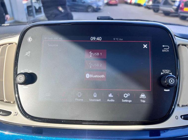 Apple car play/Android Auto, Cruise control, E-call, External temperature gauge, Power assist steering, Rear parking sensor, Speed limiter, Stop/start system, Trip computer, 4 speakers, 7" HD Touchscreen Radio, Bluetooth, USB and DAB, Rear speakers, 3rd brake light, Auto headlights, Body colour bumpers, Body coloured electrically adjustable door mirrors, Chrome plated exterior door handles, Dolcevita badge on fender, Dusk and rain sensors, Electric front windows, Fixed glass sunroof with sunblind, Front fog lights, Halogen headlamps, Heat insulated glass, Heated rear windows with wash wipe, LED daytime running lights, Rear side wing doors, Rear wiper, 1 passenger grab handle, 2 seat bench in second row, 50/50 split folding rear seats with height adjustable rear headrests, Air conditioning, Auxilliary 12V power socket, Chrome kit, Front headrests, Height adjustable drivers seat, Height adjustable steering wheel, Isofix child seat preparation, Single front passenger seat, Techno leather steering wheel with audio controls, 7 airbags - Driver, passenger, side, window and drivers knee airbags, ABS/EBD, ESC + ASR/MSR + HBA + Hill holder, Manual passenger airbag deactivation function, Traction control, Tyre pressure monitoring system, Automatic door locking, Immobiliser, Locking fuel filler cap, Remote central locking, 15" Alloy wheels,