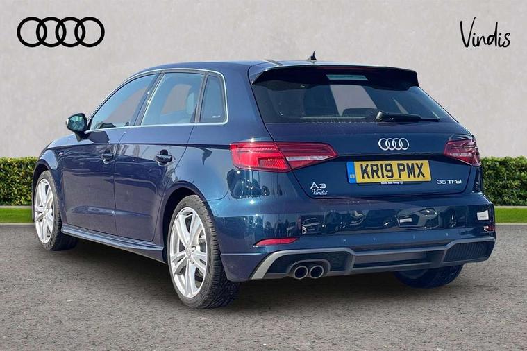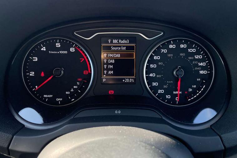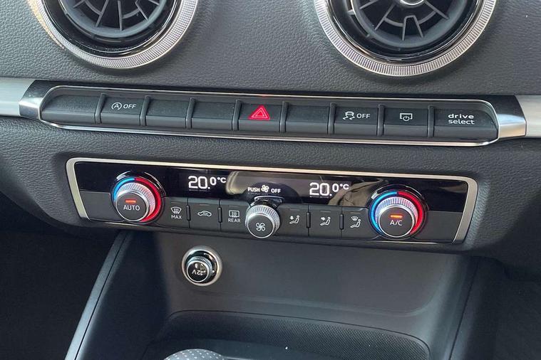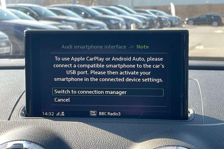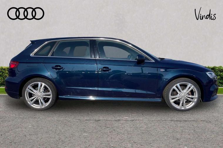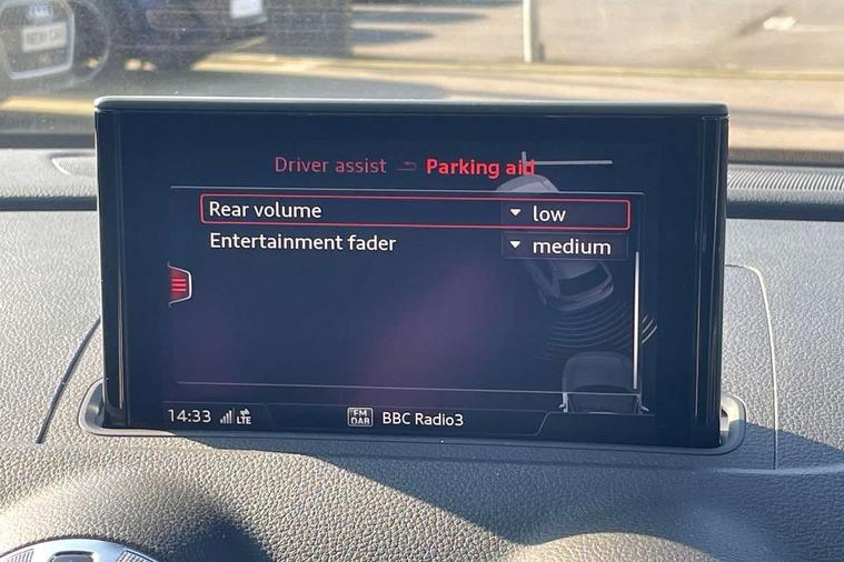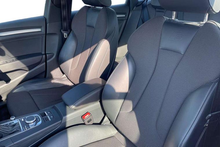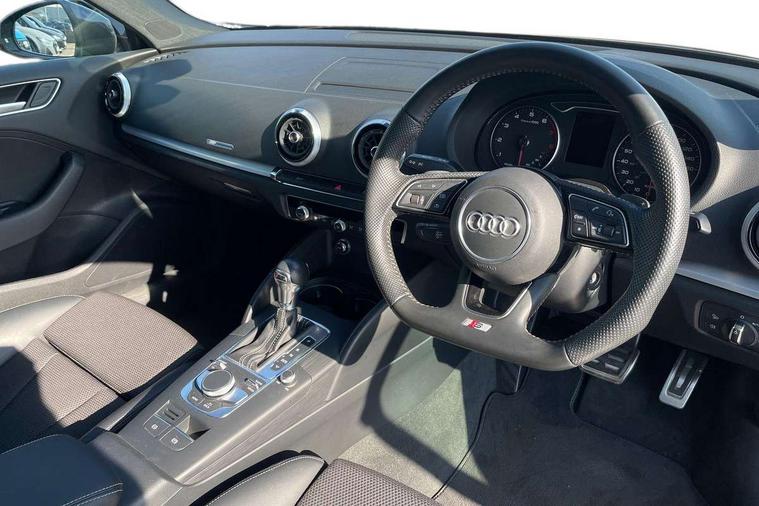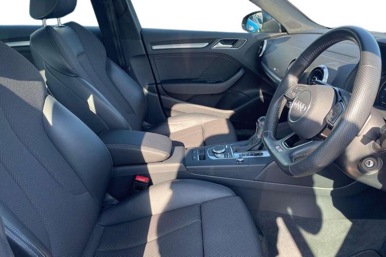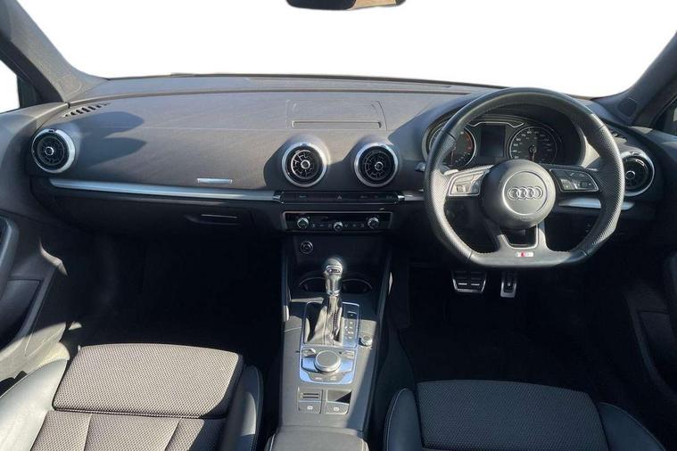Audi connect, Audi drive select, Audi smartphone interface, Automatic start/stop system, Colour driver's information system display, Electro - mechanical power assisted steering, Mobile telephone preparation - bluetooth interface, SD card based satellite navigation system, Service interval indicator, Speed limit display, Voice control system, Voice recognition for navigation system, 2 USB interfaces and Aux-In jack, Audi music interface, CD player, DAB Digital radio, MMI radio plus with 7" colour MMI screen and MMI controller, Aluminium window trim, Auto dimming rear view mirror with light and rain sensors, Body colour door mirrors, Chrome exhaust tailpipes, Electric front windows, Electric rear windows, Electrically adjustable and heated door mirrors with integrated LED side indicators, Heated windscreen washer jets, LED daytime running lights, Matt black radiator grille, Rear wiper, S line badges on front wings, S Line body styling with front & rear bumpers and side skirts, radiator grille and rear diffuser insert, roof spoiler, Sport specific side air inlet grille and diffuser insert, 3 adjustable rear headrests, 4 lashing points to secure luggage, Adjustable front centre armrest, Black cloth headlining, Dual zone electronic climate control, Front and rear interior lights with delay, Front/rear floor mats, Glovebox light, Height and reach adjustable steering wheel, Illuminated door sill trims with S logo, Isofix child seat preparation for front passenger/outer rear seats inc passenger airbag deactivation, Stainless steel pedals, Storage compartments in doors side trims, centre console and under front drivers seat, LED interior light pack - A3/RS3, Non smoking pack - A3, Storage and luggage pack - A3/RS3, 3 point seatbelts on all seats, ABS/EBD, Active bonnet, Active front headrests, Airbags - front driver/passenger, front & rear side, curtain, drivers knee, ASR, EDL, Electromechanical parking brake, ESC - Electronic Stability Control + traction control, Front passenger airbag deactivation, Hill hold assist, Manual rear child locks, Multi-Collision braking, Seatbelt warning, Tyre pressure warning, Warning triangle and first aid kit, Anti theft alarm, Anti-theft wheel bolts, Remote control central locking, Thatcham category 1 alarm + immobiliser, Aluminium air vent surrounds, Aluminium trim elements, Matt brushed aluminium inlays, Tool kit, Tyre repair kit,