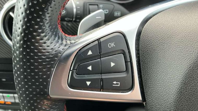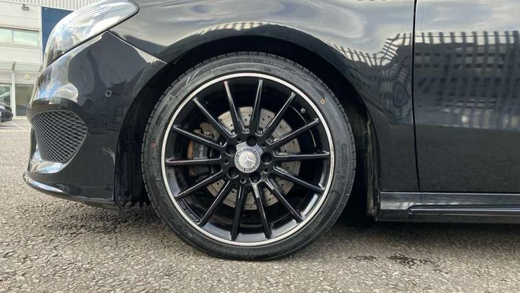8" colour display screen, Attention assist, Collision prevention assist, Direct steering, Drive mode selector, External temperature gauge, Instrument cluster with 4.5-inch TFT colour display, Low fluid warning light, Mercedes-Benz emergency call, Multi function trip computer, Park assist pilot with front and rear park assist, Reversing camera, Service indicator (ASSYST PLUS), Smartphone integration with Apple CarPlay, Diesel particulate filter, Lowered suspension, Bluetooth audio streaming, USB port, Adaptive brake lights, Aluminium front door sills, AMG body styling, Auto dimming interior and driver's door mirror, Automatic headlamp activation, Body colour bumpers, Body colour door handles, Door sill plates with "Mercedes-Benz" lettering, Electric folding door mirrors, Electric front/rear windows/one touch operation, Electric heated + adjustable door mirrors, Heated rear window with timer, Heated windscreen wash system, High beam assist, LED daytime running lights, LED Headlights, LED rear lights, Rain sensor windscreen wipers, Rear wiper, Twin exhaust tailpipes with chrome finishers, 1/3 to 2/3 split folding rear seats, 12 colour Ambient lighting, 12V socket in rear centre console, 2 Position luggage floor, 3 spoke flat bottomed sports leather multi function steering wheel with red contrast stitching, AMG brushed stainless steel sports pedals with rubber studs, Auto Mercedes-Benz child seat recognition sensor, Black roof liner, Centre console with cupholders, Door centre panels in dinamica, Driver and passenger underseat storage box, Driver/front passenger seat height adjustment, Driver/passenger sunvisors and illuminated vanity mirrors, Dual zone automatic climate control, Footwell lights, Front headrests, Heated front seats, Height adjustable headrests, Height/reach adjustable steering column, Isofix rear child seat fastenings, Leather trimmed gearshift with chrome inserts, Load compartment cover, Luggage compartment lighting, Reading lights, Rear armrest with 2 cupholders and load through provision, Rear headrests, Red stitching on steering wheel, Seat cushion angle adjustment, Sliding front centre armrest with storage compartment, Sliding rear seats, Storage compartment in centre console, Storage compartment in front doors, 5 x 3 point seatbelts, ABS with Brake Assist, Brake calipers with Mercedes-Benz lettering + perforated brake discs, Child proof door locks, Crash responsive emergency lighting, Drivers knee airbag, Dual stage driver/passenger airbags, Electronic parking brake, ESP with ASR, Front and rear seatbelt reminder, Front passenger airbag deactivation, Front seat side impact airbags, Hill start assist, Seat occupancy sensor, Tyre pressure monitoring system, Warning triangle and first aid kit, Window airbags, Alarm system/interior protection/immobiliser, Locking wheel bolts, Remote central locking, Air vents in Silver-chrome, Carbon fibre dash trim, Tirefit sealant with electric air pump,