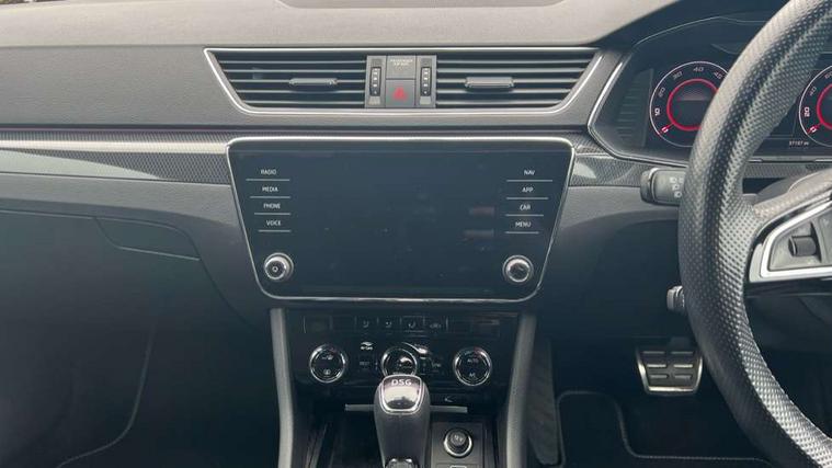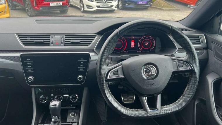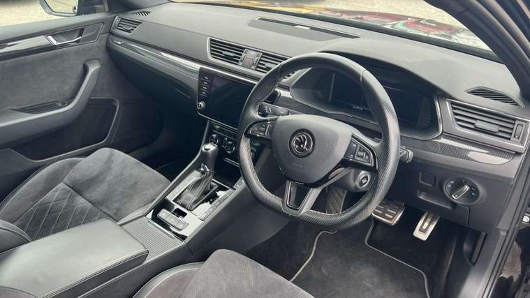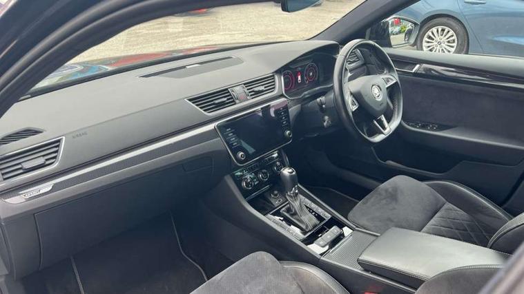 Adaptive cruise control, Bluetooth system, CareConnect and Emergency Call, Drive mode selection including HMI sport, Driver fatigue sensor, Electromechanical power steering, External temperature gauge, Front assist including automatic braking function, Multifunction colour trip computer, Remote fuel cap release, Service interval indicator, Speed warning indicator, Stop/start engine system and energy recovery, Voice control system, Diesel particulate filter, XDS+, In-car voice enhancement, Aero wiper + intermittent function, Auto dimming rear view mirror, Bi-Xenon headlights with AFS + integrated headlight washers + LED daytime running lights, Black gloss door mirror housings, Body colour bumpers, Body colour door handles, Cornering front fog lights, Electrically adjustable/heated/folding door mirrors with puddle lights/Integrated indicators and memory function, Front and rear electric windows, Fuel filler cap, Gloss black exterior door mirrors with sports styling including front grill, side strip and window surrounds, Gloss black roof rails, LED brake lights, Privacy glass, Rain sensor, Rear exhaust diffuser styling elements, Rear wiper, Sportline badging, 12v power point in centre console, 12V power point in luggage area, 3 rear height adjustable headrests, Alcantara/leather upholstery sports seats, Auxiliary heater, Black door trim, Black roof headlining, Electrically adjustable driver's seat with memory and lumbar support, Front armrest with storage box, Front passenger seat electric height adjust, Height adjustable front and rear head restraints, Height/reach adjust steering wheel, Illuminated air conditioned glovebox, Illuminated luggage compartment, Interior lights with control switches, Isofix child seat fittings on outer rear seats, Leather gearknob and handbrake lever, Overhead glasses storage compartment, Rear centre armrest with cupholders, Removable LED light in boot, Split folding rear seats, Textile floor mat set, Ticket holder, Umbrella compartments in front doors with umbrellas, LED interior light pack - Superb, LED package plus - Superb, LED rear pack - superb, 3 point height adj front seatbelts + pretensioners, 3 rear 3 point seatbelts + pretensioners, 7 airbags - Front, front side, curtain, driver's knee airbag with front passenger deactivation switch, Door open warning, Driver and passenger seatbelts with warning light, Electronic parking brake, ESC including ABS, EBV, MSR, ASR, EDS, HBA, DSR, RBS, CBC, multi-collision brake (MKB) and Auto hold, Hill start assist, Rear door child safety locks, Tyre pressure monitor, Alarm with interior monitoring tilt sensor and back up horn, Electronic engine immobiliser, Keyless entry and start/stop, Remote central locking with SAFE system, Carbon interior trim, 19" Vega alloy wheels with anti theft wheel bolts,