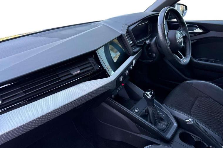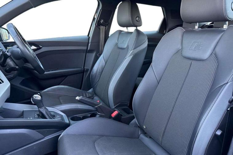 Aluminium trim for control switches, air vents and digital instrument cluster, Silver grey inlays polygon structure in diamond paint finish, Structured grey accent areas including air vents, door handle recesses and centre console in quartz paint finish, LED interior lighting pack - A1, Luggage compartment pack - A1, S line exterior styling pack - A1 Sportback, Anti theft alarm, Anti theft wheel bolts and loose wheel warning, Audi pre-sense front with pedestrain and cyclist recognition, Immobiliser, Remote central locking with 2 foldaway keys, 1 x SDXC card reader, 2 x USB type C connection points, DAB Digital radio, MMI radio plus with 8.8" colour MMI display screen and MMI touch, 3x3 point rear seatbelts, Brake assist function, Driver and front passenger airbag with front side and head airbags, Electronic Stability Control including ABS, EBD, ASR and EDL, Front passenger airbag deactivation switch, Hill hold assist, Seatbelt height adjustment for front seats, Seatbelt monitoring, Tyre pressure warning light, Warning triangle and first aid kit, Auto dimming rear view mirror, Body coloured door mirrors, Door sills with aluminium inlays and S Line logo, Electric front and rear windows, Electrically adjustable, heated, folding door mirrors with integrated LED side indicator, Front side air inlets in grained matt black and C frame in titanium black, Heat insulating glass windscreen and side windows, Heated rear windscreen, LED headlights with LED rear lights + dynamic rear indicators + headlight adjustment and high beam, turning light + LED daytime running lights, Radiator grille and rear diffuser in matt titanium black, Radiator protective grille frame in matt aluminium silver, Rain and light sensors, Rear fog lights, Rear wiper, S line badges on front wings, Side front spoiler lips in grained matt black, 12V socket in centre console with two cup holders, 3 rear seats with headrests, 40:60 Split folding rear seat or folded fully, Black cloth headlining, Driver and passenger seat with manual height adjust with forward and backwards adjustment, Front and rear black floor mats with contrast stitching in fine silver, Front head restraints, Height and reach adjustable steering wheel, ISOFIX child seat mounting for front passenger and outer rear seats including top tether attachment point of outer rear seats, Leather gear knob with aluminium trim, Luggage compartment light with front and rear reading lights, Manually adjustable lumbar support in front seats, Stainless steel pedals, 10.25" Digital instrument cluster display classis style instrument dials + speed, odometer, time, outside temperature, telephone menu + fuel level warning, Audi connect safety emergency and service including E-call, Audi drive select - power steering assistance + engine + gear shift 3 preset modes (auto, dynamic, efficiency and an Individual mode), Audi smartphone interface with connect compatible smartphone via USB directly MMI display + Nav, music, third party apps controlled via MMI controller, Automatic start/stop system, Bluetooth interface, Cruise control, Driver's information system, Electromechanical power steering, Lane departure warning system, Service interval indicator, Speed limiter, Voice control system, Washer fluid level indicator, Sports suspension,