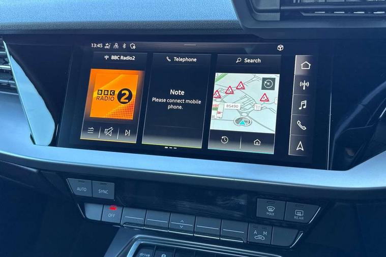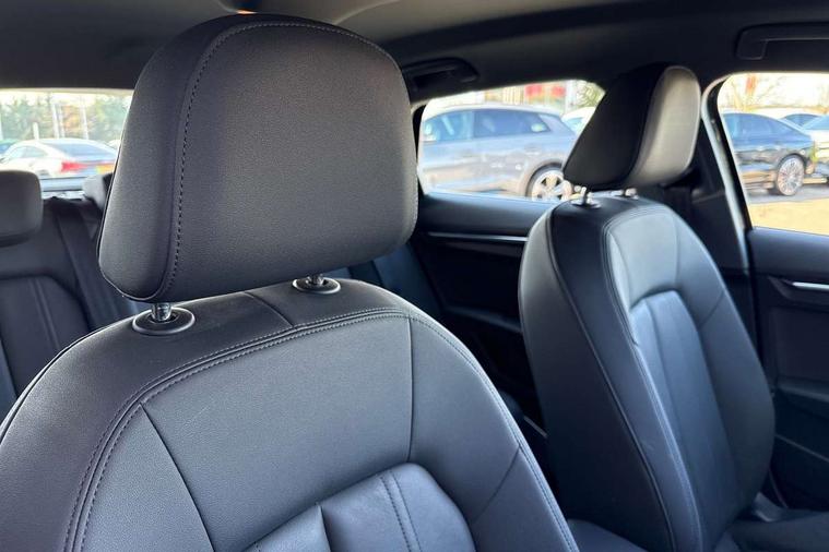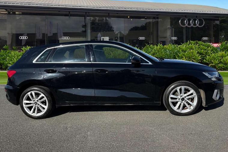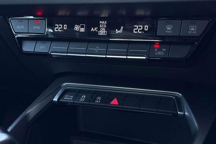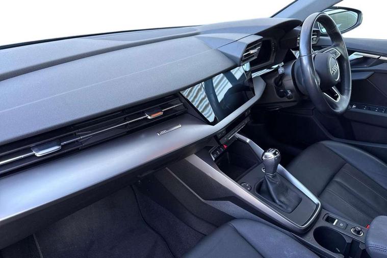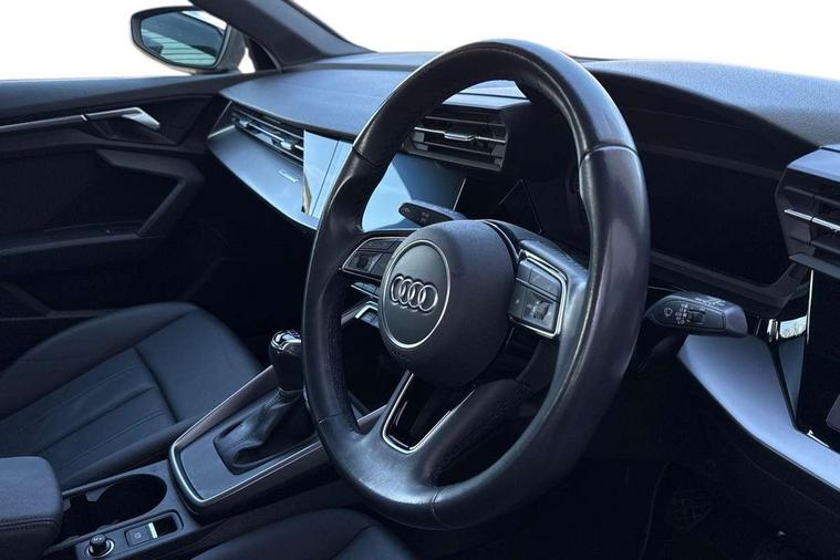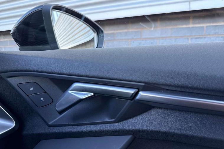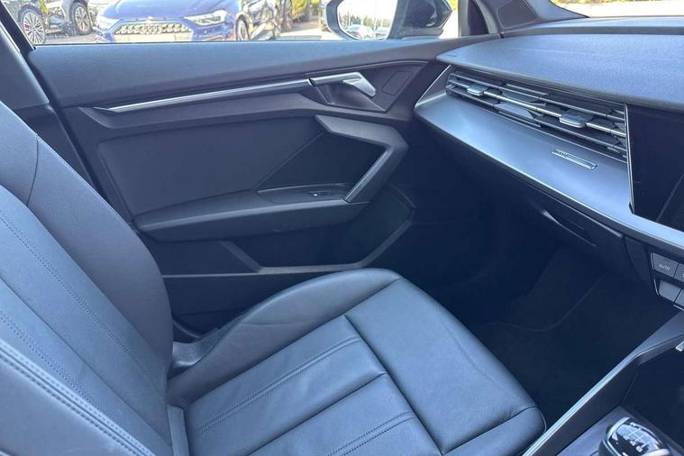 Audi drive select (Auto, Comfort, Dynamic and Individual), Audi smartphone interface, Audi Virtual Cockpit - 10.25" digital and colour instrument cluster, Automatic start/stop system with recuperation, Bluetooth interface, Camera based traffic sign recognition, Collision avoidance assistant, Cruise control, e-Call (emergency call), Electromechanical power speed sensitive steering, Lane departure warning system, MMI Navigation Plus with high resolution 10.1" colour touch screen display, Rear parking sensors, Service indicator, Trip computer, Voice control system with natural language interaction, Standard suspension, 2xUSB-C connection with data and charging functions, 6 passive loudspeakers, DAB Digital radio, 3rd brake light, Acoustic glass windscreen, Aluminium window trim, Auto dimming frameless rear view mirror, Body colour exterior mirrors, Body colour roof spoiler, Electrically adjustable/heated/folding/auto dimming door mirrors with integrated LED indications + kerb view function for passenger side, Front electric windows, LED daytime running lights, LED headlights and halogen rear lights, Light and rain sensors, Rear electric windows, Rear side wing doors, Rear window, rear door windows and rear side windows in clear glass, Rear wiper, 12V socket and storage compartment in front centre console, 3 seat bench in 2nd row, 3 spoke leather multifunction steering wheel, 4 way electrically adjustable lumbar support for driver and front passenger, 60/40 split folding rear seat bench, Dual zone electronic climate control, Front and rear headrests, Front centre armrest, Front door sill trims with aluminium inlay, Front/rear floor mats, Height and reach adjustable steering wheel, Interior lighting - Front and rear roof module including reading lights, glove compartment light and right hand side, Interior lighting - glove compartment light and right hand side, Luggage compartment floor covering, Manual boot compartment lid, Manually adjustable front seats, Routine cloth upholstery with front sports seats, Seat side bolsters, Single front passenger seat, Steel grey cloth headlining, Aluminium interior elements pack - A3 Sportback, LED interior lighting pack - A3 Sportback, Sport styling pack - A3 Sportback, 3x3 point rear seat belts, Driver and front passenger airbag with passenger airbag deactivation, Electronic Stabilisation Control (ESC) including ABS, ASR and EDL, First aid kit with warning triangle and 2 safety vests, Front side airbags with head airbags and interaction airbag, Pre-sense front with pedestrian and cyclist detection, Seatbelt monitoring, Tyre pressure loss indicator, Anti theft alarm, Anti-theft wheel bolts, Electronically operated child lock, Immobiliser, Remote control central locking, Inlays with silk effect paint in platinum grey,