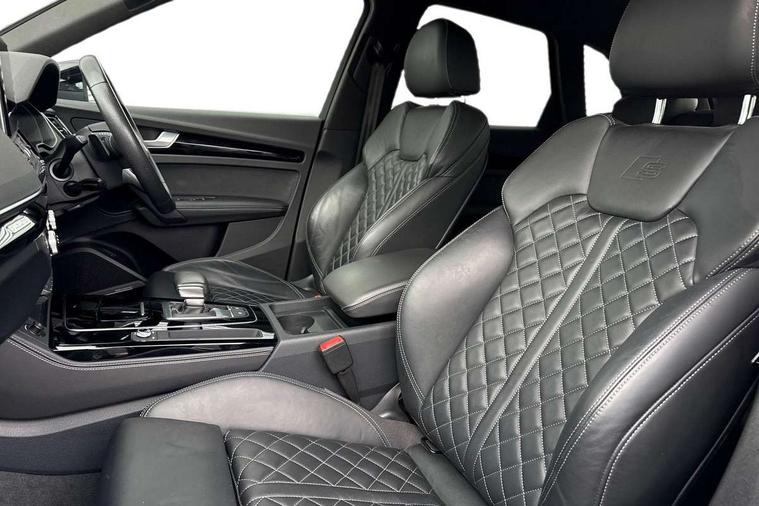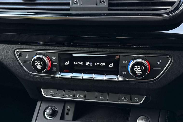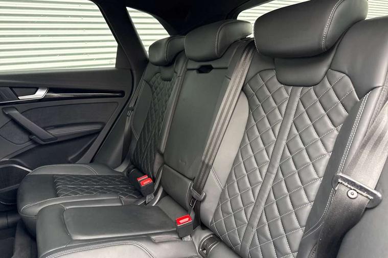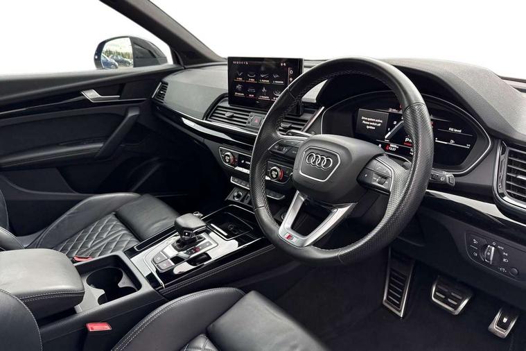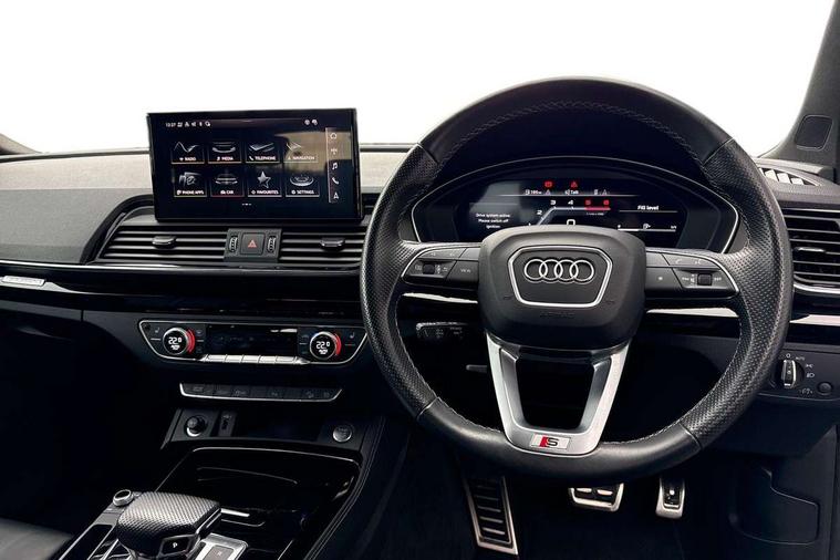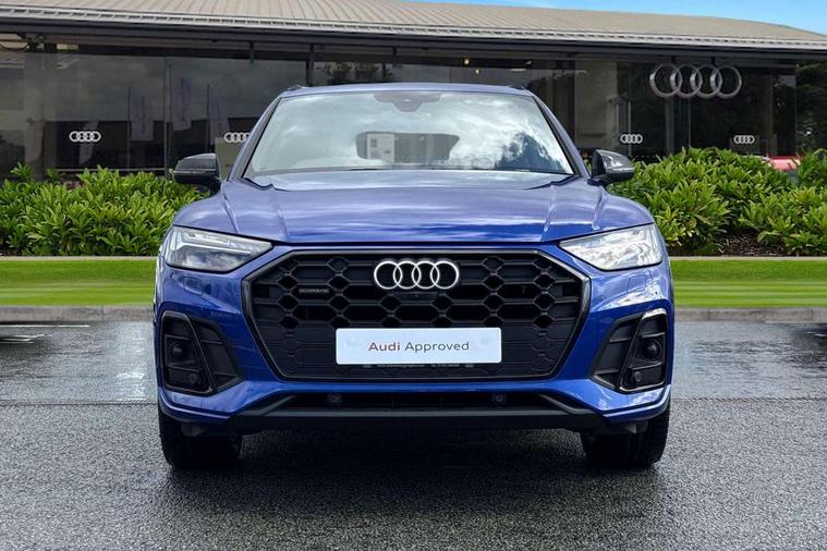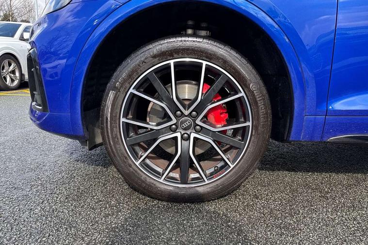 Audi connect safety and service (e-call), Audi connect with Amazon Alexa Integration, Audi drive select, Audi virtual cockpit plus with 12.3" screen and three different layout designs, Audi wireless smartphone interface, Automatic start-stop system with coasting functionality and efficiency programme, Bluetooth interface, Electro - mechanical power assisted steering, MMI navigation plus with 10.1" touch screen, Power tailgate, Reversing camera, Service interval indicator, Voice control system with Audi hotword activation "Hey Audi", Diesel particulate filter, Quattro on demand, S line sports suspension, 2 x USB charging port with aux input socket, DAB Digital radio, Acoustic windscreen, Audi matrix LED headlights with dynamic front and rear indicators, Audi rings at front and rear in black, Audi rings decal on rear doors, Auto dimming door mirrors, Auto dimming rear view mirror, Automatic headlights and windscreen wipers, Black door mirrors, Black roof rails, Body colour bumpers, Body colour underbody protection, Chrome plated exhaust trims, Daytime running lights, Door sills in Selenite silver, Electric adjustable/heated/folding door mirrors, Front air inlet surrounds in titanium black, Front and rear electric windows, Headlight washers, High gloss black B pillar trims and triangular rear door trim, High level LED brake light, Rear chrome trim strip below lights, Rear privacy glass and rear side windows, Rear side wing doors, Rear wiper, Roof bars, S Line rear spoiler, 3 rear headrests, 4 way electric lumbar support for driver and front passenger, 40:20:40 split folding 3 rear bench seat in 2nd row with rear centre armrest, Black cloth headlining, Comfort front centre armrest, Contrast stitching on seats, steering wheel and gear lever gaiter, Deluxe 3 zone electronic climate control, Electrically adjustable front seats, Fine Nappa leather upholstery with diamond pattern contrast stitching + front sport seats with S embossed logo, Front/rear floor mats, Gear lever in black leather, Heated front seats, Height adjustable front head restraints, Height/reach adjustable steering column, Illuminated door sill trims with S logo, ISOFIX child seat mounting and top tether, Rear seat bench plus, Removable luggage compartment floor, Single front passenger seat, Stainless steel pedals, Sunvisors with vanity mirrors, Black styling package - Q5 Edition 1, Extended interior upholstery pack - Q5, Extended LED Interior multi coloured Lighting Pack - Q5, 3 point seatbelts on all seats, 6 airbags - Driver, front passenger, curtain and side airbags, Electrically operated child locks on rear doors, Electromechanical parking brake, Electronic stabilisation control including ABS, ASR and EDL, Front and rear brake calipers painted in red, Front passenger airbag deactivation, Hill descent control, Hill hold assist, Multi collision brake assist, Pop-up bonnet for pedestrian protection, Pre sense city, Seat belt force limiter, Seatbelt monitoring, Tyre pressure warning, Warning triangle and first aid kit, Anti theft alarm, Anti-theft wheel bolts, Keyless Go access/ignition system, Remote central locking, Piano black finish inlay,