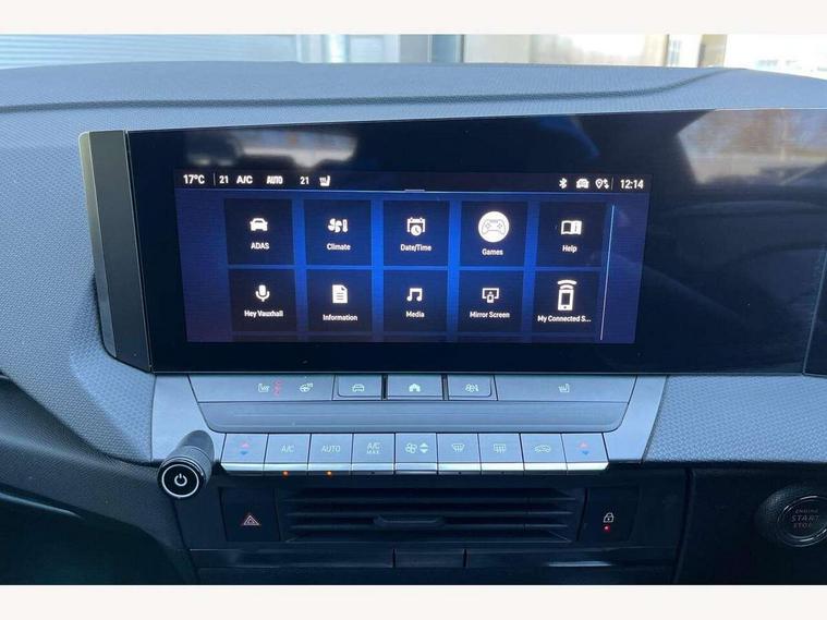 Adaptive cruise control with intelligent speed adaption, Bluetooth connectivity, Breakdown call (b-call), Digital central facia with audio information, digital clock with automatic RDS time adjustment and Outside air temperature with ice warning function, Digital instrumentation - Speedometer, rev counter, low fuel gauge warning light + water temperature gauge warning light, shift up/down indicate light, Drive Smart, Driver information display - Total mileage, service due indicator, oil life, eCall emergency system, Extended traffic sign recognition, Front and rear parking distance sensors, Front camera system, Handsfree calls via steering wheel controls, In-crash braking, Intelli vision 360 degree panoramic parking camera, Lane departure warning with lane keep assist, Lights on audible warning, Multifunction trip computer - Trip mileage, vehicle range, average speed and fueleconomy, instantaneous fuel economy and driving time, Natural voice recognition with satellite navigation commands, phone connectivity functions, choice of music playback and operation of electronic clima, Over the air updates and WiFi updates, PAS, Phone book access, Pure Panel pro 10" Digital instrument cluster and 10" Infotainment colour touchscreen with full glass execution, RDS with traffic programme, Satellite navigation system with natural voice recognition, Service interval indicator, Shift paddles, Speed sign recognition, Start/stop system, Tailgate, Vauxhall connect, Vehicle microphone, Vehicle status and information, 6 speakers, AM/FM stereo radio with 36 station presets, Bluetooth A2DP audio streaming, DAB Digital radio, Front USB connection, Smartphone interface with Apple CarPlay, Android Auto and Wireless smartphone projection, Steering wheel audio, phone and cruise controls, USB connection with iPod control, Active bonnet/headlight/wiper structure, Adaptive brake lights, Automatic lighting control, Black door mirrors, Black Griffin logo and vizor frame, Black lower window frame moulding, Body colour sports style bumpers with high gloss black lower front grille decor blade and rear valance panel, Body coloured door handles, Dark tinted rear windows, Door to door illumination, Electric adjustable/heated/folding door mirrors + puddle lights, Electrically operated front and rear windows with safety auto reverse and one touch up/down facility, Frameless anti dazzle rear-view mirror, Heated rear window, High beam assist, Intermittent rear window wash/wipe, LED daytime running lights, LED front fog lights, LED Headlights, LED side repeat indicators, LED tail lights, Manual headlight levelling, Rear side wing doors, Shark fin aerial, Soundproof insulated windscreen, Third brake light, Two speed rain-sensitive windscreen wipers with variable intermittent wipe, Windscreen and side window demist vents, 12V electrical accessory socket in front, 3 seat bench in 2nd row, 40/20/40 split-folding rear seat backs, Alloy effect sports pedals, Ambient light (customisable with 8 colours), Black headliner, Chrome effect interior door handles, Driver's and front passenger's sunvisors, Drivers ergonomic active sports-style seat (AGR approved), Dual zone electronic climate control, Easy accessible storage boxes in the boot floor accommodate tyre inflation kit and first aid kit, Eight way adjustable height, reach, tilt, backrest, seat cushion extension, head restraint in drivers seat, Fade up/down front and rear courtesy light, Flex load floor with 2x luggage restraining nets, Folding storage box on driver side lower facia, Four adjustable facia vents, Four lashing eyes in load compartment, Four way adjustable height, reach, backrest, head restraint in front passengers seat, Four way electrical lumbar adjustment, Front and rear seatbelts, Front centre armrest with cupholder, Front door pockets, Front head restraints, Fully carpeted load area, Glovebox with lid, Greta fabric upholstery with side bolsters and surrounds, Heated front seats, Heated steering wheel, Illuminated load area, Illuminated vanity mirrors, Intelli Space load floor adjustable in two heights for flat load area, Interior tailgate handle, Isofix child seat mounting points on outer rear seats, Luggage compartment retractable cover, Pollen filter, Reach and rake adjustable steering column, Rear centre headrest, Rear door pockets, Rear head restraints, Rear reading lights, Rear seat backs with remote easy-fold facility, Rear seat load through facility with armrest and cup holders, Side storage with nets, Single front passenger seat, Spare wheel storage area, Storage compartment in centre console, Three spoke flat bottom design perforated leather covered steering wheel with accent stitching and satin chrome effect accents, Twin gas assisted tailgate struts, Two drinks holder in centre console, 3x3 point rear seat belts, 8 Airbags - Drivers and front passengers airbags, Front seat side-impact airbags and Full-size curtain airbags, Anti-lock braking system (ABS), Automatic emergency braking with pedestrian detection, Child locks on rear doors, Cornering brake control, Deactivation switch for front passengers front and side impact airbags, Drag torque control, Driver drowsiness alert system, Electronic brake force distribution, Electronic parking brake, Emergency brake assist, ESC - Electronic Stability Control + traction control, Fading brake support, Forward collision alert at all speed, Front and outer rear seatbelt force limiters, Hill start assist, Outer rear seatbelt pretensioners, Rollover mitigation, Seatbelt unfastened audible warning and warning light, Straight line stability control, Tyre pressure monitoring system, Upper and lower bumper design to reduce upper and lower leg injuries, Deadlocking system, Key left in ignition audible warning, Keyless entry and start, Locking wheel nuts, Remote control central locking, Remote control ultrasonic security alarm system, Black facia with isabella trim inserts, Instrument panel bar in Liquid palladium, Mistral bl