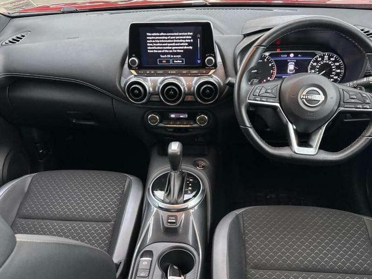 7" full colour TFT screen combimeter, Apple CarPlay and Google Android auto, Drive modes select (Eco, normal and sport), Emergency and breakdown call, Front parking sensor, Idle start/stop system, Intelligent lane intervention, Lane departure warning system, Nissan connect 8" touch screen entertainment system, Nissan connect nav with TomTom traffic, Nissan connect services and Wifi connection, Outside temperature sensor, Power Steering, Rear parking sensor, Traffic sign recognition, Trip computer, Voice recognition, Gasoline particulate filter, 6 speakers, Bluetooth system, USB, Aux-in and 12V socket, DAB Digital radio, Rear console USB port, Auto dimming interior rear view mirror, Auto headlights, Automatic hazard signal with emergency stop signal, Body colour bumpers, Body colour door handles, Electrically adjustable door mirrors with integrated indicators, Follow me home headlights, Front and rear electric window with one touch driver window, Heated and auto folding door mirrors, High beam assist, LED daytime running lights, LED headlamps, LED rear fog lamp, LED rear lamps, Rain sensor windscreen wipers, Rear privacy glass, Rear side wing doors, Rear wiper, Three blink turn signal, 3 height adjustable rear headrests, 3 seat bench in 2nd row, 60/40 split folding rear seat, Automatic climate control, Card holder on driver sunvisor, Cloth upholstery with black and metallic grey syntech leather inserts, Driver and passenger sliding and reclining seats, Driver side rear coat hanger, Driver/passenger sunvisors and vanity mirrors, Front and rear cabin lights, Front armrest, Front door pockets with bottle holders, Front head restraints, Front/rear passenger grab handles, Grey synthetic leather kneepad, Height adjustable driver's seat, Internal chrome door handles, Leather gearshift knob, Leather steering wheel, Luggage board, Luggage space lighting, Monoform sporty seats, Multifunction steering wheel, Rear door bottle holders, Single front passenger seat, Steering wheel mounted gearshift paddles, Telescopic steering wheel adjustment, Two cupholders in front centre console, Two rear isofix child seat anchorage points with top tether, Welcome light and console tray ambient lighting, ABS with EBD and brake assist, Active ride control, Active Trace Control, Driver and passenger airbags, Driver and passenger side airbags, Electric handbrake with auto hold function, Electronic Stability Programme (ESP), Front and rear curtain airbags, Height adjustable seatbelts, Hill start assist, Intelligent emergency braking with pedestrian and cyclist recognition, Rear door child safety locks, Seatbelt reminder for driver/front passenger and rear seats, Single tone horn, Three 3 point rear seatbelts, Traction control, Tyre pressure monitoring system, VDC Dynamic Vehicle Control, Ventilated rear brake discs, Alarm, Immobiliser, Intelligent key and start push button with walk away lock and approach unlock functions, Remote central locking,
