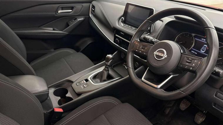 7" High definition full colour TFT screen combimeter, Android auto/Apple CarPlay (Wired), Blind spot warning, Drive modes (sport, normal, eco), Electric speed sensitive power steering, Emergency and breakdown call, Idle stop/start system, Intelligent Cruise control (ICC), Intelligent driver alert system, Intelligent forward collision warning, Intelligent lane intervention, Lane departure prevention, Lane departure warning system, Maximum speed limiter, Nissan connect 8" touchscreen infotainment system, Push button starter, Rear cross traffic alert, Rear parking sensors, Rear view camera, Traffic sign recognition with legal speed adjustment, Trip computer, 6 speakers, AM/FM audio system with DAB, Bluetooth audio streaming, Front USB connections (Type-A and Type-C), Auto dimming rear view mirror, Auto rear wiper when reversing, Automatic hazard signal with emergency stop signal, Body colour mirror caps, Body coloured door handles, Bodyside mouldings, Chrome side window finisher, Door handle with button, Electric auto folding door mirrors, Electrically adjustable and heated door mirrors with LED turn indicator, Follow me home headlights, High beam assist, Intelligent auto headlights, LED daytime running lights, LED Headlights, LED rear lights, One touch front and rear electric windows with remote opening and closing, Partially body coloured bumpers, Rear reversing light (bulb lighting), Rear roof spoiler, Rear side wing doors, Shark fin antenna, Splash free rain sensing wipers, Three blink turn signal, 12v power socket in dashboard and luggage, 2x Rear coat hooks, 3 bench rear seats in 2nd row, 3 rear headrests, 4 folding assist grip, 6-way manually adjustable driver's seat, 60/40 split folding rear seat bench, Centre console storage tray, Chrome interior door handles, Cloth monoform upholstery, Driver and front passenger sunvisors with illuminated vanity mirrors, Driver seat back pocket, Dual zone automatic climate control with pollen filter, Electrically adjustable lumbar support for driver, Front and rear door storage, Front centre console and armrest, Front cupholders x 2, Front door with bottle holders, Glovebox with light, Hard trunk cover, Height adjustable driver's seat, Height adjustable front headrests, Height adjustable passenger seat, Leather shift knob, Leather steering wheel, Luggage space lighting, Manually adjustable passenger (slide recline + lifter), Multifunction steering wheel, Passenger seat back pocket, Rear armrest with 2 cupholders, Rear door bottle holders, Single front passenger seat, Steering wheel switches, Sunglasses holder, Tilt/telescopic adjustable steering wheel, Two rear isofix child seat anchorage points with top tether, 3x3 point rear seatbelt pretensioners + load limiters, ABS with EBD and brake assist, Active brake limited slip, Auto hold function, Child locks on rear doors, Curtain and front side, far side airbags, Driver and passenger airbags, Driver, passenger and 2nd row rear seat belt reminder, Electronic parking brake, Front seatbelt pretensioners + load limiters, Height adjustable front seatbelts, Hill start assist, Intelligent blind spot intervention, Intelligent front emergency braking with pedestrian, cyclist recognition and junction assist, Intelligent rear automatic braking, Tyre pressure monitoring system, Vehicle dynamic control, Capless fuel filler, Engine immobiliser, Intelligent Key, Remote central door locking with deadlocking, Thatcham Cat.1 alarm, Interior instrumental panel A finisher, 17" Alloy wheels, Tyre puncture repair kit,