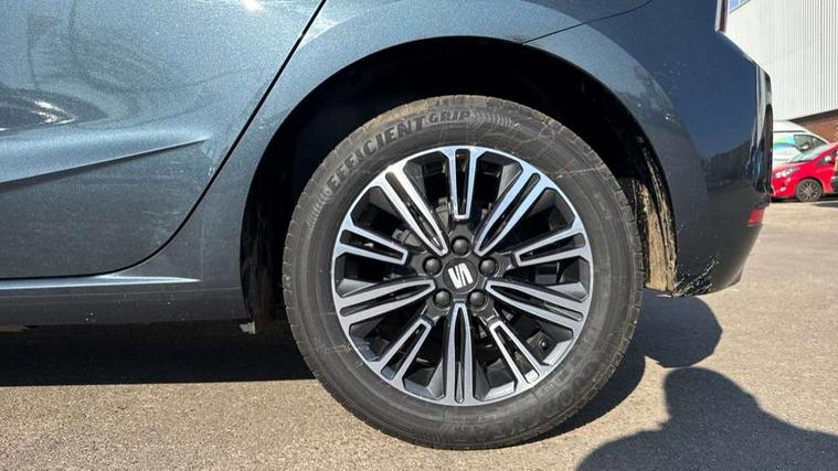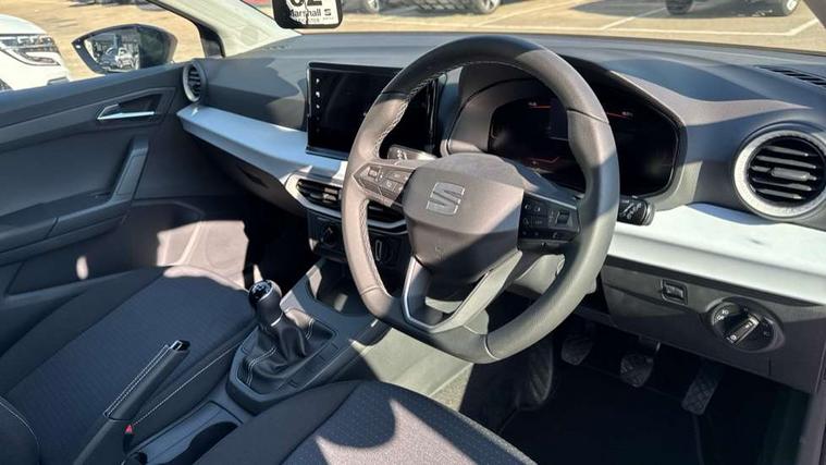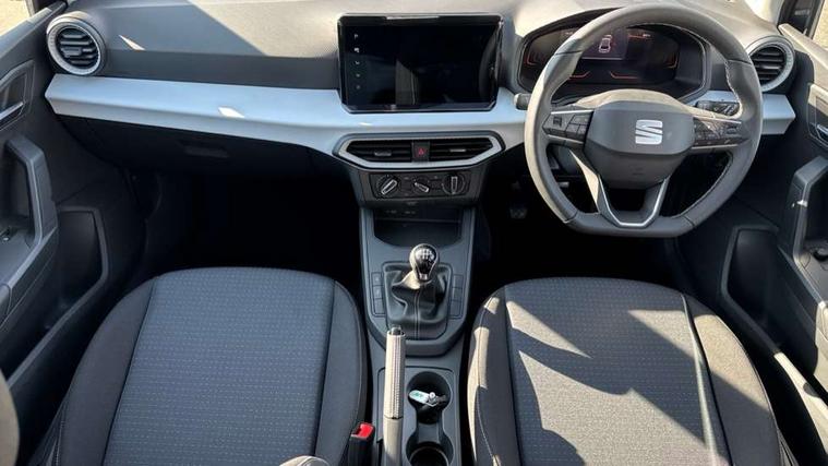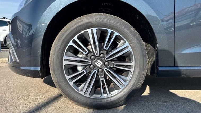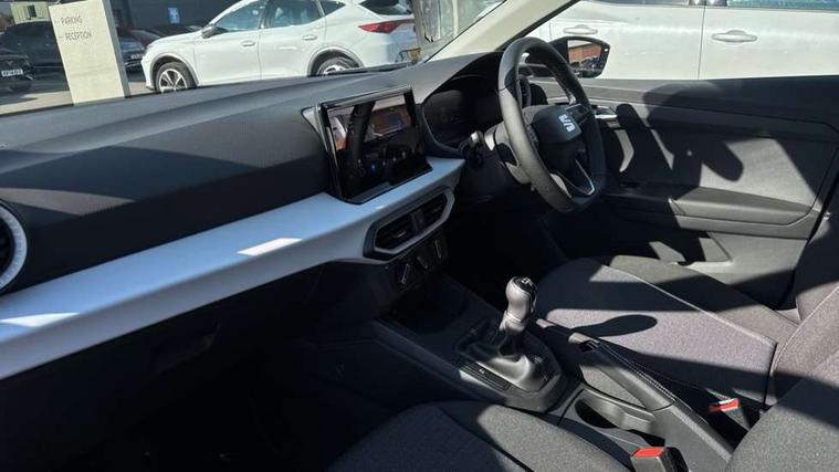 'Lights On' Reminder warning buzzer, 8" Digital cockpit, 9.2" touchscreen navigation system with type C USB socket, Voice control and DAB/AM/FM radio, Auto start and stop system, Bluetooth audio streaming with handsfree system, Cruise control, Digital clock, E-call, Full link smartphone integration with mirror link, wireless apple carplay, Google android auto + USB Type C cable for apple and android devices, Lane assist, Low fuel warning light, Outside temperature gauge, Power Steering, Rear parking sensor, Seat connect plus with safety, service, remote and online, SEAT logo boot release, Speed limiter, Traffic sign recognition, Trip computer, Comfort suspension, Auxiliary input socket, Radio/MP3 player, SD card slot, Steering wheel mounted controls, Anti theft roof antenna, Body colour bumpers, Body colour door handles, Body colour door mirror caps, Dimming interior rear view mirror, ECO LED automatic headlights and LED daytime running lights, Electric front windows, Electric headlight adjustment, Electrically adjustable door mirrors, Front/rear fog lights, LED tail lights, Rain sensor, Rear side wing doors, Rear wiper, Third brake light, 3 seat bench in 2nd row, 60/40 split folding rear seat, Air conditioning with dust and pollen filter, Chrome interior detailing and grey headlining, Cloth upholstery, Comfort seats, Front courtesy lights, Front cupholders x 2, Front reading lights, Gear shift indicator, Glovebox, Grey interior air vents, Height adjustable front and rear headrests (five), Height adjustable front seats, Height/reach adjust steering wheel, Illuminated boot, Instrument lighting with brightness control, Isofix, Leather multifunction flat bottomed sports steering wheel, Passenger sunvisor, Single front passenger seat, Sunvisors with mirror and driver side card holder, Safety and driving pack (S) - Ibiza, 3 point seatbelts on all 3 rear seats, ABS, Active front headrests, Child locks on rear doors, Electronic stability control, Energy recovery system, Front assist forward collision warning and autonomous emergency braking, Front driver and passenger side airbags with curtain airbag and front passenger airbag deactivation, Hill hold control, Multi-Collision braking, Seat belt reminder for front and rear seats, Tiredness recognition system, Tyre pressure monitoring system, Electronic engine immobiliser, Locking wheel bolts, Remote central locking + deadlocks, 16" Design machined alloy wheels in Nuclear grey,