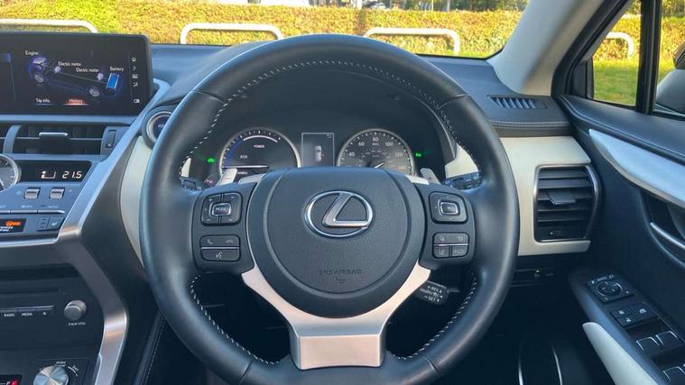 4 driving modes EV/Eco/Normal/Sport, 8" display screen with remote touch interface, Analogue clock, Apple car play/Android Auto, Bluetooth telephone connectivity, Electric speed sensitive power steering, Intelligent parking sensors - 4 front and 4 rear, Lane change flasher function, Lexus link connected services with available optional wifi, Lexus navigation system, Push button starter, Reversing camera, All wheel drive system, Vehicle Dynamics Integrated Management (VDIM), Vehicle Stability Control (VSC), 2 USB ports, 8 Speakers, AUX socket with VTR compatibility, CD player, DAB Digital radio, Auto dimming interior rear view mirror, Bi LED headlight with Auto high beam, Body adhesive, laser screw welding and laser brazed roof structure, Front and rear one touch power windows, with anti-jam protection, Heated and auto folding door mirrors with turn indicators, Hidden exhaust pipe, LED brake lights and rear lights with emergency brake signal, LED daytime running lights, LED front and rear sequential indicators, Rain sensor windscreen wipers, Roof rails, 12V accessory port centre console and luggage compartment, 2 cupholders in front centre console, 2 map pockets in the rear, 2 x fixed shopping bag hooks in boot, 2 x sun visors with vanity mirror and lamp, 6 tie down hooks in boot, 60/40 split folding rear seat, 8 way driver/passenger electrically adjustable front seats, Adjustable rear seat backrest, Card holder installed in driver and passengers sun visors, Centre armrest with storage box, Dual climate control air conditioning system, Front and rear head restraints, Front and rear textile carpet mats, Heated front seats, Leather gear lever, Leather steering wheel with paddle shifts, LED interior illumination, Rear air vents, Rear centre armrest with 2 cupholders, Self charging hybrid, Tahara leather upholstery, Whiplash Injury Lessening (WIL) feature (active headrest) for seats, 2 x Isofix child rear seat restraints, 3 point ELR front seatbelts with pretensioners, 3x3 point rear seat belts, ABS, Adjustable seat belt anchor points, Driver and front passenger 2 stage airbag, Driver/front passenger side airbags, Drivers knee airbag, EBD + Brake Assist, ECB (Electronically Controlled Brake System), Electronic parking brake, Front and rear curtain shield airbags, Front passenger seat cushion airbag, Hill start assist, Hybrid automatic with 6 stage sequential shift and kick down switch, Lexus safety system - dynamic radar cruise control, pre collision system day and night, lane tracing assist, road sign, automatic high beam, OTA, Passenger airbag cut-off device, Traction control, Tyre pressure warning, 2 x remote key fobs, Anti-theft system with siren, alarm, intrusion sensor, glass breakage sensor, tilt sensor and engine immobiliser, Locking wheel nuts, Speed sensitive auto door locking, Two motion door lock with double lock, VIN Window etching, Silver inlays, Space saver spare wheel,