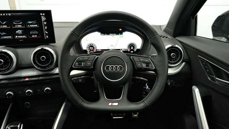 3D map display, Audi connect navigation and infotainment includes innovative services, Audi connect remote and control connects your vehicle to your smartphone, Audi drive select: S tronic - power steering assistance + engine + gearshift (modes: comfort, auto, dynamic, efficiency, individual), Audi smartphone interface - Apple carplay/Android Auto, USB connect, 2xSDXC card readers, voice control for navi, telephone, music and 3rd party apps, Audi virtual cockpit, Automatic start/stop system with recuperation, Bluetooth interface includes bluetooth audio streaming, Camera based traffic sign recognition, Cruise control, Distraction and Fatigue warning, E-call, Jukebox hard drive memory for music (10GB), Lane departure warning, MMI navigation plus with 8.8" touchscreen, Natural voice recognition, Power operated tailgate, Progressive steering, Rear parking sensors, Sport suspension, 6 passive loudspeakers, DAB Digital radio, USB type C port, Audi beam, Auto dimming rear view mirror, Black window trims, Bumper in full body colour paint finish, Electrically adjustable, folding, auto dimming and heated door mirrors with integrated LED side indicators, Front windscreen with grey tinted sunband, LED daytime running lights, LED headlights with dipped beam, high beam, position lights, indicators, LED rear lights, LED third brake light, Privacy glass - dark tinted rear and rear side windows from B-pillar backwards, Rear side wing doors, Rear wiper, Variable front intermittent wipers, Wheel arch trims in manhattan grey, 12V socket in front, 3 seat bench in 2nd row, 3 spoke flat bottomed multi-function leather sport steering wheel with gear shift paddles, 4-way electric lumbar support for front seats including manual seat height adjustment for both front seats, 60/40 split folding rear seat bench, Black carpets, Black cloth headlining, Front and rear head restraints, Front centre armrest, Front sport seats, Front/rear floor mats, Height/reach adjust steering wheel, Illuminated door sill trims with S logo, ISOFIX child seat mounting in front passenger and rear outer seats, Manual air conditioning, Single front passenger seat, Stainless steel pedals, Black styling pack - Q2, 3x3 point rear seatbelts, 6 airbags - Front, curtain and front side airbags, Electromechanical parking brake, Electronic stabilisation control including ABS, ASR and EDL, Front passenger airbag deactivation, Hill hold assist, Pre-sense front with pedestrian recognition, Seatbelt monitoring, Tyre pressure warning light with visual and acoustic warning, Warning triangle and first aid kit, Anti theft wheel bolts, Electronically operated child locks, Remote central door locking, Thatcham category 1 alarm, Aluminium interior element, Black dashboard, Gloss black centre console, Matt brushed aluminium trim inlays, Tool kit,
