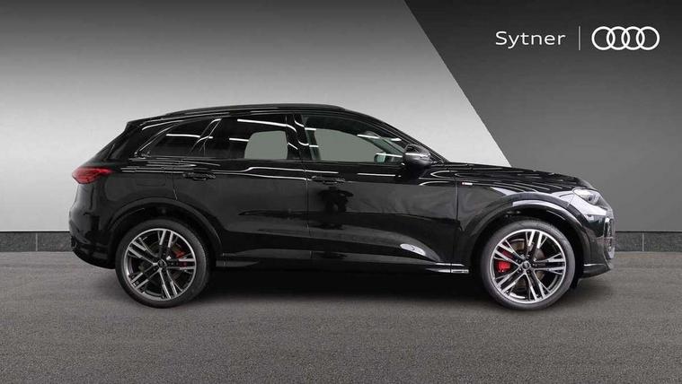 Adaptive cruise control, Advanced driver attention alert, Audi application store, Audi connect emergency call and service, Audi drive select, Audi smartphone interface, Audi virtual cockpit plus with 11.9" OLED colour display, Camera based traffic sign recognition, Fatigue monitor, Front cross traffic intersection assist, Lane change assistant with exit warning system, rear cross traffic alert and rear turn assist, Lane departure warning with emergency assist, MMI 10.9" front passenger touch display, MMI navigation plus with high resolution 14.5" OLED touchscreen colour display, Park assist plus, Parking system plus with 360 display, PAS, Reversing camera, Swerve assist and turn assist, Top view camera, Traffic sign based speed limiter, 2 USB-C ports in both the front and rear, Audi sound system impressive sound with 10 loudspeakers including centre speaker and subwoofer, 6-channel amplifier with a total output of 180 watts, DAB Digital radio, Smartphone compartment with wireless charging, Active digital light signatures - Six additional combinations of active daytime running light signature, Auto dimming rear view mirror, Black roof rails, Coming/leaving home lighting function, Electrically adjustable heated and folding + automatically dimming exterior mirrors, Exhaust tailpipes in dark chrome, Front and rear electric windows, Front door sill trims with aluminium inlays, illuminated with 'S' logo, Full body paint finish, Grill frame, inlay and front air inlets in matt anthracite chrome, Headlight cleaning system, Heated rear window, High beam assist, High gloss window surrounds, LED rear lights pro incl. dynamic rear indicators and illuminated light strip with animated coming and leaving home function, Logo projection light in exterior mirrors, Matrix LED headlights, Memory function for door mirrors, Privacy glass, Projection third brake light for rear window in LED, Radiator grille in phantom black, Rear and side windows with heat insulating glass, Rear honeycombe grille in matt black with inlay in matt anthracite chrome, Rear side wing doors, Rear wash/wipe, S Line badge on the front wings, Towbar preparation, Windscreen with acoustic glazing, 3 rear head restraints, 3 seat bench in 2nd row, 3 spoke leather steering wheel with multi-function buttons with touch control, flattened on top and bottom, with S badging and contrast stitching, 4 way electric lumbar support for driver and front passenger, 40:20:40 split folding rear seat bench with centre armrest and cup holders, Comfort centre armrest front, Deluxe 3 zone electronic climate control, Dinamica microfiber/leather upholstery, Electrically adjustable front seats with memory function for driver's side, Front and rear floor mats, Front sport seats with integrated head restraints, Headlining in black cloth, Heated front seats, i-Size child seat mounting on the front passenger side and outer rear seats, i-Size and top tether on the outer rear seats, Interior trim in aluminium look, Luggage compartment lid, electrically opening and closing, Manual steering column adjustment, Single front passenger seat, Softwrap in Dinamica, Stainless steel pedals and footrest, Steering wheel grips in perforated leather and shift paddles, Ambient lighting package plus - Q5, Black styling package plus - Q5, Storage and luggage compartment pack - Q5, 3x3 point rear seatbelts, ABS, Acoustic vehicle alerting system, Convenience key with safelock, Driver and front passenger airbag with passenger airbag deactivation, Electric child safety locks, First aid kit with warning triangle and high visibility vests, Front emergency brake assist, Front side airbags with head airbag system and front interaction airbag, Hill hold assist, Occupant detection in rear seat area, Proactive passenger protection system for front, sides and rear, Red brake calipers, Side airbags in front and rear with head airbag system and front interaction airbag, Tyre pressure loss indicator, Anti theft alarm, Anti-theft wheel bolts, Remote control key with SAFELOCK and keyless go, Accent surfaces and control buttons in gloss black, Black dashboard with contrast stitching, Steel grey seat stitching, Upper and lower interior elements in dinamica microfiber, Tyre repair kit,