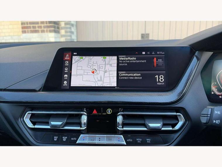 Active guard plus, Attentiveness assist, BMW Online services, BMW Teleservices, Check Control warning system for monitoring of lights and door/luggage compartment open warning, Connected eDrive Services, Cruise control with brake assist, Eco pro mode, Electric power steering with Servotronic steering optimised at all speed ranges, Integrated owners handbook, Lane departure warning system, Oil sensor for level and grade, On board computer, Optimum shift indicator, Personal Profile, Pull away assistant, Speed limiter, 6 speed manual transmission, Aluminium lightweight construction, Anti roll bar front and rear, Balancer shaft, Double VANOS, Drive Performance Control, Electronic differential lock, High precision injection, Petrol Particulate Filter, VALVETRONIC engine management, Bluetooth audio streaming, DAB Digital radio, Auto dimming rear view mirror, Automatic windscreen wipers and automatic headlight, Body colour door handles, Body colour mirror caps, Chrome exhaust tailpipe in single, round (Exhaust tailpipe, stainless steel - single, round), Chrome kidney grille with extra wide black, high gloss black vertical slats, Direction indicator side lights in exterior mirrors, Fading support, Follow me home headlights, Front and rear bumper system with replaceable deformation elements, Front and rear electric windows with open and close fingertip control, anti trap facility and comfort closing, Front bumper in Body colour with exclusive Sport air inlets finished in High gloss Black, Front door sill finishers in black plastic with BMW designation, Green tinted heat protection glazing, Heated, electrically adjustable exterior mirror aspheric on driver side, convex on passenger side, High gloss shadowline window frame, Recess cover mirror frames and B/C pillar embelisher trim, High level third brake light, LED daytime running lights, LED eyebrow turn indicators, LED front fog lights, Lightweight engineering, Manual headlight beam throw control, Matt black air guide grilles, Model designation on right side of tailgate, Nearside reverse light in rear light cluster, Preparation for high beam assistant, Rain sensor including auto headlights activation, Rear bumper in Body colour with exclusive Sport design elements finished in High gloss Black, Rear fog lights, Rear window wiper, Shark fin antenna, Visible VIN plate, Welcome lighting, 12V power socket in centre console, 3 rear seat head restraints, 3 spoke sports leather steering wheel in pearl Chrome, Child seat ISOFIX attachment for two outer rear seats and front passenger seat with anchorage points, Conditioned based service, Folding rear clothes hook, Four grab handles integrated in roof lining, Front and rear door pockets, Front and rear door pockets with bottle holders, Front and rear side armrest integrated into door trim, Front armrest foldable with integrated storage compartment, Front sports seats with electric side bolster adjustment, Glove compartment, Height adjustable front head restraints, Manual adjust steering wheel, Multi-function controls for steering wheel, Storage compartment in centre console, Sun visors with vanity mirrors and insert tab, Two zone automatic air conditioning, Velour floor mats, Connected pack professional - 1 Series, Extended storage pack - 1 Series, Interior lights pack - 1 Series, 2 tone horn, 3 point seatbelts on all seats, front pyrotechnic belt tensioners, stopper and belt force limiters, rear coded belt buckles, Airbags - front driver/passenger, front & rear curtain, front side, Anti lock braking system (ABS) with brake assist, BMW emergency call, Brake drying, Braking readiness, City braking function, Crash sensor activating central locking release, hazard warning lights, fuel cut off, interior lighting + activation of safety battery terminal clamp, Driver and front passenger seat belt security check, Dynamic stability control + (DSC+), Dynamic Traction Control - DTC, Electrically operated hand brake, Front and rear disc brakes, Front passenger manual airbag deactivation, Seatbelt warning, Side impact protection, Tyre pressure monitoring system, Warning triangle and first aid kit, Automatic drive away locking facility, Central locking switch for all doors, fuel filler cap and luggage compartment, Deadlocking function system to all doors, Locking wheel bolts, Remote central locking with two Integrate key, one button for opening and closing all lock, open and close window, button for open luggage compartment, Start/stop button with comfort go keyless engine start and auto start stop deactivation button, Thatcham Cat.1 alarm and immobiliser, Contrast stitching on instrument panel, Illuminated Berlin interior trim, Reduced rolling resistance tyres,