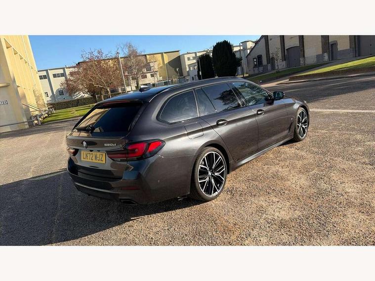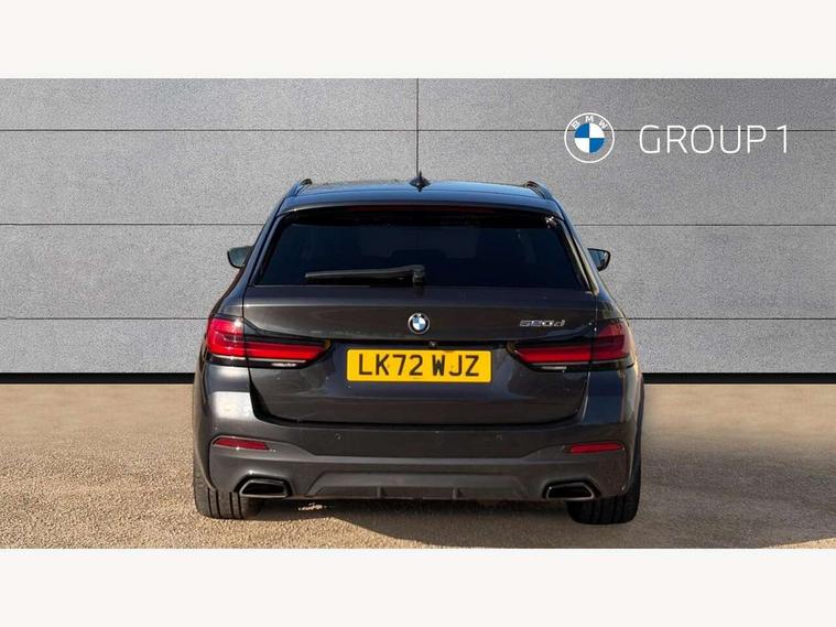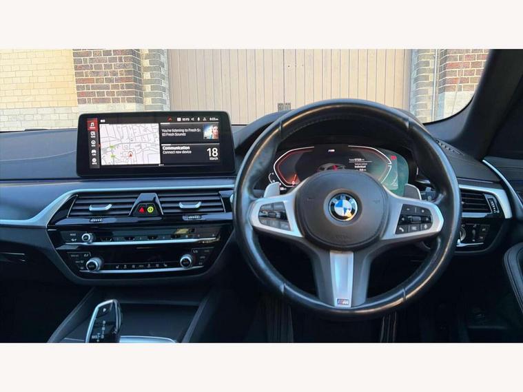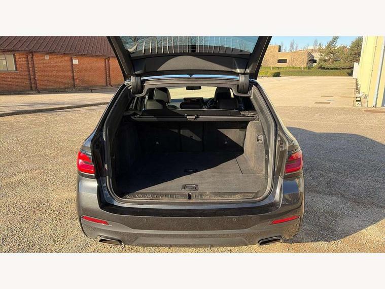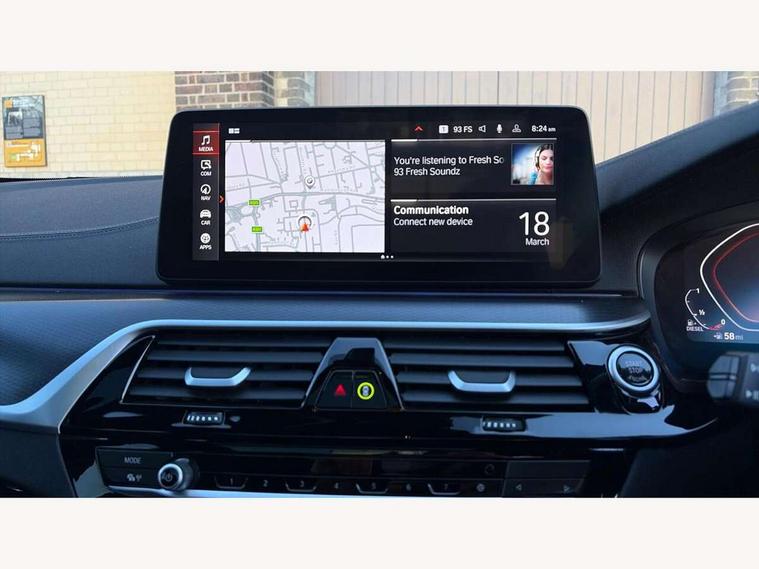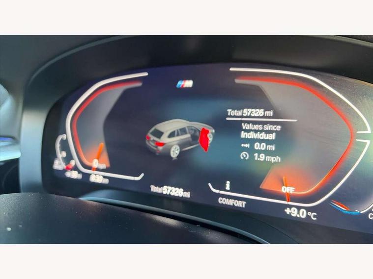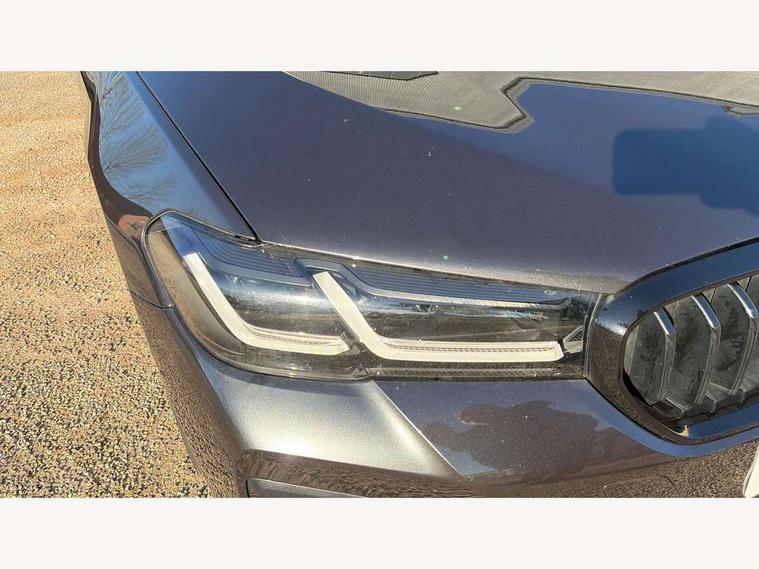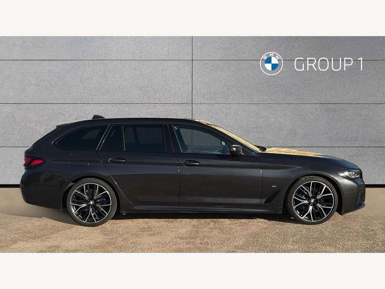 32GB hard disc drive (HDD) memory, Active Guard, Bluetooth connection, BMW ConnectedDrive online services, BMW Live Cockpit Professional sat nav system with 12.3" instrument display and high resolution control display, BMW Teleservices, Brake pad wear indicator, Cruise control with brake assist, Driving experience switch, eCall emergency call system, Electric boot lid - electrically opening/closing rear tailgate, Electric Power Steering (EPS) with Servotronic, iDrive controller with shortcut buttons, Intelligent emergency call, Multifunctional instrument panel, Oil sensor for level and grade, On board computer inc. average speed, fuel consumption, liquid crystal Info display, journey computer, outside temperature display, personal profile, On-board diagnosis - OBD, Powered by Operating System 7.0, Service interval indicator, Speed limiting function, Stop/start button, 48V Mild hybrid technology, Diesel particulate filter, Drive performance control with ECO PRO comfort + sport mode, Engine cover with twin turbo designation, M sport suspension, Steptronic sport transmission with gearshift paddle switches on steering wheel, DAB Digital radio, Favourite buttons, Acoustic glazing, All round anti-corrosion system, Automatic windscreen wipers and automatic headlight, Automatically dimming rear view mirror, BMW Individual high gloss shadow line includes exterior mirror frame, window frame surround, B pillar finish, air breather in high gloss black, Body colour door handles, Body coloured bumpers, Door handle illumination, Dynamic brake lights with LED technology, Electric front and rear windows with fingertip open/close + anti-trap facility and comfort closing function, Electrically adjustable and heated exterior mirrors includes integrated direction indicators and automatic parking function, Folding exterior side mirror with auto- dimming, Follow me home headlight function, Heated windscreen washer jets, High gloss black active air stream kidney grille, High gloss shadow line roof rails, Independent opening for tailgate window, LED daytime running lights, LED Headlights, LED third brake light, M designation on front side panels, left and right in chrome, M Sport exterior styling, Preparation for high beam assistant, Rear side wing doors, Rear wiper, Trapezoidal visible exhaust tailpipes, 12V power socket in front and rear, 3 seat bench in 2nd row, 40/20/40 split folding rear seats with additional mechanism in luggage compartment, Anthracite headlining, Armrest - front and rear integrated door trim, centre console includes storage compartment, rear centre includes 2 cupholders, Child seat ISOFIX attachment with rear outer seats includes top tether, Cup holders (2 front and 2 rear), Front and rear footwell lights, Front reading lights, Height and length adjustable steering column and activation via lateral lever on the steering column, Lockable glove compartment with light, M door sill finishers, M specific pedals, M specific velour floor mats, Multifunction controls for leather steering wheel, Rear headrests, Retractable luggage compartment dividing net, Single front passenger seat, Three spoke sport M leather steering wheel, Ambient lighting pack - 5 Series, Connected package professional - 5 Series, M Aerodynamic pack - 5 Series, Parking assistant pack - 5 Series, Airbags - driver/front passenger, rear and side, first and second row seats head airbags, front passenger seat airbag deactivation, Anti-lock braking system (ABS), Automatic Stability Control (ASC), Brake assist function, Brake energy regeneration, Cornering brake control (CBC), Crash sensor activating central locking release, hazard warning lights, fuel cut off and interior lighting, Deformation zones - front and rear with door reinforcements and bumpers up to 2.5 mph, DSC - Dynamic Stability Control, Dynamic brake control, Dynamic Traction Control - DTC, Electromechanical parking brake with automatic drive away release and auto hold function, Electronic brake force distribution, Engine drag torque control, Front and rear brake discs with interior ventilation, Front head restraints with anti-whiplash, Hill start assist, Mechanical child proof lock on rear doors, Passive protection for pedestrians, Rear door child safety locks, Side impact protection, Three point seat belts for all four seats, Two tone horn, Tyre pressure indicator, Warning triangle and first aid kit, Alarm system (Thatcham 1) with remote control and electronic engine immobiliser, Locking wheel bolts,