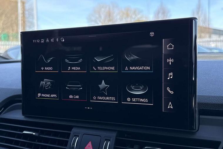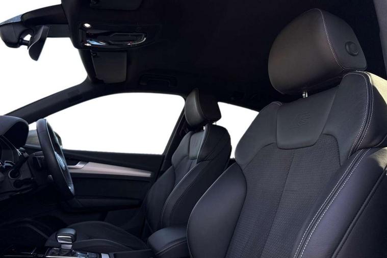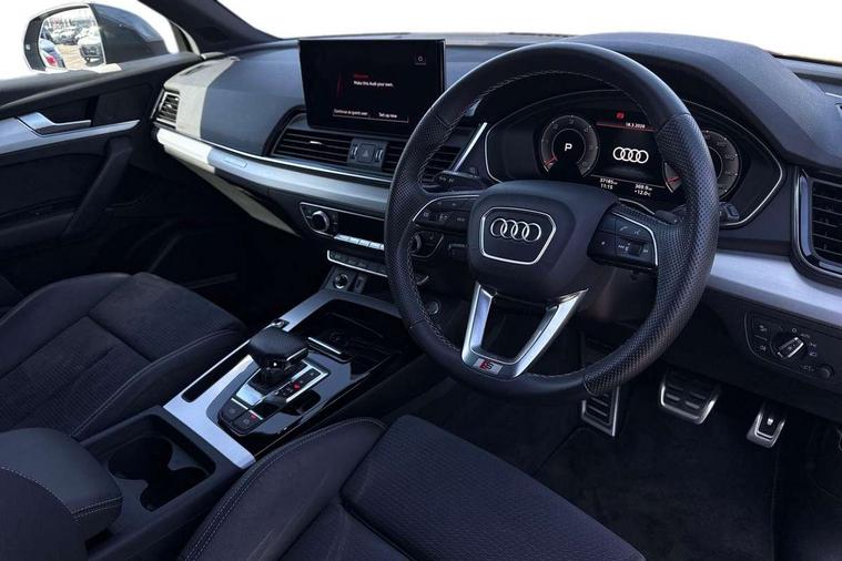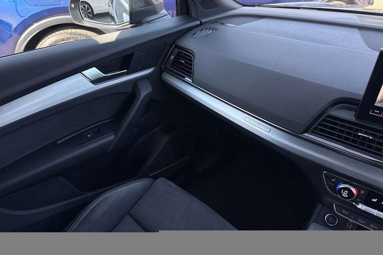 Audi connect safety and service (e-call), Audi connect with Amazon Alexa Integration, Audi drive select, Audi virtual cockpit plus with 12.3" screen and three different layout designs, Audi wireless smartphone interface, Automatic start-stop system with coasting functionality and efficiency programme, Bluetooth interface, Electro - mechanical power assisted steering, MMI navigation plus with 10.1" touch screen, Power tailgate, Reversing camera, Service interval indicator, Voice control system with Audi hotword activation "Hey Audi", Diesel particulate filter, Quattro on demand, S line sports suspension, 2 x USB charging port with aux input socket, DAB Digital radio, Acoustic windscreen, Aluminium roof rails, Audi matrix LED headlights with dynamic front and rear indicators, Auto dimming door mirrors, Auto dimming rear view mirror, Automatic headlights and windscreen wipers, Body colour door mirrors, Body colour rear diffuser with matt aluminium silver surrounds, Body colour underbody protection, Chrome plated exhaust trims, Daytime running lights, Door sills in Selenite silver, Electric adjustable/heated/folding door mirrors, Front air inlet surrounds in aluminium, Front and rear electric windows, Front radiator grille in honeycomb design, Headlight washers, High level LED brake light, Lower bumpers painted in contrast Manhattan grey, Rear chrome trim strip below lights, Rear privacy glass and rear side windows, Rear side wing doors, Rear wiper, Roof bars, S Line badges on the front wings, S Line front and rear bumpers, S Line rear spoiler, S Line side skirts, 3 rear headrests, 40:20:40 split folding 3 rear bench seat in 2nd row with rear centre armrest, Black cloth headlining, Comfort front centre armrest, Contrast stitching on seats, steering wheel and gear lever gaiter, Deluxe 3 zone electronic climate control, Front head restraints, Front/rear floor mats, Gear lever in black leather, Heated front seats, Height/reach adjustable steering column, Illuminated door sill trims with S logo, ISOFIX child seat mounting and top tether, Manual seat adjustment with 4-way electric lumbar support, Removable luggage compartment floor, Single front passenger seat, Stainless steel pedals, Sunvisors with vanity mirrors, Trunk roller cover, High gloss pack - Q5, LED interior light pack - Q5, 3 point seatbelts on all seats, 6 airbags - Driver, front passenger, curtain and side airbags, Electrically operated child locks on rear doors, Electromechanical parking brake, Electronic stabilisation control including ABS, ASR and EDL, Front passenger airbag deactivation, Hill descent control, Hill hold assist, Multi collision brake assist, Pop-up bonnet for pedestrian protection, Pre sense city, Seat belt force limiter, Seatbelt monitoring, Tyre pressure warning, Warning triangle and first aid kit, Anti theft alarm, Anti-theft wheel bolts, Keyless Go access/ignition system, Remote central locking, Matt brushed aluminium inlays,