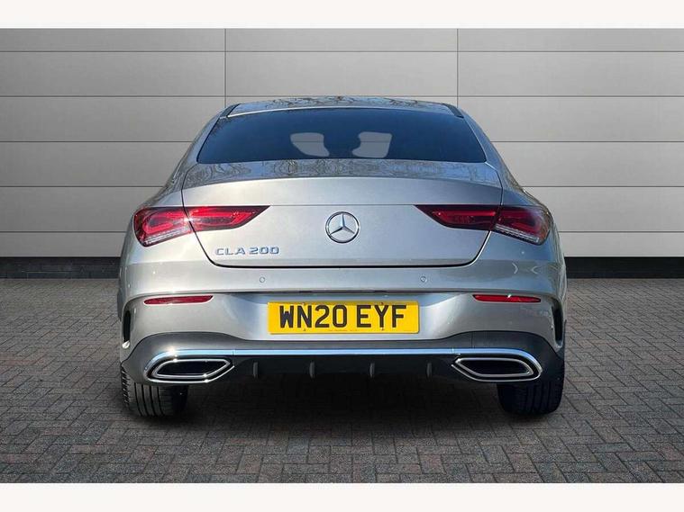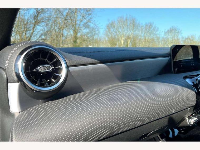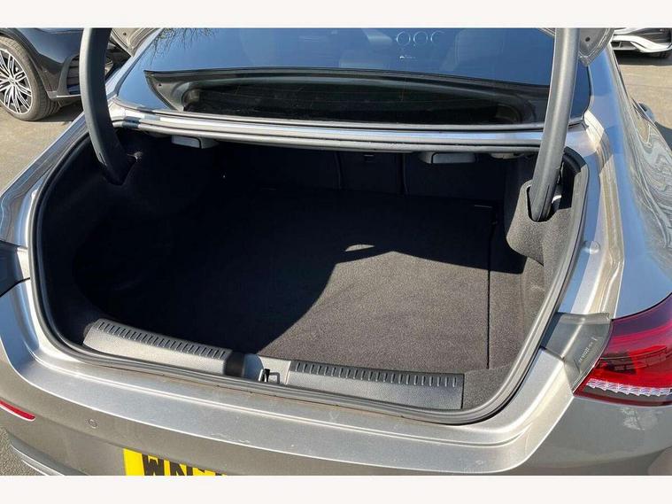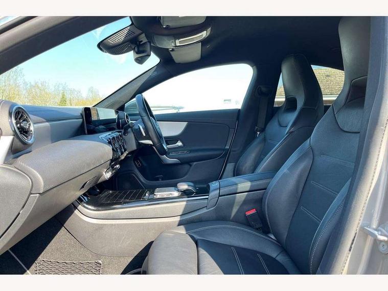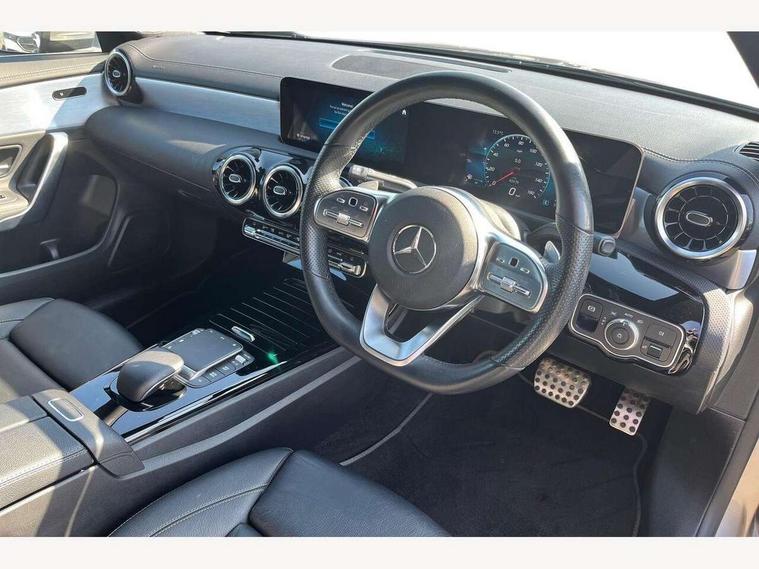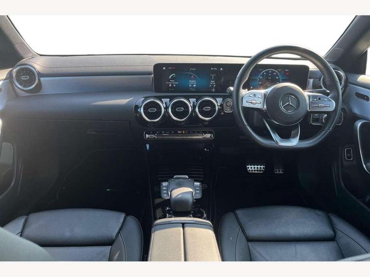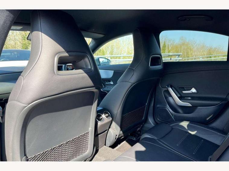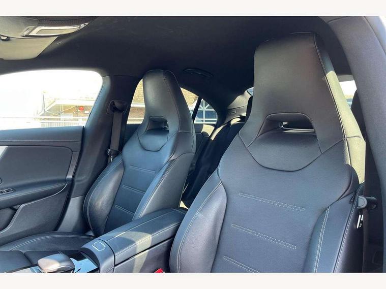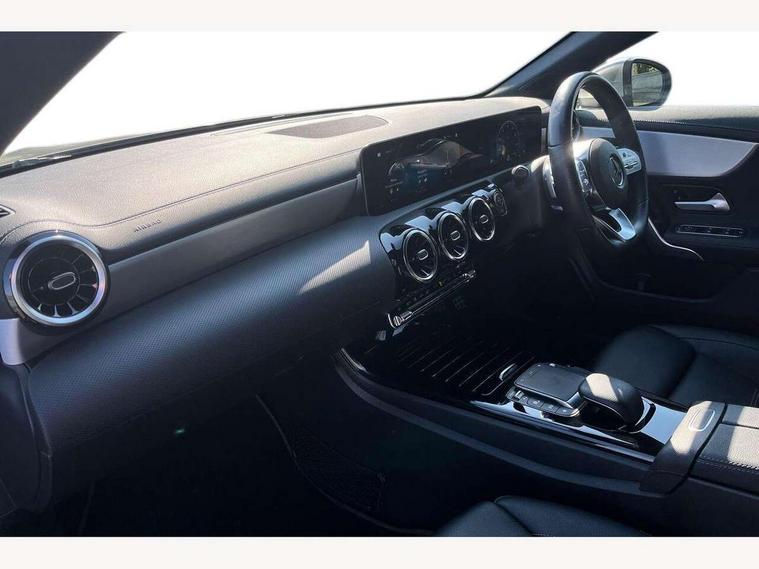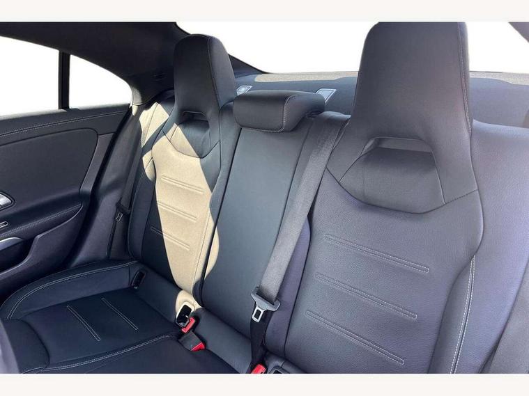 10.25 inch touchscreen central media display, 7 inch Instrument display with digital cockpit, Active lane keeping assist, Attention assist - Monitors steering behaviour and long journey fatigue, Cruise control with limiter, Direct steer system with speed sensitive power steering, Dual bluetooth interfaces, DYNAMIC SELECT with a choice of driving modes (ECO, Comfort, Sport, Sport+ and Individual), ECO start/stop function, Fluid level warning indicator for fuel, oil, coolant and washer fluid, Hard-disk navigation, Hey Mercedes Voice activation, Lamp failure indicator, Mercedes me connect including emergency call system, accident recovery, breakdown management and maintenance, Outside temperature gauge, Owners manual and service booklet in English, Pre-installation for Vehicle Monitoring, Pre-installation for Vehicle Setup, Pre-installation of private car share, Preinstallation for Mercedes Benz link, Radio aerial integrated into front and rear windshields, Service indicator (ASSYST), Smartphone integration with Apple CarPlay and Android auto, Speed limit assist, Trip computer in multifunction display with current consumption indicator, Wireless charging, 7G-DCT 7 speed automatic transmission, Lowered comfort suspension, Rear axle multi-link, Sporty engine sound system, DAB digital radio tuner, MBUX multimedia system with DAB digital radio and touchpad including satellite navigation, Mercedes Benz sound system (100 W) with 6 speakers, USB (type C) ports (2) in stowage compartment and 1 in front of centre console, Adaptive brake lights, AMG body styling with AMG front apron and rear apron and visible exhaust tailpipe in chrome trim elements, AMG bodystyling side skirts, Body colour bumpers, Body colour door handles, Chrome beltline strips, Diamond radiator grille pins in chrome with silver painted louvres and chrome insert, Electric windows, Electrically adjustable and heated door mirrors with integrated LED indicators, Exhaust system with 2 Visible tailpipe trim elements and rear apron with trim in chrome, Headlamp assist automatic headlamp activation, Heated glass rear windscreen + timer control, High level LED third brake light, LED high performance headlamps with integrated LED daytime running lights, LED tail lamp, Privacy glass with dark tinting on rear side windows and rear window, Rain sensing windscreen wipers with two sensitivity settings, Rear fog lamp, Vehicle Monitoring, Vehicle Setup, Window line trim strip in chrome, 3 spoke flattened bottom nappa leather multifunction steering wheel with perforated leather in grip area, 40:20:40 split folding rear seats with backrest, Air conditioning - Two zone thermotronic luxury automatic climate control with display, Air vents with surround in silver chrome, Automatic child seat recognition sensor, Black roof lining, Brushed stainless steel sports pedals with rubber studs, Floor mats with stitched AMG lettering, Front centre armrest with stowage, Front door sills with Mercedes Benz lettering, Front seat cushion length adjustment, Galvanished gear shift paddles on steering wheel, Heated front seats, Illuminated glove compartment stowage, Luggage net on driver/front passenger seat backrest, Manually adjustable front seats, Manually height and reach adjustable steering column, Rear head restraints, Rear interior lamp, Spectacles compartment for driver, Sport seats with fixed head restraints, Stowage compartment in centre console with retractable cover, Sunvisors with illuminated vanity mirrors, Touchpad on center console, Twin front cupholders, Two outer rear seat isofix and top tether child seat fixing points, Light and sight pack - CLA, Mirror pack - CLA, Parking package - CLA, Seat comfort pack - CLA, Active bonnet pedestrain safety measure which detects an impact and raises bonnet by 65mm, Active brake assist includes forward collision warning system with autonomous braking, Adaptive brake assist with hold function and hill start assist, Anti-lock braking system (ABS), Black seat belts, Bonnet with power domes, Brake pad wear warning indicator, Childproof locks manually operated for rear doors and electrically operated for rear power windows, Crash responsive emergency lighting, Driver and front passenger head and sidebags, Driver and front passenger windowbags, Drivers knee airbag, Dual stage driver and front passenger airbags, Electric parking brake, Electronic stability programme with acceleration skid control, ESP curve dynamic assist, Front and rear seatbelt reminder, Front brake callipers with Mercedes Benz lettering, Front passenger seat occupancy sensor, Three point rear seat belts, Tyre pressure monitoring system, Warning triangle and first aid kit, Alarm system with immobiliser and interior protection -Thatcham category 1, Keyless Go starting function, Remote central locking and crash sensor with emergency opening function, Light aluminium with longitudinal grain interior trim, 18" 5 twin spoke design alloy wheels painted in titanium grey with high sheen finish, Summer tyres, Tirefit tyre sealant kit,