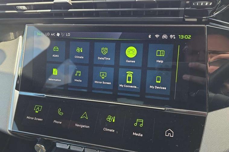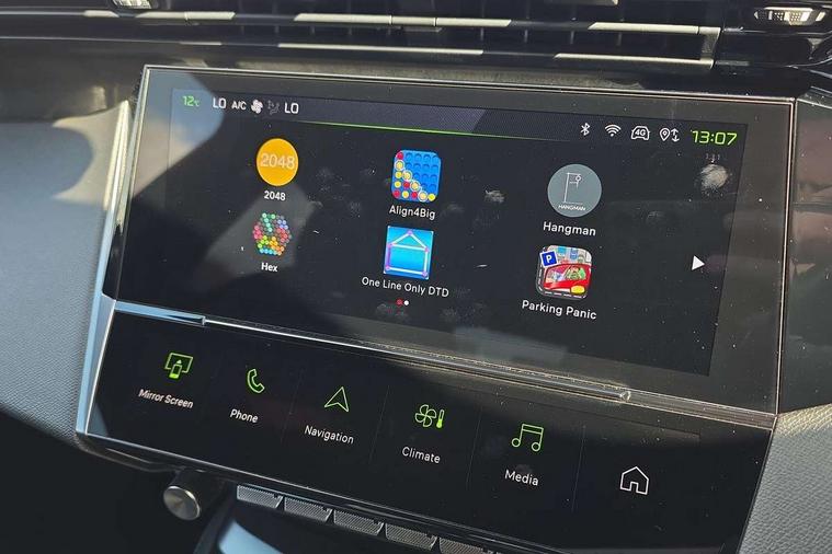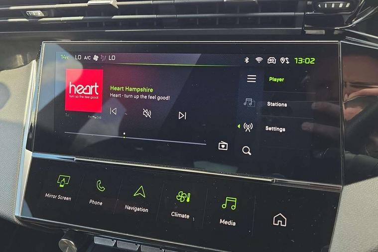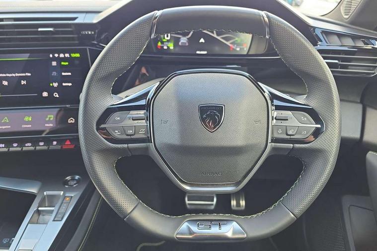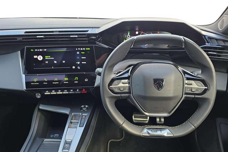 Bluetooth telephone facility, Compact automatic gearbox impulse selector, Driver attention warning, Driver's profile setting, Emergency call service, Extended traffic sign recognition, Exterior temperature indicator with ice warning, Front and rear parking sensors, Intelligent speed adaptation, Lane keep assist, Multi driving mode selector - Eco / Normal / Sport mode selector, Multi function trip computer, PEUGEOT i-Cockpit with 10.0" high definition (HD) capacitive touchscreen, PEUGEOT i-Cockpit with compact steering wheel, PEUGEOT i-Connect Advanced - Over the air updates, PEUGEOT SOS and assistance, Push button start, Speed limit recognition and recommendation, Wifi and voice recognition, Wireless apple car play/android Auto, 2x USB sockets in front, 2x USB sockets in rear, DAB Digital radio, PEUGEOT i-Cockpit with PEUGEOT configurable i-Toggles, 3rd brake light, 408 Model designation badges on front and rear, Acoustic laminated front windows, Acoustic tinted windscreen, Automatic hazard light activation upon heavy brake application, Body colour door handles, Body colour rear spoiler, Dark tinted rear side and tailgate windows, Electric, heated, and power folding door mirrors, Electrochrome rear view mirror, Front and rear electric windows with one touch/anti pinch, Front grille with vertical body colour stamping, Full LED matrix headlights with automatic adjustment, Gloss black finish B pillar, Gloss black rear cluster connecting strip, High beam assist, LED rear number plate lights, LED side indicator lights integrated into door mirrors, Lower body and wheel arch "SUV style" protection, Nera black door mirrors, PEUGEOT shield on front doors, PEUGEOT signature LED front daytime running lights incorporating indicators, Rear bumper grained black, Rear full LED 3D Peugeot new claw effect lights with sequential welcome sequence upon unlocking the vehicle, Rear Hybrid badging, Rear reversing lights, Rear side wing doors, Roof mounted 'fin' style antenna, Smart electric tailgate, Tailgate with heated rear windscreen and wiper blade, 1/3 2/3 'Magic Flat' folding rear seats with controls located in the boot, 2x 12V sockets, 3 seat bench in 2nd row, 4 Grab handles retractable and damped, 8 Colour personalisable ambient lighting, Aluminium door sills and boot sill, Aluminium pedals and footrest, Arch design central console with storage, Central front armrest with storage compartment, Dual Zone automatic air conditioning with AQS 3, Dynamic front seats, Electric power steering with reach and rake adjustable steering column, Front central console with two cup holders, Gloss black waistbelt (window weather strips), Glovebox with LED lighting, Heated steering wheel, High air vent system, Luggage cover, Luxury carpet mats with adamite green stitching, Multifunction full grain leather steering wheel with admite green stitching & GT badging, Piano keys toggle switches to access main functions, Roof lining - Mistral black, Seatbelt unfastened on the move audible and visual alert for front and rear seats, Single front passenger seat, Ski hatch with central rear armrest with cup holder, Steering wheel mounted gearshift paddles, Sunvisor with concealable vanity mirrors with LED lighting, Driver Sport Pack - 408, Visibility pack - 408, 2x Isofix child seat fitting on outer rear seats, 3x3 point rear seat belts, ABS + EBD + EBA, Active safety brake with night function/cyclists/pedestrians, Adaptive driver and front passenger airbags with passenger airbag deactivation function, Advanced emergency braking system (Video - AEB) includes Radar, Automatic post collision braking, Child locks on rear doors, Driver/front passenger side airbags, Electronic parking brake, ESP, Front and outer rear seatbelts with pyrotechnic pretensioners, Front and rear curtain airbags, Front and rear disc brakes, Front optimised safety headrests and rear retractable headrests (x3), height adjustable, Front three point retractable seatbelts with force limiters, Hill start assist, Tyre under inflation monitoring and indirect detection with visual indicator and warning sound, 2x keys, Acoustic vehicle alert system (AVAS), Anti-theft wheel bolts, Automatic door locking when moving off, Deadlocking system, Electronic code immobiliser, Locking wheel nuts, Peugeot open and go system includes keyless entry with proximity locking and unlocking, Thatcham cat. 1 alarm with anti lift sensor, 19" Graphite diamond cut alloy wheels in Onyx black gloss, Alloy wheel 'star' centre cap,