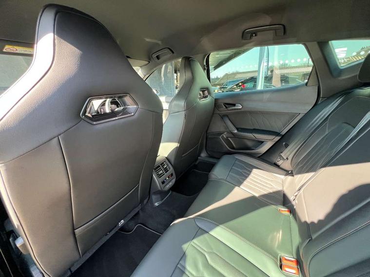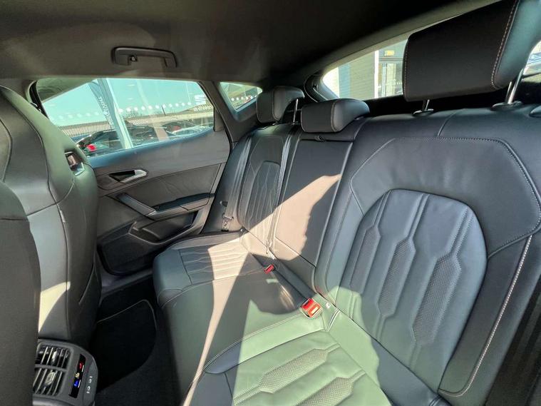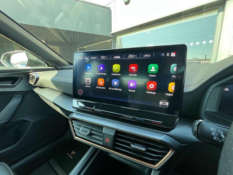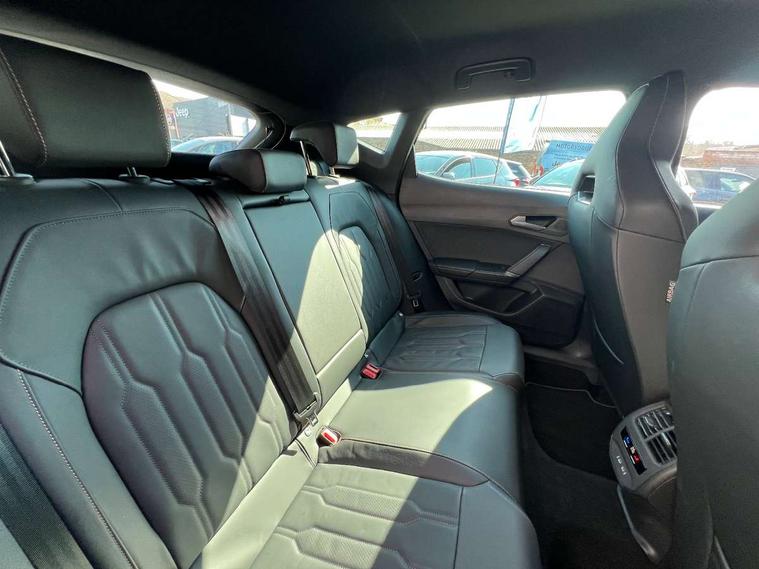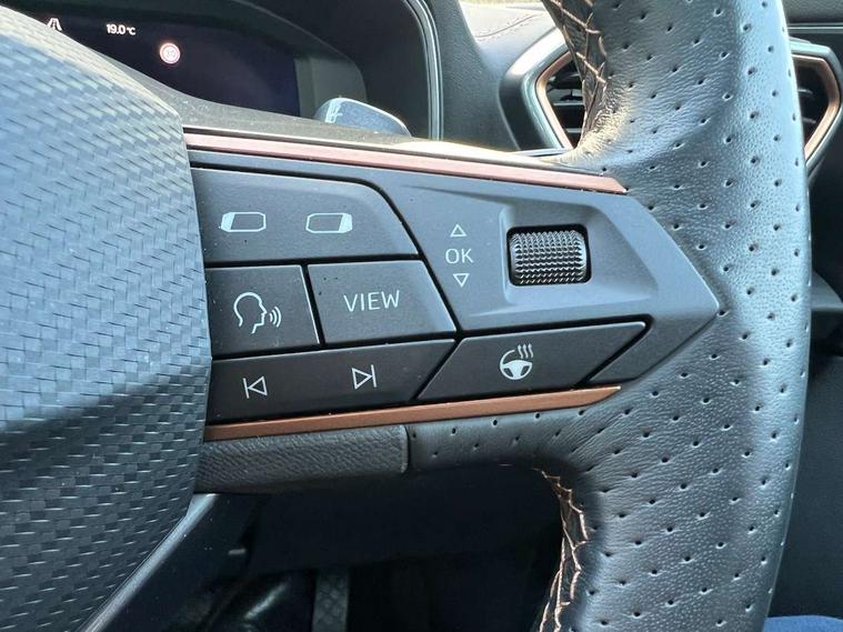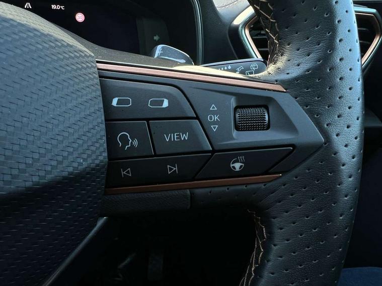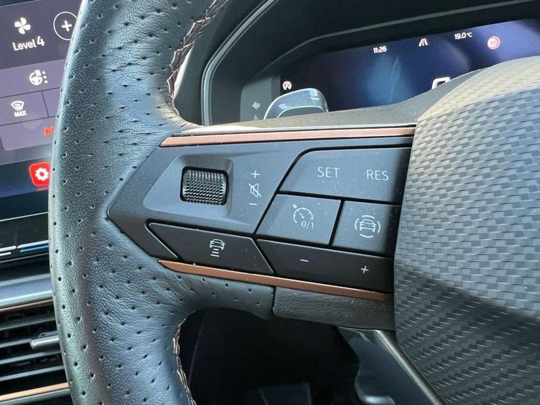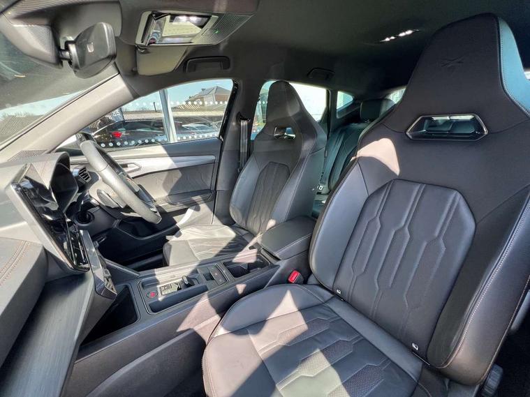 Digital cockpit and configurable dashboard, Driver alert system, Driving profile selection, Forward collision warning with automatic braking, Lane assist, Navigation system with 12'' Touchscreen Display, Park assist (inc front/rear parking sensors), PAS, Predictive adaptive cruise control with speed limiter, Rear view camera, RPM, trip computer, outside temp gauge, instrument light brightness, low fuel warning light, lights on reminder, gearshift indicator, Service interval indicator, Start/stop system with regenerative braking, Voice control system, Wired Android Auto, Wireless apple carplay, Wireless phone charger, Electronic locking differential and dynamic traction support, Standard suspension, 2 front and 2 rear USB type C sockets, Auxiliary input socket, DAB radio, Auto dimming rear view mirror, Body colour door handles, Body coloured bumpers, Dark grey wing mirror, Daytime running light with automatic headlight control and coming home feature, Dynamic headlight range control, Electric front/rear windows, Electrically adjustable heated and folding door mirrors with memory function, Front fog lamps with cornering function, Gloss black roof rails and window surrounds, LED Headlights, LED Taillights with dynamic indicator, Rain sensing wipers, Rear diffuser with black simulated exhaust pipes, Rear side wing doors, Rear wash/wipe, Third brake light, Tinted rear windows, Welcome lights, 12v power supply in centre console, 12V socket, 12v socket in loadspace, 2 front and 2 rear reading lights, 230V socket, 3 seat bench in 2nd row, 60/40 split rear bench seat with armrest and mechanical seat release, Black headlining, Dust/pollen filter, Front and rear head restraints, Front centre armrest, Height/reach adjust steering wheel, Illuminated interior front door sills, Illuminated sunvisor with mirror, Isofix, Leather multi function heated steering wheel with gear shift paddles, Luggage tie-down hooks, Single front passenger seat, Three zone climate control with control panel in rear, Variable luggage/load compartment floor, Wraparound lighting, Genuine Nappa leather Pack - Cupra, 3 point seatbelts on all rear seats, ABS, Brake control system - ESC and brake booster, Child proof door locks, Driver and front passenger airbags with front passenger airbag de-activation, Electronic parking brake, Front and rear disc brakes, Front side curtain airbags, Hill hold control, Public e-call, Seat belt reminder for front and rear seats, Tyre pressure monitoring system, Anti theft alarm system, Keyless entry and start system (KESSY), Locking wheel bolts, Copper and aluminium interior detailing, 19" 'Exclusive' machined sport matte black and silver alloy wheels,