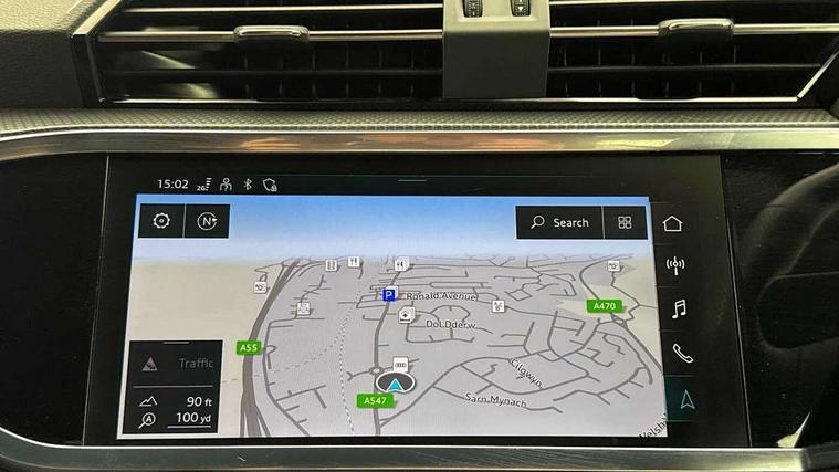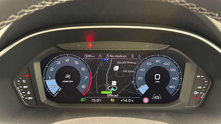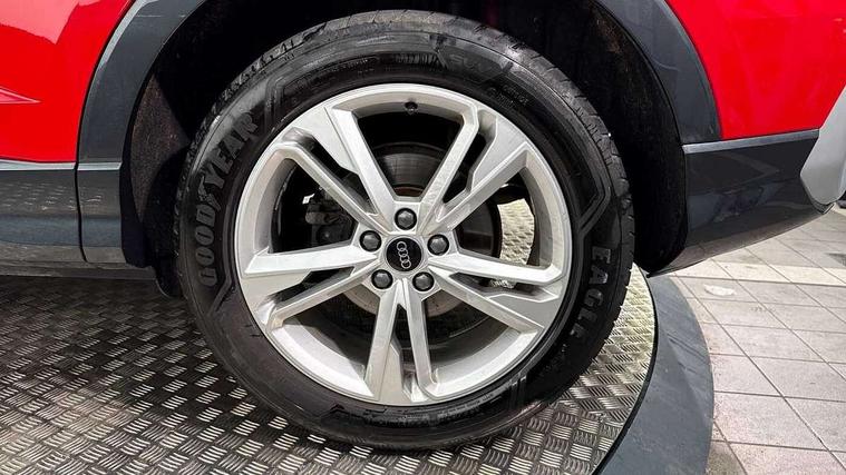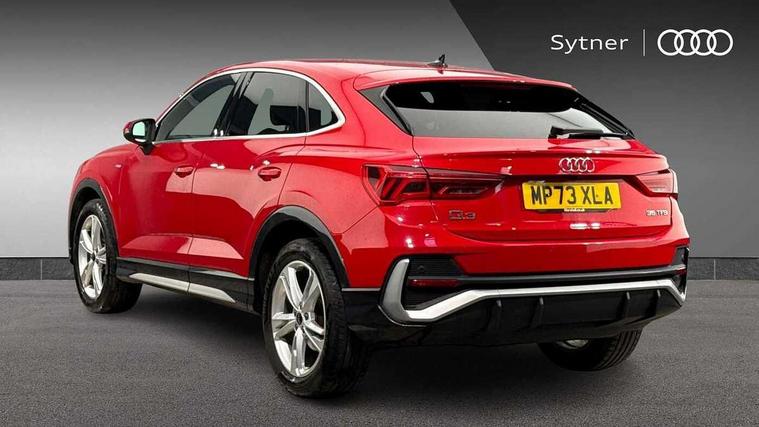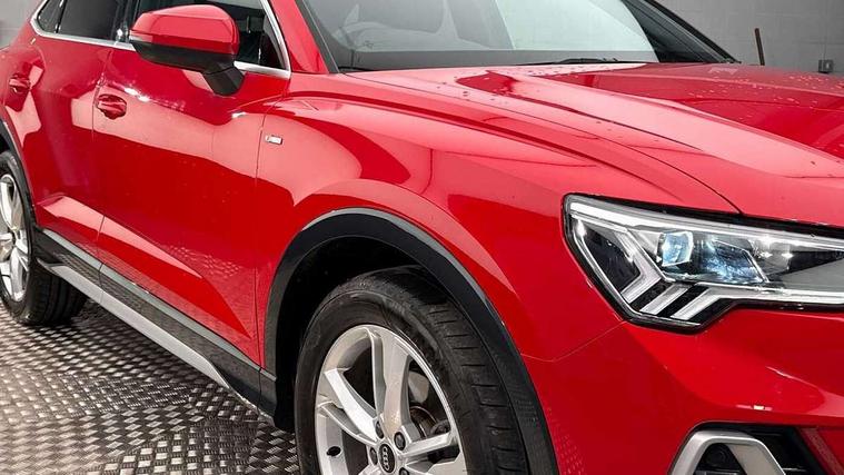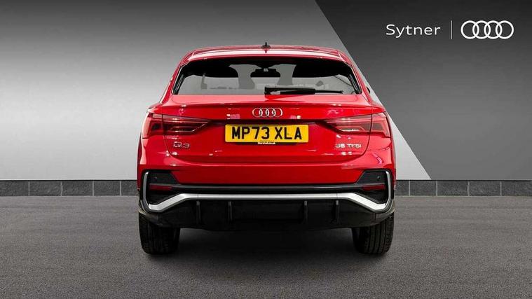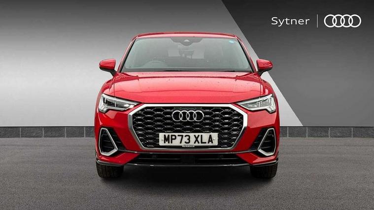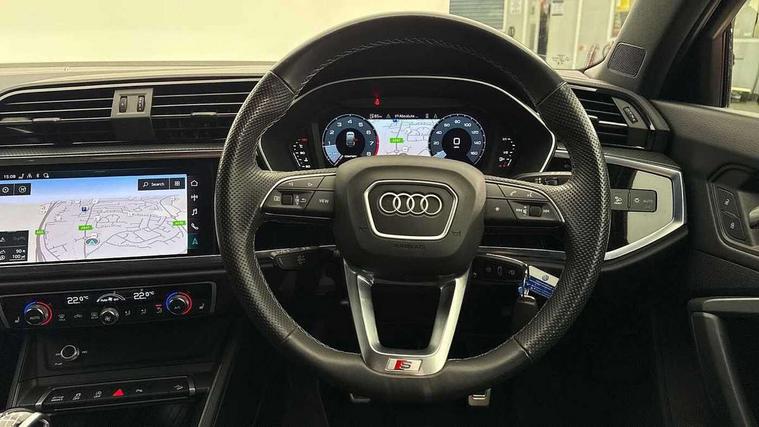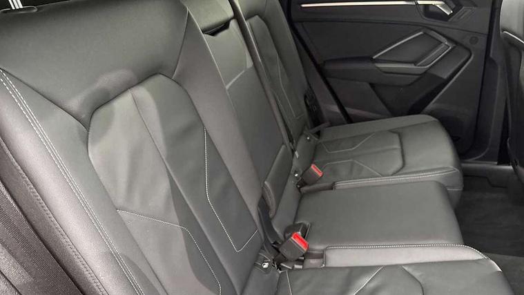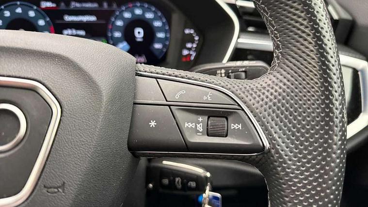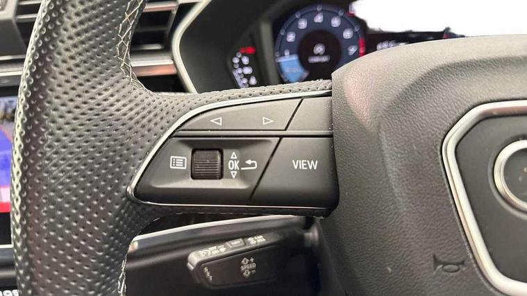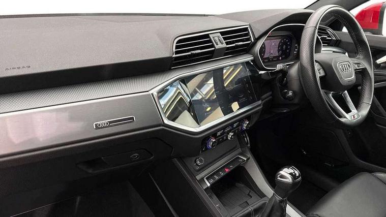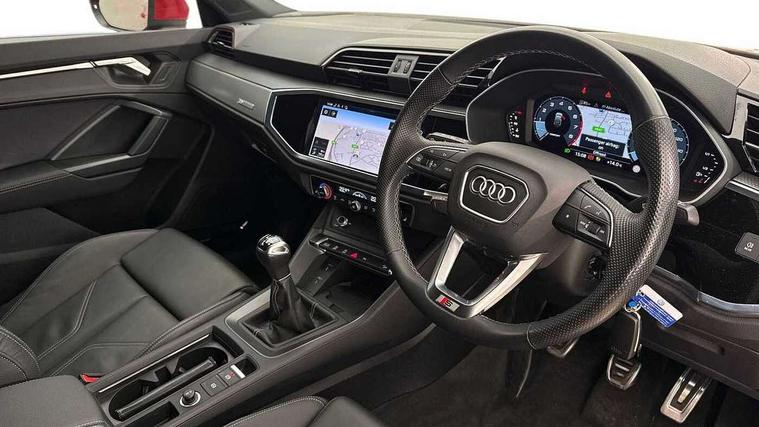 Audi drive select, Audi lane departure warning, Audi Virtual Cockpit - 10.25" display, Bluetooth interface, Camera based traffic sign recognition, Cruise control + speed limiter, Legal emergency call, MMI Navigation Plus with high resolution 10.1 inch touchscreen colour display, Power operated tailgate, Progressive steering, Rear parking sensors, Service interval indicator, Smartphone interface includes wireless Apple carplay/Android Auto, Start stop system with recuperation, Voice control system with natural language interaction, Sports suspension, 2 USB-C ports with charge and data functions, 6 passive loudspeakers, DAB digital radio module, Acoustic windscreen, Aluminium window trim, Auto dimming frameless rear view mirror, Diffuser grille in grained matt black, Diffuser trim in selenite silver, Electrically folding, adjustable and heated door mirrors with integrated LED side indicators and kerb view function for passenger side, Front and rear electric windows, Front fog lights, Front side air inlets in selenite silver, Front underbody protection in manhattan grey paint finish, Grille surround in aluminium silver matt, High gloss black finish B and C pillars, LED Dynamic rear indicators, LED headlights with LED daytime running lights, LED rear lights, LED third brake light, Privacy glass dark tinted rear and rear-side windows (from B-pillar backwards), Radiator grille in anthracite black with inlay in matt aluminium silver, Rain and light sensors, Rear side wing doors, Rear underbody protection in matt black, Rear wiper, S line badges on front wings, S line front and rear bumpers and side skirts in contrasting Manhattan grey paint finish, Side skirt insert in matt Platinium grey, Variable front intermittent wipers, 12V socket in rear centre console, 3 seat bench in 2nd row, 3 spoke leather multifunction steering wheel features S badging and grips in perforated leather with contrast stitching, 40:20:40 folding with manual adjustment for 60:40 forwards/backwards position and backrest angle, Adjustable rear seat bench/backrest with centre armrest and cupholder, Black cloth headlining, Dual zone electronic climate control, Front and rear black floor mats with contrast stitching, Front and rear headrests, Front and rear roof module including reading lights, Front centre armrest, Glove compartment lighting, Height and reach adjustable steering wheel, Illuminated door sill trims with S logo, ISOFIX child seat mounting for front passenger with airbag deactivation and outer rear seat including top tether attachment point for outer rear seats, Luggage compartment light right in white, Luggage compartment sill protection in stainless steel, Manual front seats with height adjustment, Perforated leather gearknob, Single front passenger seat, Stainless steel pedals, Ambient lighting pack - Q3, Non smoking pack - Q3, 3x3 point rear seatbelts, 6 airbags - Driver, front passenger, curtain and side windows, Audi pre-sense front with pedestrain and cyclist recognition, Electrically operated child locks on rear doors, Electromechanical parking brake, Electronic stabilisation control including ABS, ASR and EDL, Front seatbelt reminder, Hill descent control, Hill hold assist, Pre sense basic, Seatbelt monitoring, Tyre pressure warning, Warning triangle and first aid kit, Anti theft alarm, Anti theft wheel bolts, Immobiliser, Remote central locking, Aluminium look interior elements, Black dashboard, Dark matt brushed aluminium inlay, Detail dashboard around MMI touch colour display in glass look, black with surround in aluminium look, Leatherette door armrest,