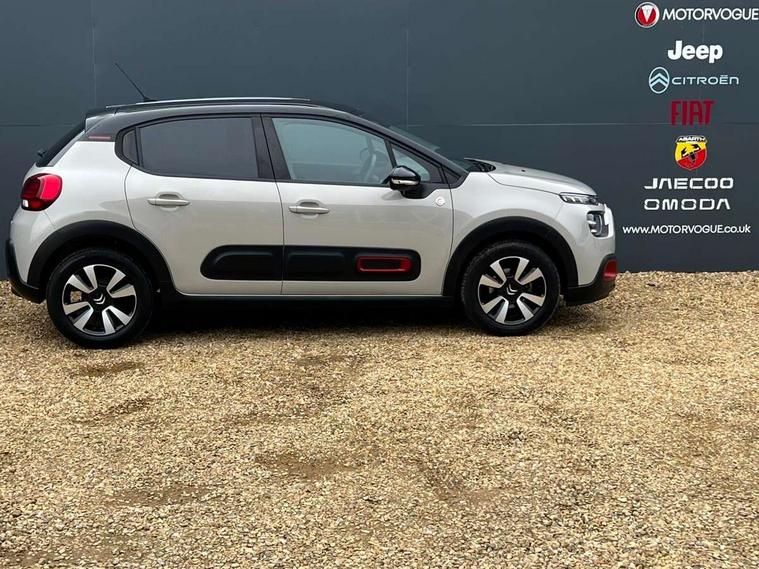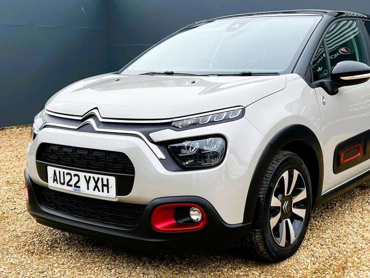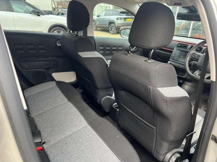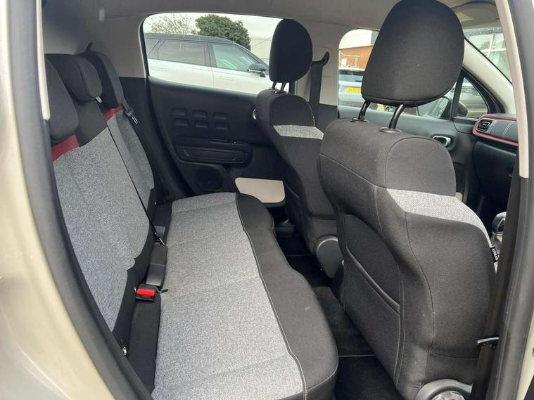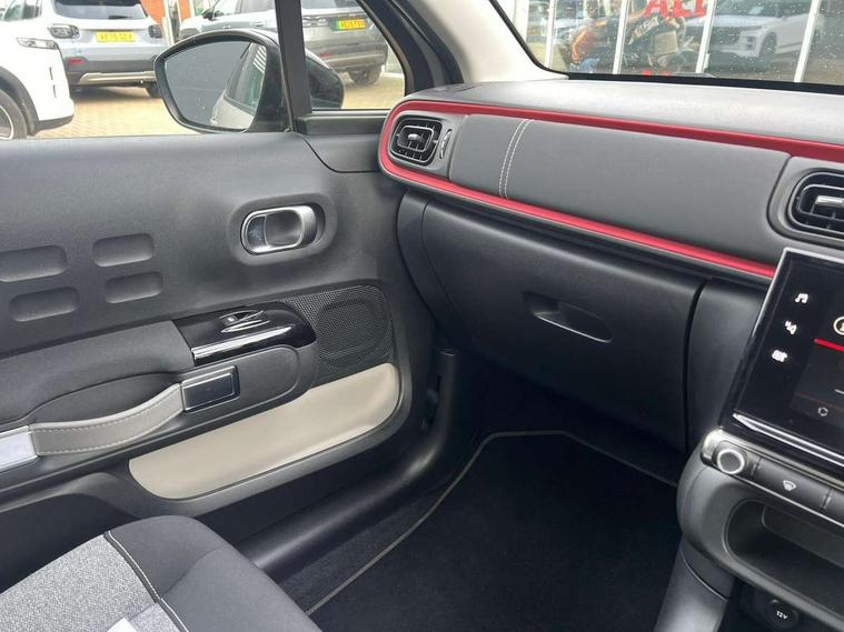 Coffee Break Alert, Cruise control + speed limiter, eCall emergency call system, Exterior temperature display, Instrument cluster with white LCD and analogue gauges, Multi function trip computer, Variable assistance power steering, USB connection, 3D rear light signature, Airbump on side door panel, Auto headlights, Automatic activation of hazard warning lights, Body colour bumpers, Body colour door handles, Chrome decoration on front face, under chevrons and around daytime running lights, Citroen illuminated signature in LED headlights and LED daytime running lights, Dark tinted tailgate and rear side windows, Electric folding and heated door mirrors, Fog lights integrated into front bumper, Front sequential electric windows with one-touch open/close and anti-pinch system, LED Headlights, LED third brake light, Matt black finish B pillar, Perla nera black rear view mirror caps, Rear sequential electric windows with one-touch open/close and anti-pinch system, Rear side wing doors, Rear windscreen wiper with intermittent mode linked to vehicle speed, Standard day night switchable interior rear view mirror, Variable front intermittent wipers, 1/3 to 2/3 split folding rear seat, 12V socket, 3 seat bench in 2nd row, Automatic air conditioning, Boot light, C-SERIES carpet mats, C-SERIES interior ambience, Driver and passenger's sun visor with courtesy mirror, Driver's seat height adjustment, Front lighting panel, Front seats adjustable with forward back slide and adjustable backrest, Height adjustable front head restraints, Height/reach adjust steering wheel, ISOFIX mounting on outer rear seats with top tether and labels indicating fixing points, Mica cloth upholstery, Parcel shelf, Seatbelt unfastened on the move audible and visual alert for front and rear seats, Single front passenger seat, Soft touch gear lever with leather effect gaiter, Steering wheel with satin chrome elements and audio/telephone controls, Three rear headrests, Upholstered armrest in front and rear doors, Anodised Deep Red colour pack - C3, C-SERIES style pack - C3, Safety pack 1 - C3, Visibility pack with automatic lights - C3, ABS with Electronic brakeforce distribution and Emergency braking assistance, Driver and front passenger seatbelts with pyrotechnic pretensioners and force limiters, Driver's airbag, Electric child locks, ESP with anti skid system, Front passenger airbag, Front passenger airbag deactivation, Front side airbags + front/rear curtain airbags, Hill start assist, Manual parking brake with chrome finish button, Mono-tone horn, Outer rear seats with pretensioners and force limiters, Three rear 3-point seatbelts, Tyre pressure monitoring system, Anti theft alarm, Automatic door and boot locking when moving off with automatic unlocking in case of impact, Central locking with locked indicator and interior one touch lock button, Immobiliser, Remote control central locking with two plip keys, Gloss black dashboard finish with grey surround, 16" Matrix diamond cut alloy wheels, Tyre puncture repair kit,