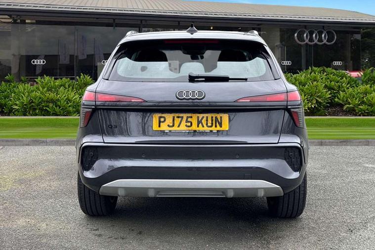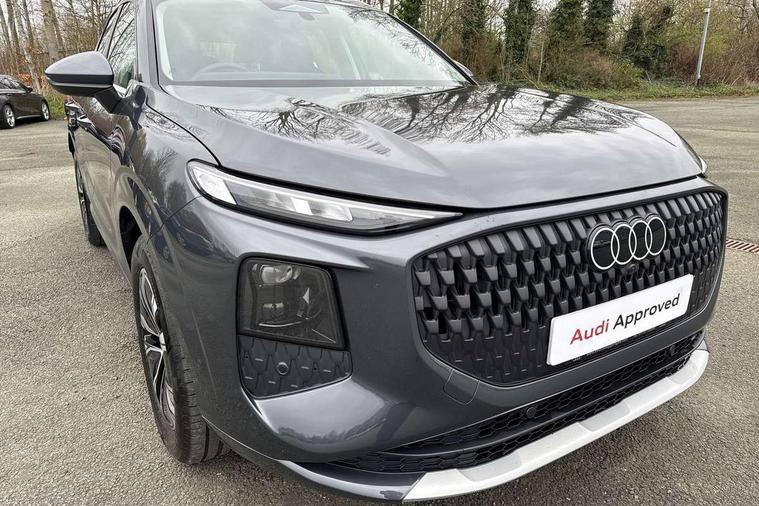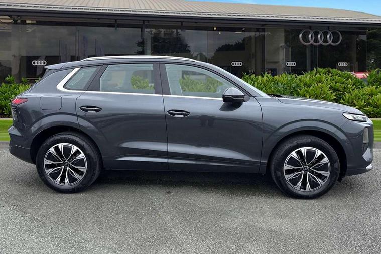 Adaptive cruise control, Audi connect emergency call and service, Audi connect remote and controls, Audi drive select (Balanced/Individual, effeciency, comfort and dynamic), Audi virtual cockpit plus - 11.9" display, Bluetooth interface, Camera based traffic sign recognition, Driver attention and fatigue monitor with driver monitoring, Electromechanical power steering, Front cross traffic assist, Lane departure warning with emergency assist, Panoramic curved display with 12.8" MMI navigation plus and MMI touch, Park assist plus with parking system and 360 display, Phonebox light with wireless charging, Reversing camera, Smartphone interface includes wireless Apple carplay/Android Auto, Start/stop system, Swerve assist and turn assist, Traffic sign based speed limiter, Voice control system with natural language interaction, Comfort suspension, Petrol Particulate Filter, 2 USB-C ports with charge and data functions, Audi sound system with 10 loudspeakers, subwoofer, 8 channel amplifier with 260 watts, DAB digital radio module, Acoustic glass for front door windows, Acoustic windscreen, Aluminium roof rails, Aluminium window trim, Audi Q3 lettering on the B-pillars, Auto dimming door mirrors, Auto dimming rear view mirror, Body colour door mirrors, Contrasting finish in volcano grey, Electrically folding, adjustable and heated door mirrors with integrated LED side indicators and kerb view function for passenger side, LED daytime running lights, LED Headlights, LED rear lights, LED third brake light, Loading sill protector in stainless steel, Main beam assist, Projection light in the exterior mirrors - Projects a graphic element onto the ground, Q3 badging on the rear, Rain and light sensors, Rear side wing doors, Rear window, rear door windows and rear side windows in clear glass, Rear wiper, Sports bumpers, 2 spoke multi-function leather steering wheel with paddle shift, 3 seat bench in 2nd row, 3-zone deluxe automatic air conditioning, 4 way lumbar support for the front seats - electric with horizontal and vertical adjustment in four directions, Door sill trims with aluminium inlay, Front and rear floor mats, Front and rear headrests, Front centre armrest, Heated front seats, Height and reach adjustable steering wheel, Impressum cloth upholstery + front sports seats, Interior elements in cloth, Interior storage compartment, Luggage compartment lid, electrically opening and closing, Manual front seats with height adjustment, Rear seat bench plus with split folded 40:20:40, Single front passenger seat, Steering wheel operating unit in matt black, Storage compartment in front centre console, Ambient lighting package plus - Q3, 3x3 point rear seatbelts, Convenience key with safelock, Driver and front passenger airbag with passenger airbag deactivation, Electromechanical parking brake, Electronic stabilisation control including ABS, ASR and EDL, First aid kit with warning triangle and high visibility vests, Front emergency brake assist, Hill hold assist, i - Size child seat mounting on the front passenger side and i - Size and top tether on the outer rear seats, Power operated child locks, Seatbelt monitoring, Three point automatic belts with belt tensioner and height adjustment, Tyre pressure loss indicator, Anti theft wheel bolts, Remote central locking, Thatcham approved category 1 anti theft alarm, Interior trims in aluminium look, Matt cross brushed aluminium inlay, Tool kit and Jack,
