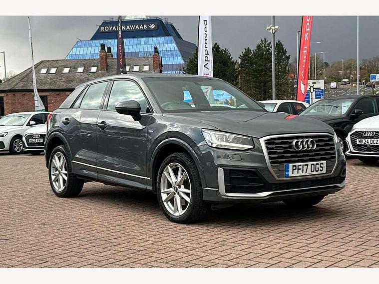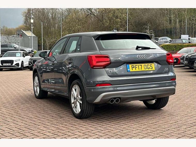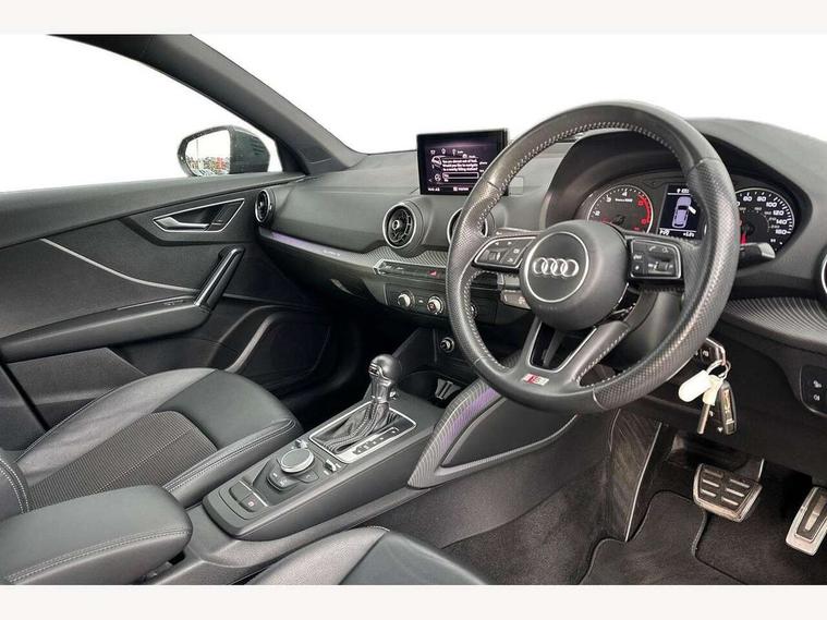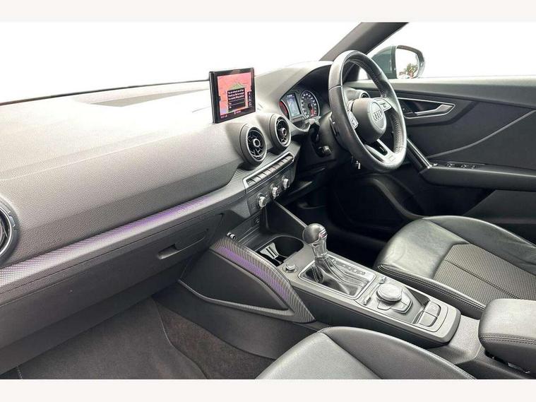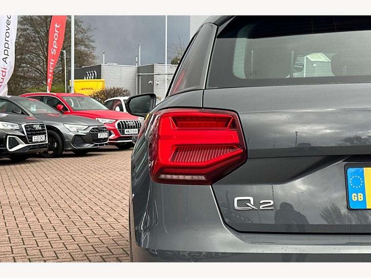 Audi drive select, Audi smartphone interface, Bluetooth hands free telephone connection, MMI - Multi Media Interface control system, PAS, Service interval indicator, Voice control system, Audi music interface, Aux input, CD player, DAB digital radio module, MMI radio plus with 7" colour MMI screen and MMI controller, USB port, Body colour door mirrors, Chrome exhaust tailpipe, Door mirror integrated indicators, Electrically adjustable and heated door mirrors, Front and rear electric windows, Headlight washers, LED headlights with LED rear lights + dynamic rear indicators, Rear wiper, S Line body styling, Sunband for windscreen, Aluminium door sill trims, Black cloth headlining, Centre console with storage/cupholders, Floor mats with contrast stitching, Front and rear door pockets, Front and rear headrests, Front centre armrest, Front sports seats, Glovebox, Height adjustable front seats, Height/reach adjust steering wheel, Illuminated door sills, ISOFIX on front passenger and rear outer seats, Stainless steel pedals, Storage compartment in rear centre console, Full body colour bumper pack - Q2, 3x3 point rear seatbelts, ABS+Electronic Brake force Distribution, Curtain airbags, Driver and passenger airbags, Driver and passenger side airbags, EDL + ASR, Electrically operated child locks on rear doors, Electromechanical parking brake, ESP, Multi-Collision braking, Pre-sense front with pedestrian recognition, Seatbelt warning light, Tyre pressure monitoring system, Warning triangle and first aid kit, Locking wheel bolts, Remote central locking, Thatcham category 1 alarm + immobiliser, Aluminium interior trim, Matt brushed aluminium fascia and door trim inlays,