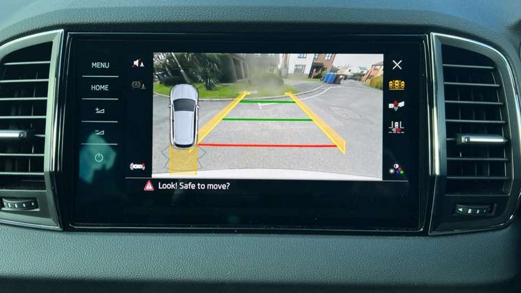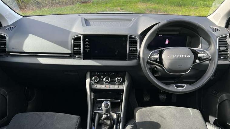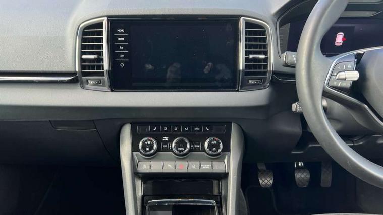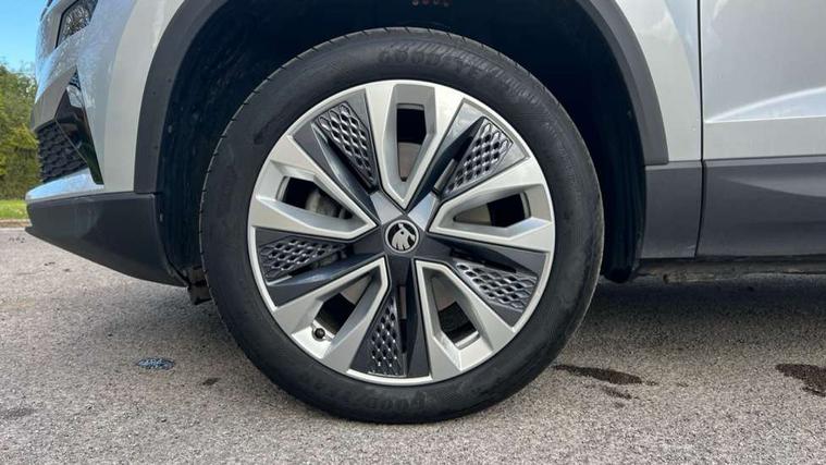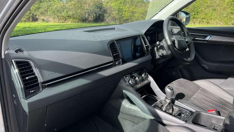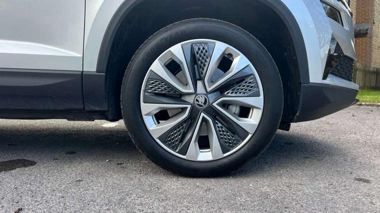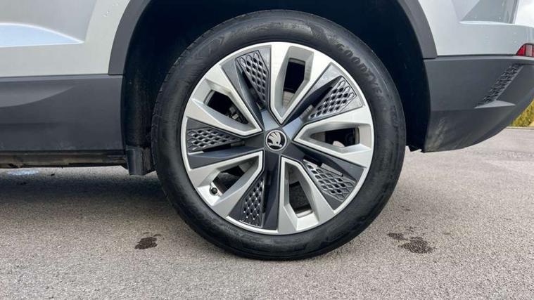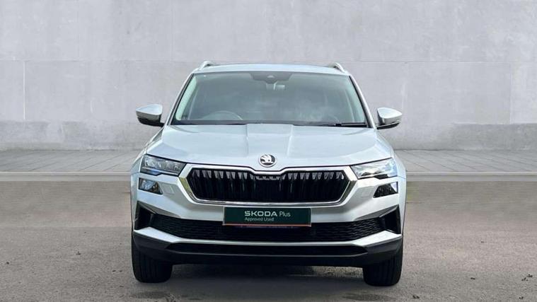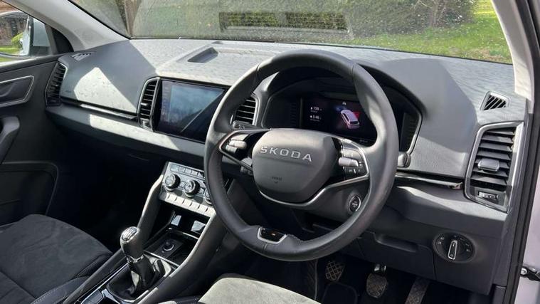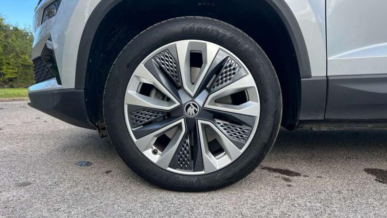 Advanced driver attention and drowsiness monitor, Drive Mode Selection including ECO function, Electro-mechanical PAS, Emergency services call system, Outside temperature gauge, Sensor for driver assistance systems, Service interval indicator, SmartLink wireless for Apple and wired for Android, Start/stop system with regenerative braking, Traffic sign recognition, USB C Port x 2 in front centre console, Virtual Cockpit - 10.25" digital display, Virtual pedal with electrically operated boot door, Wireless smartphone charging, DAB radio with Bluetooth, USB connection, Acoustic glass, Aero front windscreen wipers with intermittent function, Auto dimming rear view mirror with light and rain sensors, Black electric window control buttons, Body colour door mirrors and handles, Electric front and rear windows with child proof lock, Extended rear roof spoiler, Heated rear windscreen, LED daytime running lights, LED rear lights with high functionality welcome effect and dynamic indicators, Light assistant (coming/leaving home/tunnel light), Plastic scuff plates in door apertures, Privacy glass, Rear side wing doors, Rear window wiper with washer system and intermittent control, Safety reflectors on front doors, Third brake light, Unique dark chrome design logo on alloy wheels, 1.5 litre bottle holders in driver and front passenger door panels, 12V socket in boot, 12v socket in front centre armrest with storage compartment and rear air vents, 2 spoke leather heated multifunction steering wheel, 2 x Tablet holder, 3 rear height adjustable headrests, 3 seat bench in 2nd row, 4 foldable roof handles with rear coat hooks, Black floor carpet, Cargo elements in boot, Chrome inner door handles, Decorative door sills with KAROQ badging, Foldable hooks in the boot, Front head restraints, Height adjustable front three point seats belts with tensioners, Height/reach adjust steering wheel, Ice scraper, Illuminated glovebox, Illuminated luggage compartment, Interior noise suppression, Isofix child seat preparation for front passenger seat, Isofix child seat preparation outer rear, Manual lumbar support for front seats, Pearl grey interior ceiling, Pen holder, Pollen filter, Rear boot cover, Rear package tray, Rear reading lights, Rubbish bin door, Safety vest holder, Single front passenger seat, Skoda lettering on steering wheel, Storage box in upper central dashboard closed, Sunvisors with illuminated vanity mirrors, Textile floor mats, Ticket holder, Columbus pack - Karoq, Design Pack - Karoq, Non Smokers pack, Parking pack - Karoq, Automatic door unlocking in case of crash, Automatic fuel cut off in case of crash, Driver airbag, Electronic parking brake with auto hold function, Emergency rear braking signal, ESC (incl. ABS+MSR+ASR+EDS+HBA+DSR+RBS+MKB), Front side airbags, Head airbags, Hill hold control, Knee airbags, Passenger airbag with switch-off function, Pedestrian monitor, Power operated child safety locks, Seatbelt reminder signalisation and pretensioner for all seats, Three point seatbelts rear, Two tone horn, Tyre pressure monitor, Alarm with interior monitoring, back up horn and tilt sensor with safe function, Electronic engine immobiliser, Keyless entry and start/stop, Remote central locking with 2 remote folding keys, Black centre console, Chrome framed air vents, Satin black dashboard, Anti-theft wheel bolts protection, Breakdown and tool kit,