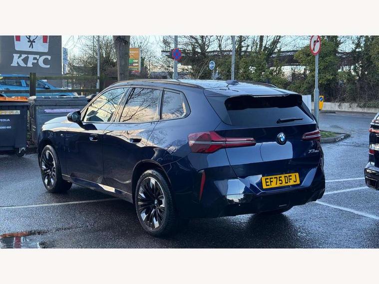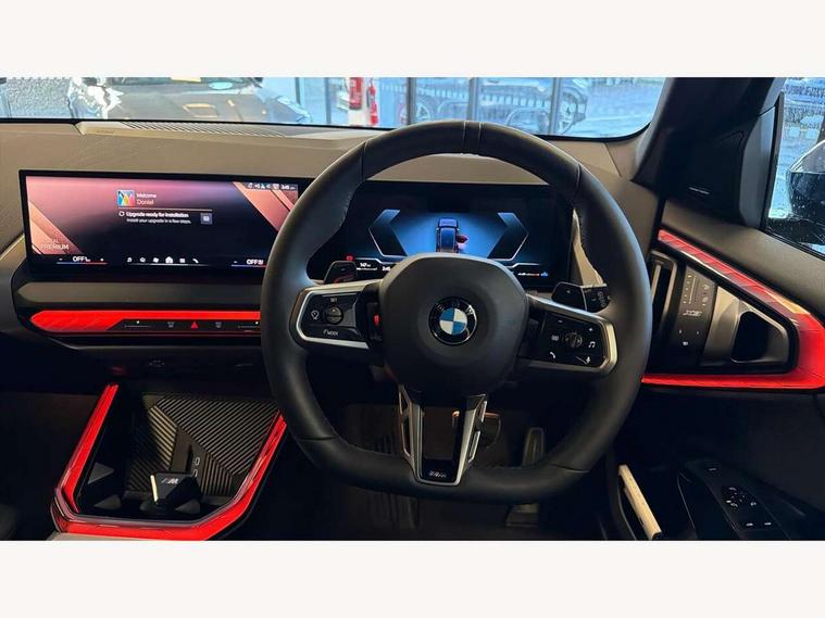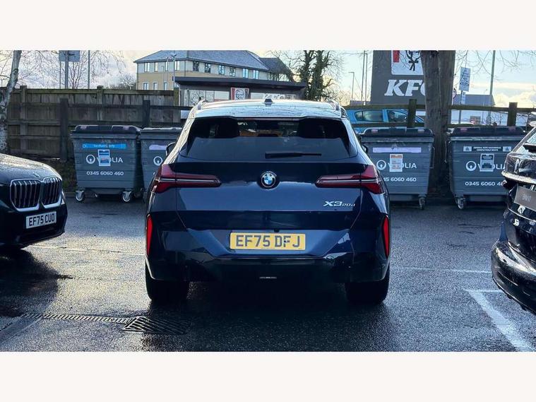 Active guard professional, Attentiveness assist, Automatic operation of tailgate, BMW ConnectedDrive online services, BMW iDrive, BMW Live cockpit plus, BMW Online services, BMW Teleservices, Brake pad wear indicator, Condition based service, Drive off assistant, Flat tyre monitor, Language version English, My Mode - Personal, Efficient, Sport, Relax, Expressive, Parking assistant, Reversing assist camera, Servotronic system, Variable sport steering, Dynamic stability control, Multiple control arm rear axle, Steptronic transmission with gearshift paddles, Two-joint strut-type front axle with tension strut, DAB tuner, Personal eSim, 4 tailpipe tips, B-pillar trim panel in black high-gloss, BMW badge on front and rear, BMW M-specific front/rear bumpers and side sills, BMW M-specific radiator grille with horizontal bars in Dark Silver and M logo, Body colour mirror caps, Daytime running lights, Door handles flush to the surface with lock barrel on driver's side is illuminated and in vehicle colour, Dynamic brake lights, Electric adjustable and heated door mirrors, Electric window trap release and convenient opening/closing feature, Headlight beam throw control, Heated rear window, Heated windscreen washer jets, High beam assistant, LED 3rd brake light, LED rear lights, LED tail lights, LED turning indicators, Locking of the doors, M high-gloss shadowline, M-specific Exterior mirrors, Mirror base and mirror blade in satinised aluminium, Mirror triangle in black high-gloss, Rain sensor with automatic headlight activation, Rear side wing doors, Rear wiper, Reversing light, Side window frame in black high-gloss, Windscreen wipers, 12v power socket in front centre console and luggage compartment, 2 x USB Type C ports for charging and data transmission (front centre console) and 2 x USB Type C ports for charging (rear centre console), 3 rear headrests, 3 seat bench in 2nd row, 3 zone automatic air conditioning, 40:20:40 split folding rear seat with loading system, Ambient lighting, Anthracite headlining, Electric adjustable seats with memory function, Floor mats in velour, Footrest and pedals in black plastic, Four grab handles integrated in roof lining, Front armrest with integrated control panel, Front centre console trim in black high-gloss, Front head restraints, Front passenger seat, Front sports seats, Glove compartment, i-Size / ISOFIX attachment points on both outer rear seats, with covers in black, Interior door handles in dark chrome, Luggage compartment separating net, M sport leather steering wheel, Multifunction steering wheel, Rear side armrests integrated into door trim, Selector lever with toggle operation, Steering column adjustment, Sun visors with illuminated vanity mirrors, Three upper retaining strap clips integrated into the rear panels of the seat backrests, Through loading system, Two front cupholders and two in the rear center armrest, Wireless charging tray, Connected pro package - X3, Driving assistant package - X3, Driving assistant plus pack - X3, Interior and exterior mirror package - X3, 3 point seatbelts, Airbag deployment is controlled with respect to the intensity and scope, Anti-lock braking system (ABS), Automatic hold function, BMW emergency call, Brake assist, Brake drying, Brake energy regeneration, Braking readiness, Central airbag, Child locks on rear doors, Cornering brake control (CBC), Crash Sensor - activation of central locking release, hazard warning light and interior lighting, Driver and front passenger front and side airbags, Dynamic brake control, Electromechanical parking brake, Front and rear disc brakes, Head airbags, Integrated braking system, Post Crash Collision Warning with braking function, Trailer stability control, Tyre pressure sensor, Warning triangle, Alarm system, Closing system with central locking, Comfort access system with BMW digital key plus, Locking wheel bolts, Start/stop button with keyless motor start with acoustic drive, Tyre repair kit plus,