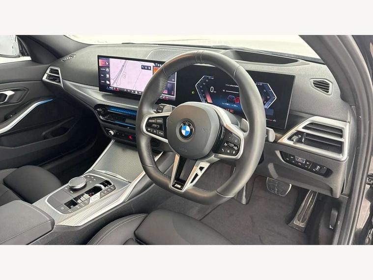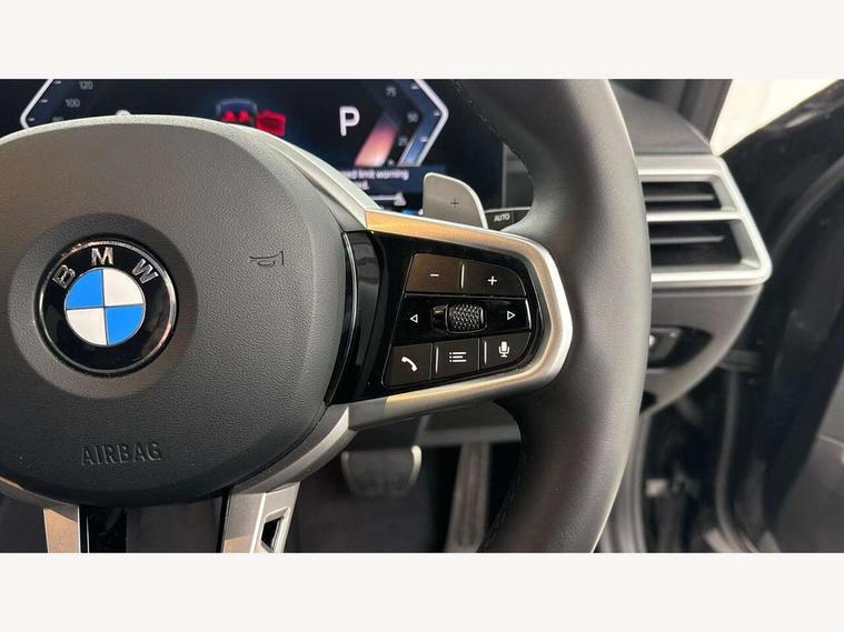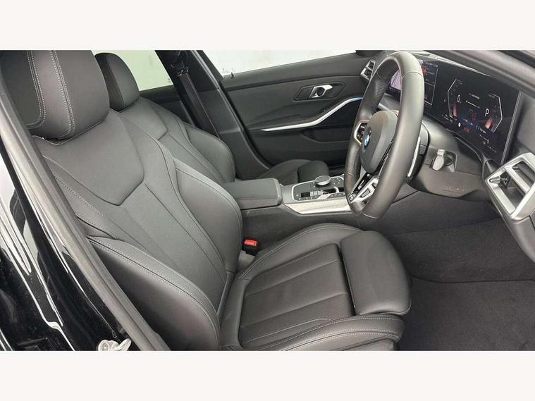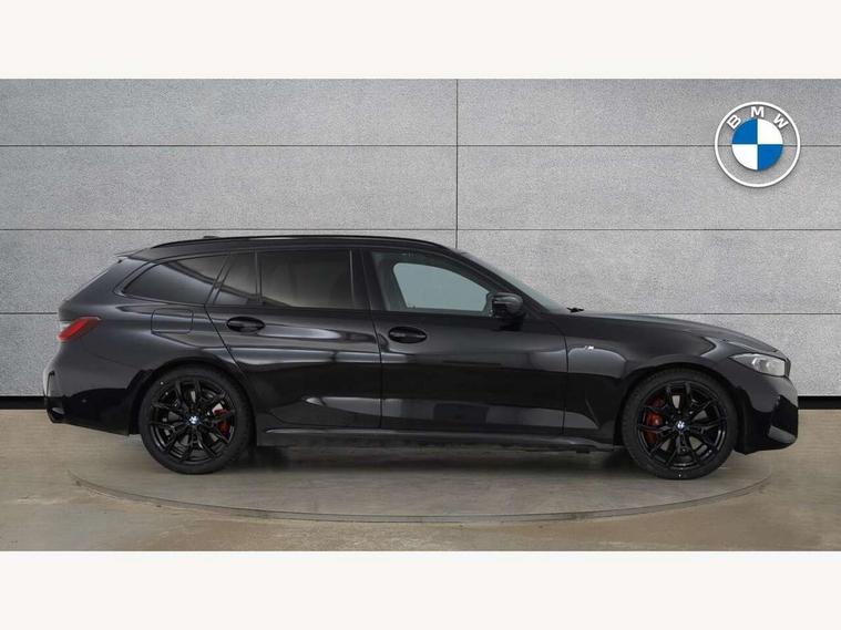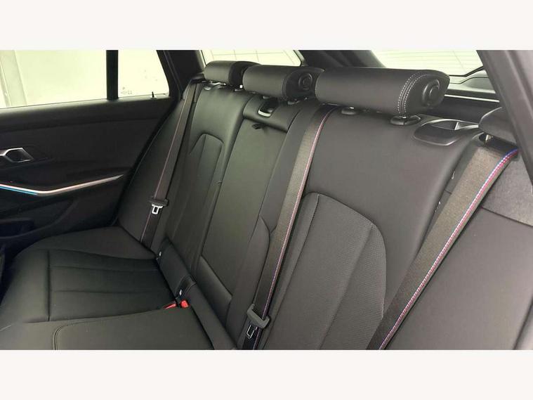 Active guard plus, Attentiveness assist, Automatic Start/stop button, Bluetooth Wi-Fi interface, BMW iDrive, BMW Teleservices, ConnectedDrive Services - last state call, Electric bootlid, Live cockpit plus with Navigation + 12.3" instrument display + 14.9" display, Intelligent voice assist, 2 USB, 4G LTE connect, Oil sensor for level and grade, Personal e-SIM, Shifting point display, Variable sport steering, Double joint spring strut front axle, Electronic differential lock control (EDLC), Fuel tank breather system, Steptronic Sport automatic transmission with steering wheel mounted gearshift paddles launch control and xtreme drive lever control, DAB tuner, 3rd brake light, Auto dimming rear view mirror, Automatic headlight beam throw control with load dependent regulating reaction, dynamic compensation of braking dive and acceleration squat, Bi-LED Low and high beam headlights, BMW emblem, engine compartment lid and tailgate, Body colour roof fin, Door sill strips, Electric windows - front and rear, with open/close fingertip control, anti-trap facility and comfort closing, Fading support, Folding wing mirror with auto dimming, Follow me home headlight function, Front and rear bumper system with replaceable deformation elements, Front apron plastic in body colour, Fuel filler flap - right rear in body colour, Heat protection glazing on front windows and windscreen, Heated washer jets, High gloss chrome kidney frame with high gloss black kidney struts, High gloss shadow line roof rails, LED daytime running lights, LED rear lights, LED turn indicator, Licence plate panel integrated into front bumper and tailgate, M high gloss shadow line exterior trim, Matt black B-pillar finsher, Matt black window recess cover, Model designation on right side of tailgate, One piece front bumper cover including towing eye cover in body colour, Rain sensor with automatic headlight activation, Rear side wing doors, Rear wiper, Reversing lights, Side frame decorative moulding black matt, Trailer stabilisation logic, Visible exhaust tailpipe finisher, Welcome lights in interior and door handle area, 12V power socket in front storage compartment, 2 front cupholder in centre console with clamping elements and matt black inlay, 3 seat bench in 2nd row, 3 spoke M Sport multifunction flat bottom leather steering wheel, 3 zone automatic air conditioning, 40:20:40 split folding rear seat with loading system, Anthracite headlining, Armrest integrated in front and rear door trim + front centre console armrest, BMW ID, Cruise control operation in steering wheel, Driving experience mode switch, Folding rear centre armrest with 2 cupholders, Front and rear headrests, Front and rear velour floor mats, Front reading light, Heated front seats, Height adjustable mechanically and infinitely variable steering column, Illuminated armrest storage compartment, Illuminated glove compartment, Illuminated luggage compartment, Lashing eyelets in luggage compartment, Single front passenger seat, Sunvisors with illuminated vanity mirrors and ticket pocket, Toolkit located in luggage compartment, Connected pack professional - 3 Series Saloon/Touring, Interior and exterior mirror pack - 3 Series Touring/Saloon, M sport exterior styling pack - 3 Series Saloon/Touring, Parking assistant pack - 3 Series, 3x3 point rear seatbelts, BMW emergency call, Child locks on rear doors, Crash sensor activating of airbags, Unlocking doors, hazard warning lights, interior light, safety battery terminal, Drive-off assistant, Driver and front passenger with seat occupancy detection for driver's and passenger side, Driver and passenger side airbags, body protection at side and airbags deploy from seat backrests, Dry braking, Dynamic brake control, Dynamic stability control + (DSC+) - Anti-lock Braking System (ABS) with brake assist and cornering brake control + Automatic Stability Control (ASC), Dynamic Traction Control - DTC, Electric parking brake including automatic hold function and automatic release of the parking brake when driving off, Front airbag deactivation, Front airbags for driver and front passenger, Head airbags in 1st and 2nd row, head protection at side, curtain airbags open from headliner above 1st and 2nd row, Plastic fuel tank, Side impact protection, Tyre pressure sensors, Ventilated front and rear disc brakes, Warning triangle and first aid kit, Alarm system, Centre lock switch, Closing system with central locking, Electronic vehicle immobiliser, Locking wheel bolts, Tyre repair kit,