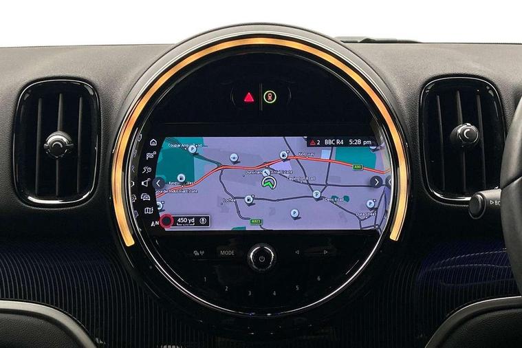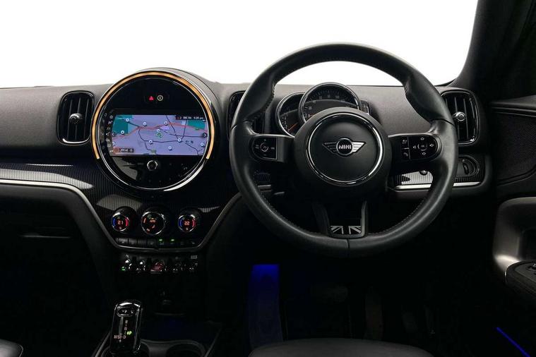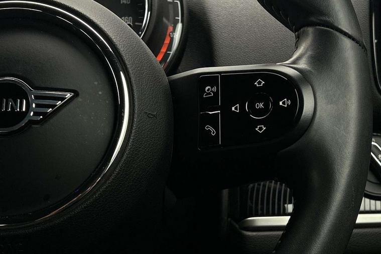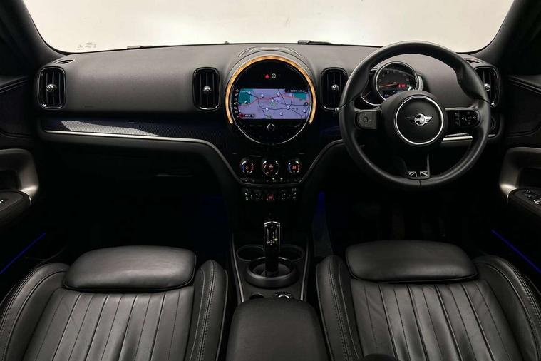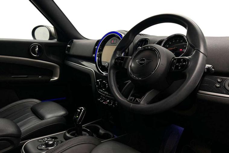 Active Guard incl speed limiting and lane departure functions with auto steering, and front collision warning with brake intervention, Automatic start/stop function with brake energy recuperation, Compatible mobile phone bluetooth with audio streaming, Cruise control with brake assist, Electro-mechanical speed dependant steering assistance, Instrument cluster, MINI Driving Modes - centre toggle switch to control driving setting (sport, mid and green), Mini E-call, On board computer, Rear parking distance control, 51 Litre fuel tank, Automatic transmission, Double Vanos system, Fully variable valve control, High precision injection, Performance Control, FM tuner and DAB digital radio, 3rd brake light, Body colour fuel filler cap, Day time driving lights, Door sill strips, Dynamic brake lights, Electric windows, Heated rear window, Heated windscreen washer jets, LED fog lights, LED Headlights, MINI yours exterior badge in C-Pillar, driver and passenger side, Model logo, Model logo on Tailgate, Rain sensor with auto headlights, Rear fog lights, Rear side wing doors, Rear window wiper, Side scuttle panel with integrated indicator, Split rear doors, Sun/heat protection glass, White indicator lenses, 12V socket in centre console, 3 seat bench in 2nd row, 360L luggage compartment capacity, 4 lashing eyes in luggage compartment, 40:20:40 split folding rear seats, Anthracite headlining with grab handles and clothes hooks, Chrome interior highlights, Colour line - Carbon black, Cupholders, English handbook, Front headrests, Glove compartment, Height and length steering column adjustment, Interior lighting with 12 basic colours selectable via toggle switch in roof, Isofix rear child seat preparation, Leather gearshift lever and handbrake gaiters, LED reading lights, vanity mirror lights, front foot well light and spotlight on front seats, Manual air conditioning, MINI Yours fine walk nappa leather steering wheel with contrast stitching in silver and MINI Yours badge, MINI Yours floor mats, Multifunction steering wheel, Rear headrests, Single front passenger seat, Storage compartments in doors, Sunvisors with vanity mirrors, Excitement pack - Countryman, Navigation pack - Countryman, 2 tone horn, 3 point seatbelts on all seats, 6 Airbags - front, side, head and seat belt tensioners, Anti-lock braking system (ABS), DSC - Dynamic Stability Control, Electronic handbrake, Front and rear disc brakes, Hill start assist, Manual rear child locks, Tyre pressure monitoring system, Alarm system with tilt sensor, monitoring doors, bonnet interior and tailgate, Auto drive away locking, Deadlocking function, Electronic vehicle immobiliser, Locking wheel bolts, Start/stop toggle with keyless go, Tool kit,