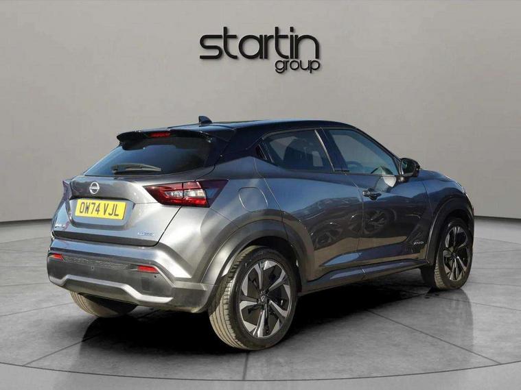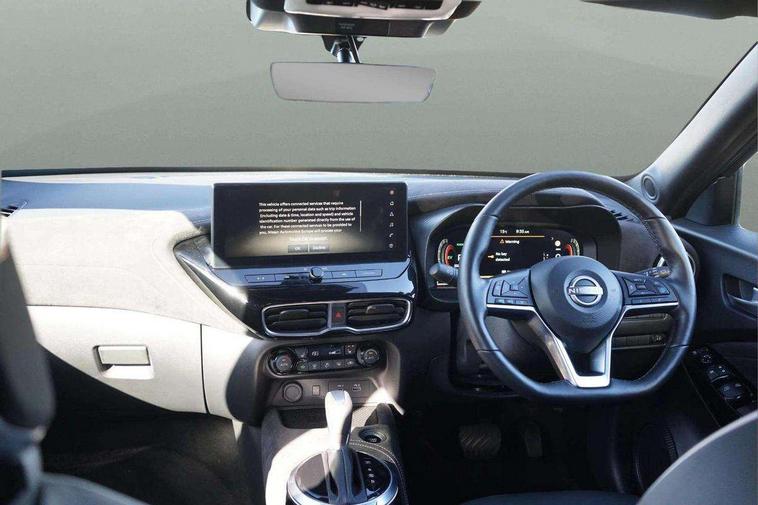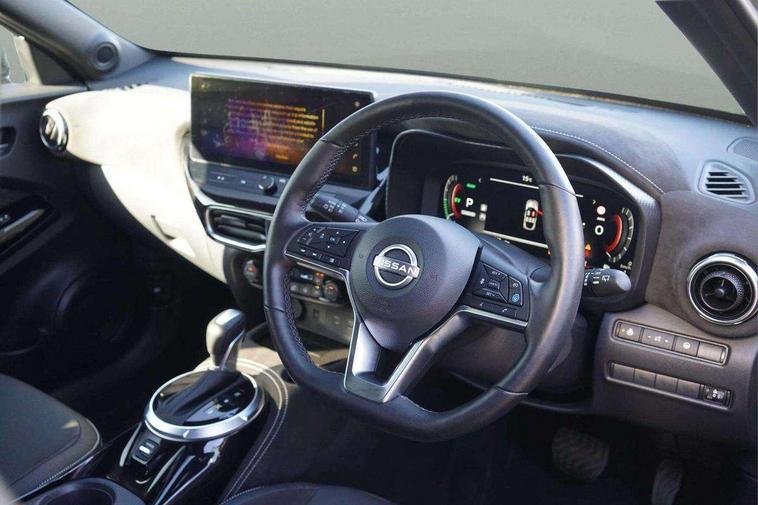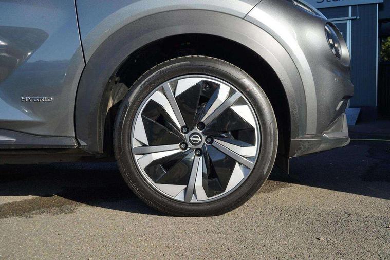 12.3" full colour TFT screen combimeter, Drive modes select (Eco, normal and sport), e-Pedal step, Emergency and breakdown call, EV mode switch, Front parking sensor, Intelligent driver alert system, Intelligent lane intervention, Lane departure warning system, Nissan connect 12.3" touch screen entertainment system, Nissan connect nav with TomTom traffic, Nissan connect services, Outside temperature sensor, Power Steering, Rear parking sensor, Stop/start button, Traffic sign recognition, Trip computer, Voice recognition, WiFi connectivity, Wireless Apple CarPlay and Google Android auto, Wireless Smartphone charger, 10 Bose speakers 6 speakers and 2 headrest speakers for driver/passenger seats, 2 X Rear console USB port, Bluetooth system, USB, Aux-in and 12V socket, Bose personal sound stage control, DAB Digital radio, Auto dimming frameless rear view mirror, Automatic hazard signal with emergency stop signal, Body colour door handles, Electrically adjustable door mirrors with integrated indicators, Follow me home headlights, Front and rear electric window with one touch driver window, Heated and auto folding door mirrors, High beam assist, LED 3rd brake light, LED daytime running lights, LED front fog lights, LED headlamps, LED rear fog lamp, LED rear lamps, One touch passenger window, Rain sensor windscreen wipers, Rear privacy glass, Rear side wing doors, Rear wiper, Roof spoiler, Shark fin roof antenna in solid Black, Three blink turn signal, 3 height adjustable rear headrests, 3 seat bench in 2nd row, 60/40 split folding rear seat, Automatic climate control, Card holder on driver sunvisor, Door ambient lighting, Driver seat back pocket, Driver side rear coat hanger, Driver/passenger sunvisors and vanity mirrors, Front and rear cabin lights, Front armrest, Front door pockets with bottle holders, Front head restraints, Front/rear passenger grab handles, Gear console ambient circle lighting, Height adjustable driver's seat, Internal chrome door handles, Leather gearshift knob, Luggage board, Luggage space lighting, Monoform sporty seats, Multifunction steering wheel, Passenger seat back pocket, Rear door bottle holders, Single front passenger seat, Smooth synthetic leather steering wheel, Synthetic leather kneepad, Telescopic steering wheel adjustment, Two cupholders in front centre console, Two rear isofix child seat anchorage points with top tether, Welcome light and console tray ambient lighting, Heat pack with height adjustable passenger seats - Juke, Interior personalisation pack - Juke, ProPilot pack - Juke Auto, Satin grey exterior personalisation pack - Juke, ABS with EBD and brake assist, Active ride control, Active Trace Control, Driver and passenger airbags, Driver and passenger side airbags, Electric handbrake with auto hold function, Electronic Stability Programme (ESP), Front and rear curtain airbags, Height adjustable seatbelts, Hill start assist, Intelligent emergency braking with pedestrian and cyclist recognition, Rear door child safety locks, Seatbelt reminder for driver/front passenger and rear seats, Three 3 point rear seatbelts, Traction control, Tyre pressure monitoring system, VDC Dynamic Vehicle Control, Alarm, Immobiliser, Intelligent key and start push button with walk away lock and approach unlock functions, Remote central locking, 19" Aero alloy wheels, Tyre puncture repair kit,