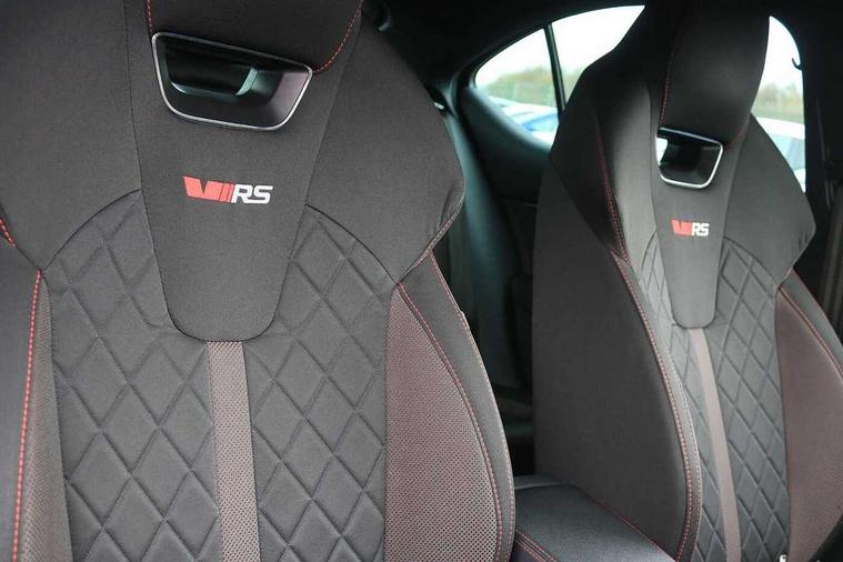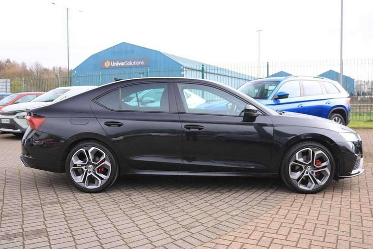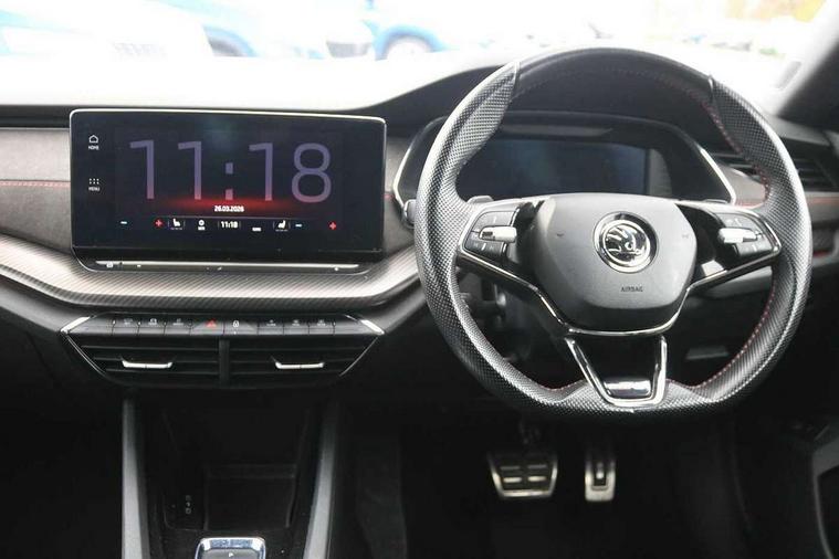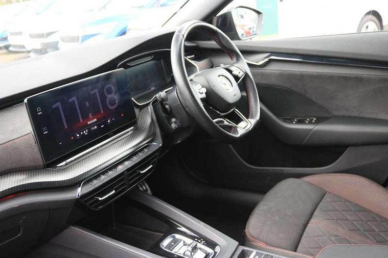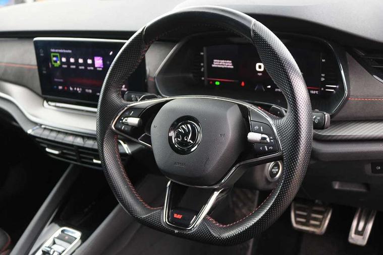 1x USB Type C port in rear view mirror (charging only), 2x USB Type C ports in rear of front centre armrest (charging only), Bluetooth system, Columbus satellite navigation with 10" touchscreen display, Driver fatigue sensor, eCall emergency system, Front and rear parking sensors with manoeuvre assist, Front assist system, Progressive dynamic steering, Smartlink (includes android auto and mirrorlink), Speed limiter, Turn Assist, Virtual Cockpit - 10.25" digital display, Voice control system, Wireless SmartLink for Apple Car Play, Front and rear stabilizers, 2x USB Type C ports (for charging and data transfer), 8 Speakers, DAB Digital radio, Aero front windscreen wipers with intermittent function, Auto dimming rear view mirror, Body colour door handles, Chrome exhaust tailpipes, Door sills with vRS logo, Electric front and rear windows, Exterior gloss black sports styling including front grille, side strip, window surrounds, door mirror and badging, Full LED Matrix headlights with AFS and cornering front fog lights, Headlight washers, Heated rear windscreen, High level third brake light, Ice scraper in fuel cap, LED daytime running lights, Rain and light sensors, Rear fog light on one side, Rear privacy glass, Rear side wing doors, vRS bumpers and lip spoiler, 3 rear headrests, 3 seat bench in 2nd row, 4 foldable roof handles, Aluminium pedals, Black headlining, Black microsuede padded dash panel with red contrast stitching, Chrome inner door handles, Front centre armrest, Front head restraints, Heated front seats, Illuminated glovebox, Leather trimmed gearshift lever, Luggage compartment lighting x1 light, Mechanical rear seat release, Parcel shelf - folding, Single front passenger seat, Sunglasses storage, Textile floor mat set, Three spoke leather sports multifunction steering wheel with paddles, Ticket holder, Umbrella in door panel, Unsplit rear bench seat and split folding backrest, LED interior light pack - Octavia, 3 point front/outer rear seatbelts+pre-tensioners, Alarm with interior monitoring, tilt sensor and back up horn, Automatic door unlocking in case of crash, Automatic fuel cut off in case of crash, Automatic warning lights in case of emergency braking, Curtain airbags and front side airbags, Driver and front passenger airbags, Drivers knee airbag, Electronic parking brake, Emergency call and proactive services, ESC including ABS, EBV, MSR, ASR, EDS, HBA, DSR, Front and rear disc brakes, Front central airbag, Hill hold control, Hill start assist, ISOFIX on front passenger seat and outer rear seats, Manual rear child locks, Passenger airbag deactivate switch, Red brake calipers, Two tone horn, Tyre pressure monitor, Visual and acoustic seat belt reminder, Warning reflectors in front door, Door locks with immobiliser, Keyless entry and start/stop including rear doors, Remote central locking, Carbon optic decorative inserts, Gloss black air vent surrounds, 19" Altair anthracite alloy wheels,