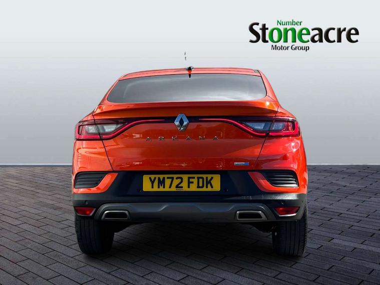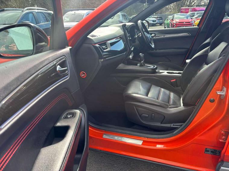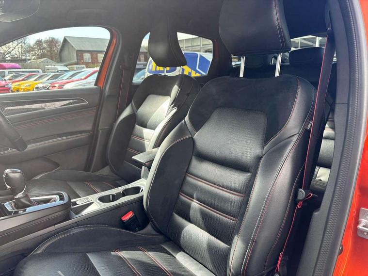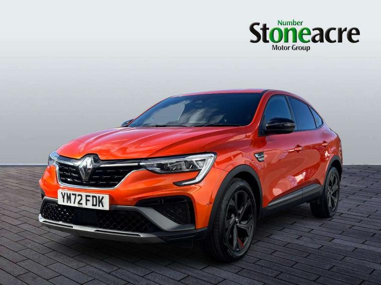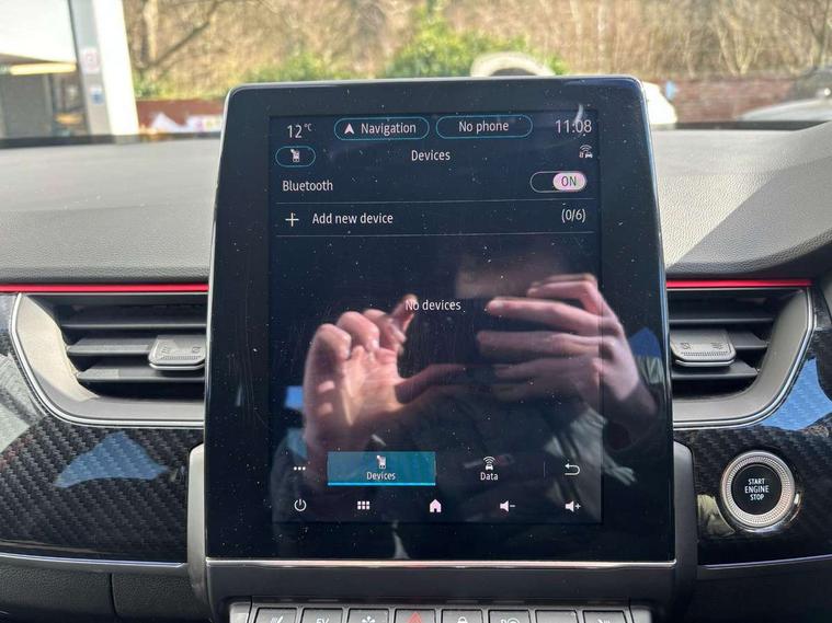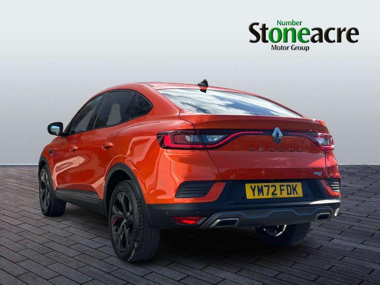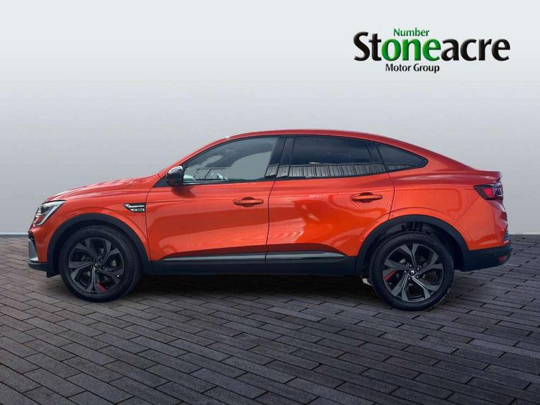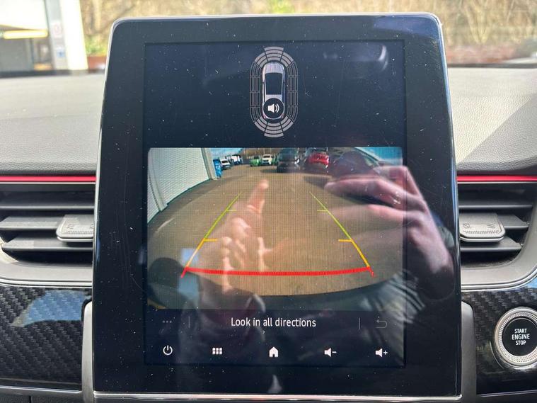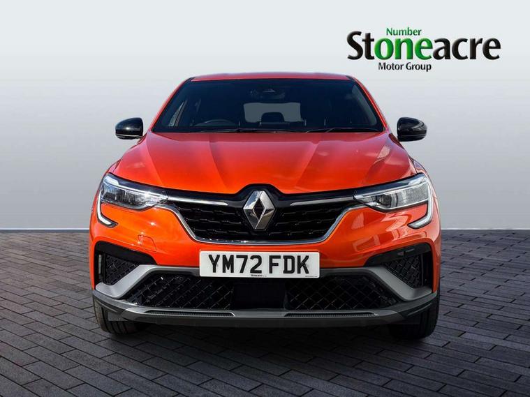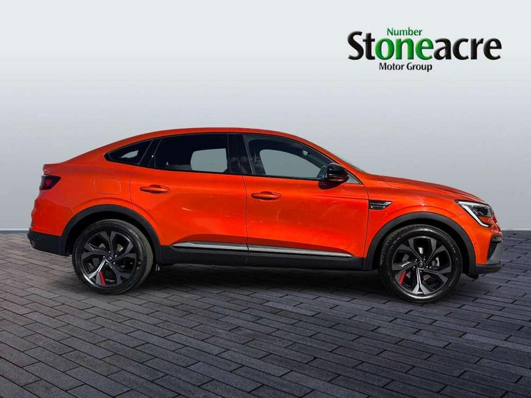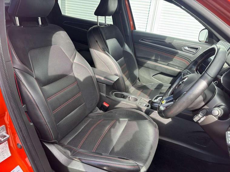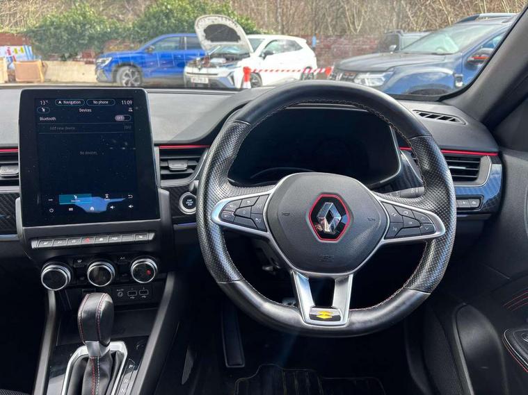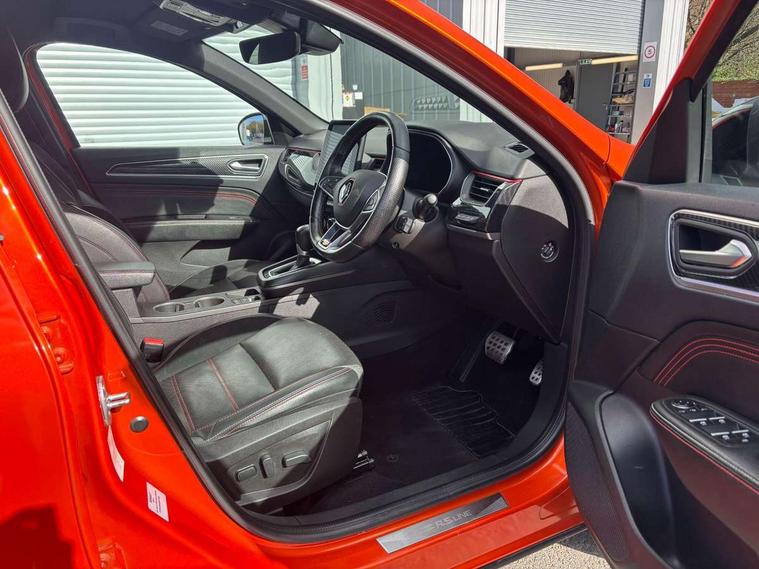 7" TFT Driver information display, Blind spot warning, Bluetooth system, EASY LINK 9.3" portrait touchscreen with navigation, Google search and traffic information, eCall emergency call system, Eco mode, EV button to activate pure mode, Front and rear parking sensors, Gear change indicator, Lane departure warning, Lane keep assist, Multi-sense - 3 driving modes and 8 ambient lighting, Rear cross traffic alert, Rear view camera, Renault automatic emergency assist, Smartphone integration compatible with Apple CarPlay and Android Auto, Traffic sign recognition with over speed prevention, Trip computer, Variable assistance electric power steering, Wireless phone charger, DAB radio, USB port, 3rd brake light, Auto dimming rear view mirror, Automatic headlights, Automatic high / low beam, Automatic windscreen wipers with rain sensor, Black side door protection with gun metal insert, Body coloured bumpers, C-shaped LED front signature lighting, Chrome decopart on wing (fender molding) with R.S. Line badge, Double chromed exhaust tailpipes elements, Extra tinted rear windows and tailgate, Frameless rear view mirror, Front and rear electric windows, Front bumper with F1 blade and honeycomb front grille, Front driver window with one touch facility and anti-pinch function, Front grille with chrome on upper part, Full LED headlights, Glossy black door mirror and lower window lining, Gun Metal front and rear skid plates, Heated rear window, R.S. Line badges on front wing and hatch door, Rain sensor, Rear windscreen wiper, Shiny black shark fin antenna, Side mirrors adjustable electrically, electrically foldable, with defrosting and temperature sensor, automatically foldable at vehicle closure, 3 seat bench in 2nd row, 60:40 split and fixed base rear seats, Aluminium pedals, Automatic climate control with combined filter, humidity sensor and AQS, Black interior roof lining, Carbon style dashboard, Central console with storage, Driver's seat height adjustment, Electrically adjustable front seats, Front and rear head restraints, Height and reach adjustable steering wheel, ISOFIX child seat fixing points on rear outermost seats, LED front and rear roof lights, Passenger seat height adjuster, R.S. line black suede-leather upholstery with red/grey stiching, R.S. Line perforated leather steering wheel with red/black harmony and R.S. Line badge, Rear air vents, Red inserts on air vents, Single front passenger seat, Parking Pack - Hands-free parking & flank protection - Arkana, Winter pack - Arkana, 3x3 point rear seat belts, ABS+EBA, Active emergency braking system, B Brake Mode - One pedal driving with increased regenerative braking, Distance warning alert, Driver airbag, Driver and passenger front and side airbag deactivation, Driver and passenger side airbags, Driver height adjustable seat belt, Electronic parking brake with auto hold, ESC (Electronic Stability Control), Front and rear no seatbelt warning sound, Front curtain airbags, Front head airbags, Hill start assist, Passenger airbag, Tyre pressure warning light, Anti drill door locks and locking fuel cap, Central door locking, Deadlocking system, Hands free keycard with Keyless access and start, RAID (Renault Anti-Intruder Device) automatic door locking, Rear side wing door and window child locking function (front driver door control panel), Superlocking, Thatcham alarm, 18" Silverstone diamond alloy wheels with red inserts,