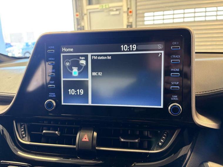 4.2" coloured TFT screen for multi-information display, Adaptive cruise control, Bluetooth connectivity, Electric power steering, Hybrid system indicator, Lane departure alert with steering control, Remote boot door release in cabin, Remote boot door release in key, Reversing camera, Road sign assist - RSA, Trip computer, Vehicle Stability Control (VSC), 6 speakers, Aux connectors + 12V front outlet, DAB Radio (Digital Audio Broadcasting), Toyota touch 2 multimedia system with 8" display, USB connector integrated with radio and CD player, Anti-jam protection on power windows, Auto high beam, Auto up and down function on all power windows, Automatic headlights, Automatic headlights cut-off, Black and body coloured rear bumper, Black front bumper, Black upper front grille, Body colour door handles, Body colour door mirrors, Boot door release with push button, Electric heated door mirrors, Follow me home headlights, Front and rear power windows, Front fog lights, Front spoiler, Honeycomb lower front grille, LED daytime running lights, LED front light guide, LED High mounted stop light, LED rear brake lights, LED rear combination lights, Manual headlight levelling, Manually retractable door mirrors, Noise reduction layer on front windows and windscreen, Power adjustable door mirrors, Rear spoiler, Rear tailgate, Rear window defogger, Rear window wiper, Reflective LED headlights, Shark fin antenna, UV-filter on driver and passenger windows, UV-filter on rear windows, 12v power outlet - front, 3 rear headrests, 3 spoke leather steering wheel, 60/40 split folding rear seat, Adjustable rear headrests, Adjustable speed limiter switch on steering wheel, Assist grips front and centre pillar, Audio and telephone switches on steering wheel, Black front door assist grips, Boot light, Chrome interior door handles, Cloth upholstery, Driver and front passenger personal light, Driver and front passenger Whiplash Injury Lessening seats, Dual zone automatic air conditioning, Front cupholders, Front head restraints, Front sports seats, Glovebox with internal light, Hard tonneau cover, Hooks for luggage holding net, Humidifying Nanoe air purifier, Illuminated entry system, Isofix attachments on outer rear seats, Leather gearshift, Light on driver sun visor, Light on passenger sun visor, Manual telescopic steering wheel, Manual tilt steering wheel, Manually height adjustable driver seat, Manually height adjustable front passenger seat, Manually reclining driver seat, Manually reclining front passenger seat, Manually sliding driver seat, Manually sliding front passenger seat, Microphone on front personal light, Mirror on driver sun visor, Mirror on passenger sun visor, Multimedia switches on steering wheel, Pollen filter, Shopping bag hooks, Slow opening on lower glovebox, 16 Disk front wheel brake, 3x3 point rear seatbelts, ABS+EBD+Brake assist, Electronic parking brake, ESP + traction control, Front and rear seatbelt reminder, Front passenger airbag on/off switch, Hill start assist control (HAC), Pre collision system with pedestrian detection, Pre-tensioners and force limiters, Rear door child safety locks, SRS Airbags - Driver + Front passenger, front side, front and rear curtain and driver's knee airbags, Toyota safety sense, Tyre pressure monitoring system, Glass-breaking alarm sensors, Immobiliser, Intrusion alarm, Intrusion sensor, Motion sensor alarm, Power door locks, Power passenger window lock, Remote central locking, Remote door lock, Black lower dashboard, Black lower driver dashboard, Black upper dashboard, Grey deco line on upper dashboard, Matte black centre console, Tyre repair kit,