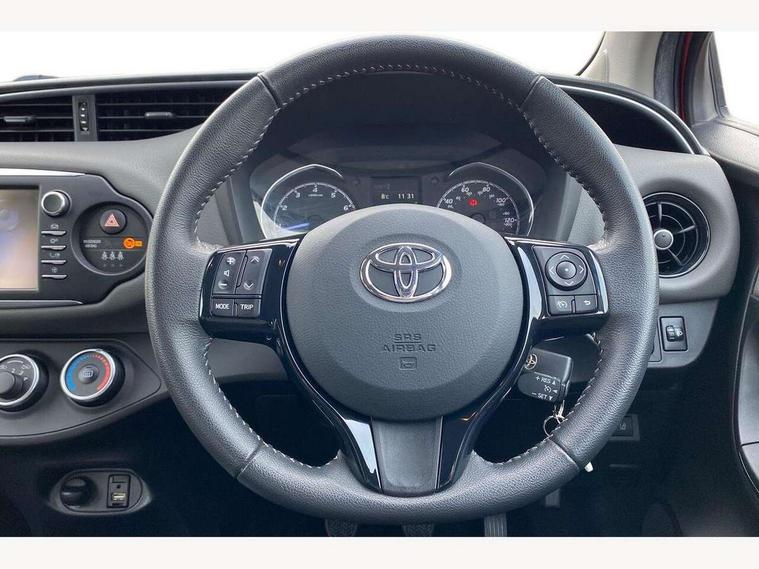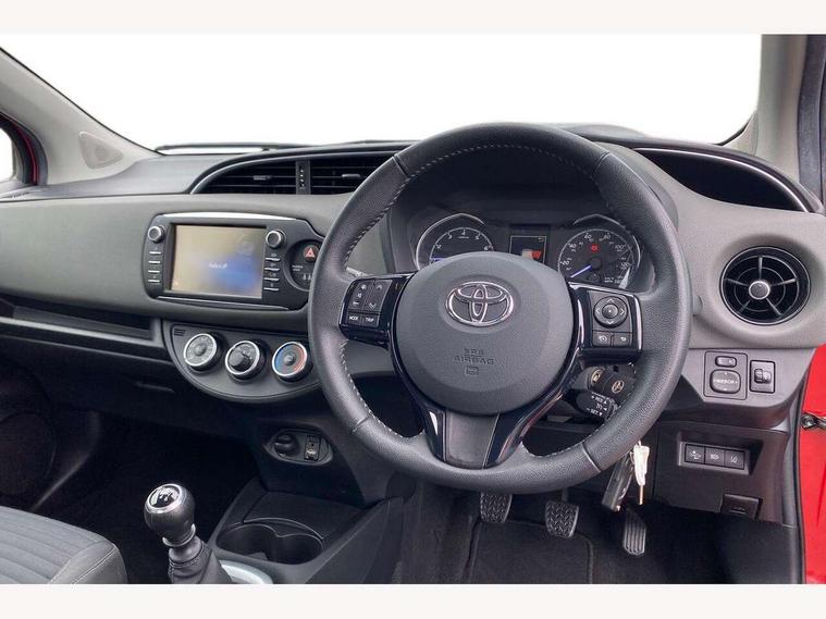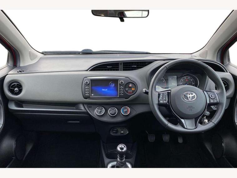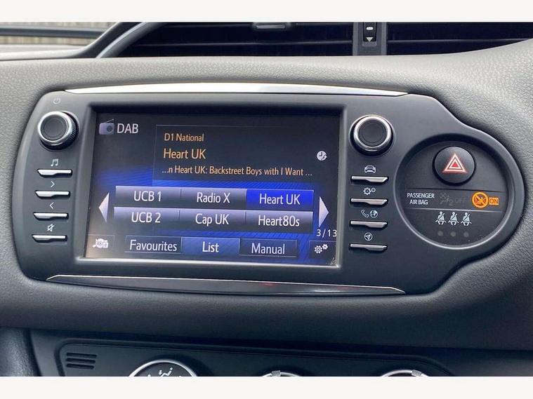 Bluetooth system, Cruise control, External temperature gauge, Fuel indicator with low level warning, Lane departure warning system, Lights on warning, Multi-information display, Power Steering, Rear parking sensor, Rear view camera, Road sign assist - RSA, TFT display screen, Touch 2 Go navigation system, Trip computer, 6 speakers, Auxiliary input socket, DAB Digital radio, Steering wheel mounted audio/telephone controls, Touch 2 touchscreen Radio with iPod connectivity, USB connection, 2 speed front wipers + intermittent wipe, Auto high beam, Auto up and down function on drivers window, Body colour bumpers, Body colour door handles, Body coloured door mirrors, Chrome fog light surround, Daytime running lights, Door mirror integrated indicators, Drivers window one touch up/down, Electric adjustable heated door mirrors, Electric front windows, Follow me home headlights, Front fog lights, Green tinted glass, Heated rear windscreen, Projector headlights, Rain sensitive windscreen wipers, Rear wiper, Turning signal integrated indicators in door mirrors, 3 spoke leather steering wheel, 60/40 split folding rear seat, Active headrests, Boot light, Cloth upholstery, Driver seat height adjust, Driver/passenger vanity mirrors with covers, Front cupholders x 2, Front map reading lights, Front seats with lumbar support, Glovebox, Height adjustable front head restraints, Height adjustable rear seat head restraints (x3), Isofix system on outer rear seats, Leather gear knob, Manual air conditioning, Rear cupholder, Removable rear parcel shelf, Sliding front seats, Tilt/telescopic steering column, 3 point seatbelts on all rear seats, ABS+EBD+Brake assist, Collision mitigation braking system, Curtain airbags, Driver and passenger airbags, Drivers knee airbag, Emergency brake light system (EBS), Front passenger airbag on/off switch, Front seatbelt reminder, Front side airbags, Height adjustable front seatbelts with pre-tensioners and load limiters, Hill start assist control (HAC), Passenger airbag deactivate switch, Rear child proof door locks, Rear seat belt reminder, Road sign information display, Seatbelt warning lamp and buzzer, Toyota safety sense including Road sign assist, Pre collision system, auto high beam and lane departure alert), Tyre pressure monitoring system, Vehicle stability control VSC + traction control, Engine immobiliser, Remote central locking, Instrument panel in grey, Space saver spare wheel,