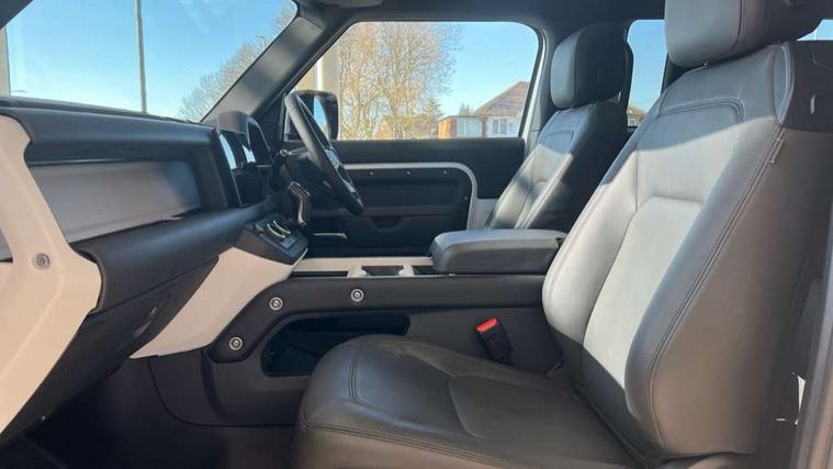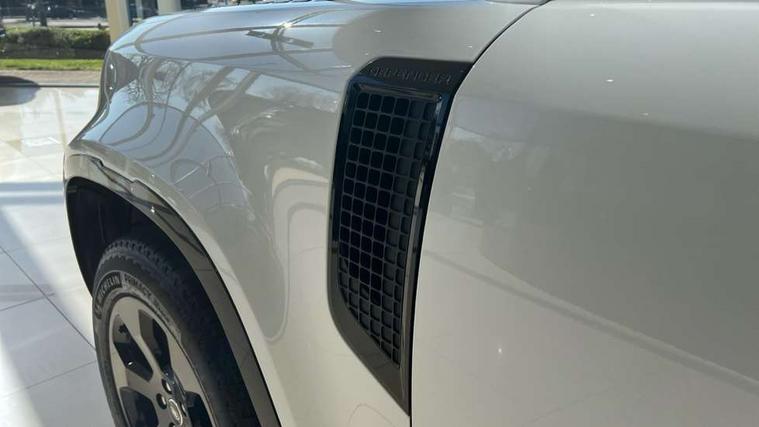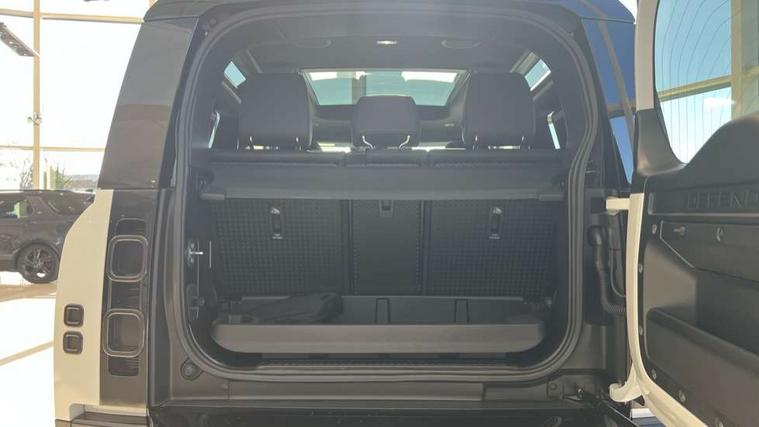 1 x USB-C (power only) & 1 x USB-C (power & data) in Row 1, 2 x USB-C in Row 2, 11.4" touchscreen, 360 degree parking aid, 3D Surround Camera with 360 View, 180 Rear View, Front Traffic Detection, Forward Vehicle Guidance, Tow Hitch Assist and clear sight Ground View, Adaptive cruise control, Android Auto, Apple CarPlay, Blind spot assist, Bluetooth system, Brake pad wear indicator, Clear exit monitor, Connected navigation pro, Driver condition monitor, Electric power assisted steering (EPAS), Interactive driver display, Lane keep assist, Push button start, Rear collision monitor, Rear traffic monitor, Traffic sign recognition with adaptive speed limiter, Trip computer, Wireless device charging, 8 speed automatic transmission, All wheel drive system, Twin speed transfer box, DAB Radio (Digital Audio Broadcasting), Meridian 700w surround sound audio system with 15 speakers, Pivi pro connected, Automatic headlight levelling, Automatic headlights, Black exposed rear recovery eyes, Body coloured bonnet, Centre high mounted stop light, Electric heated/power fold door mirrors with approach lights and auto dimming driver side, Electric windows with one touch open/close and anti-trap, Follow me home lighting, Front fog lights, Heated rear window with timer, Heated windscreen, Illuminated metal treadplates with brand name script, LED tail lights, Matrix LED headlights with signature DRL, Panoramic rear side glass, Privacy glass, Puddle lights, Rain sensing windscreen wipers, Rear fog lights, Rear wiper, Side hinged tailgate, Sliding panoramic roof, Standard tail door, Trailer stability assist, X-Dynamic badge, 12V power socket in loadspace, 3 seat bench in 2nd row, Alpine lights, Configurable cabin lighting, Durable rubber cabin flooring, Durable rubber loadspace flooring, Electric reach + rake adjustable steering column, Electrically adjustable steering column, Extended leather upgrade, Flat load space floor tray, Footwell lights, Front head restraints, Heated steering wheel, Loadspace cover, Loadspace Hook, Manual Tip & Slide front passenger seat, Multifunction steering wheel, Overhead stowage for sunglasses, Rear headrests, Rear ISOFIX, Rear reading lights, Row 2 seats with forward folding seat base, Single front passenger seat, Soft close tail door, Standard seat configuration, Storage glovebox, Sunvisors with illuminated vanity mirrors, Twin front cupholders, Non-smoker package, Online pack with data plan - Defender, 5 x 3 point seatbelts, ABS, Brake hold function, Cornering brake control (CBC), Customer configurable autolock, Driver and passenger airbags, DSC - Dynamic Stability Control, EBD - Electronic brakeforce distribution, Electric parking brake (EPB), Emergency brake assist, Emergency braking, ESP + traction control, Front airbags with passenger seat occupant detector, HDC - Hill descent control, Hill launch assist, Low traction launch, Remote for (e-Call, Optimised assistance call, InControl app, Climate, beep and flash and door), RSC - Roll stability control, Seat belt reminder, TPMS (Tyre pressure monitoring system), Alarm, Immobiliser, Intrusion sensor, Keyless entry, Locking wheel nuts, Secure tracker pro,