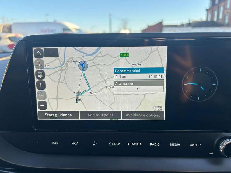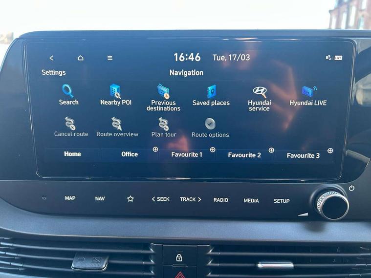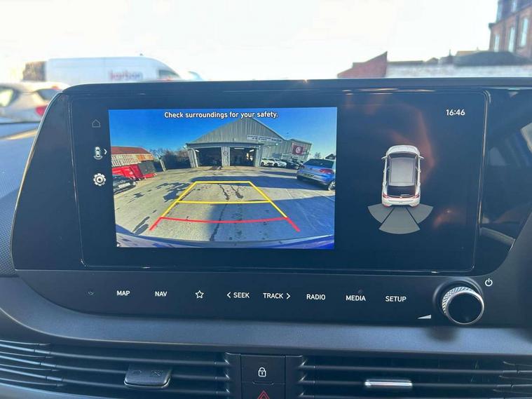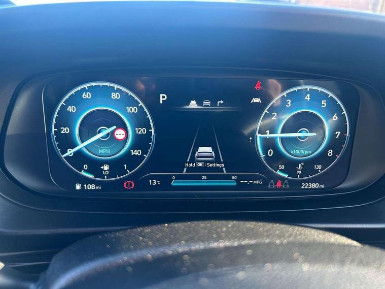 10.25" digital supervision cluster, 10.25" touchscreen centre console display satellite navigation including traffic messaging channel, map care and live services, Bluelink telematics, Bluetooth connectivity with voice recognition, Cruise control with speed limiter, Drive mode selector, Driver attention alert system, eCall emergency call system, Electric power steering, Emergency stop signalling system, Forward collision assist with pedestrian monitoring and cycle detection, Lane departure warning system with lane keep assist - LKAS, Phone connection with apple carPlay and android auto, Rear parking sensors, Rear view camera, Trip computer, Wireless charging pad, 2 front and 2 rear speakers with 2 tweeters, DAB radio, Steering wheel mounted audio/phone controls, USB and aux connection in front, Adjustable intermittent front windscreen wipers with aero wiper blade, Auto dimming rear view mirror, Automatic headlights with dusk sensor, Automatic windscreen wipers with rain sensor, Body colour bumpers, Body colour door handles, Body colour door mirrors with integrated indicators, Chrome finish window surround, Electric adjustable/heated/folding door mirrors, Electric front/rear windows with drivers one touch/anti-trap, Gloss black radiator grille, High beam assist, LED daytime running lights, LED headlamps, LED rear combination lights, Privacy glass - Rear windows and tailgate, Rear side wing doors, Rear spoiler with integrated LED brake light, Rear wash/wipe with intermittent wipe setting, Roof rails, Shark fin antenna, Static Cornering lights, Tinted windshield, 12V power outlet in front console, 3 rear seats, 60/40 split folding rear seat, Adjustable head restraints, Automatic climate control with defog system for front windscreen, Blue interior mood lighting, Cabin and luggage compartment interior lighting, Cloth seat trim, Driver's seat manual height adjustment, Front armrest/storage, Heated front seats, Heated steering wheel, Height/reach adjustable steering column, Illuminated driver/passenger vanity mirror, Interior front map reading light, Leather wrapped gear shift knob, Leather wrapped steering wheel, Luggage board, Satin chrome interior door handles, Single front passenger seat, 3 point front seatbelts with pre-tensioners, 3 point rear seatbelts, Airbags - front, front side and curtain airbags, Anti-lock braking system (ABS), Autonomous emergency braking, Childproof rear door locks, Electronic Stability Programme (ESP), Front and rear seatbelt reminder, Front passenger airbag deactivation switch, Height adjustable front seatbelts, Hill start assist control (HAC), Impact sensing auto door unlocking, Isofix child seat anchorage points - rear, Tyre pressure monitoring system, Vehicle stability management, Deadlocks, Immobiliser, Locking wheel nuts, Perimeter alarm, Remote control central locking, Speed sensitive automatic door locking, Black mono interior trim, 17" alloy wheels, Michelin Tyre brand, Tyre repair kit,