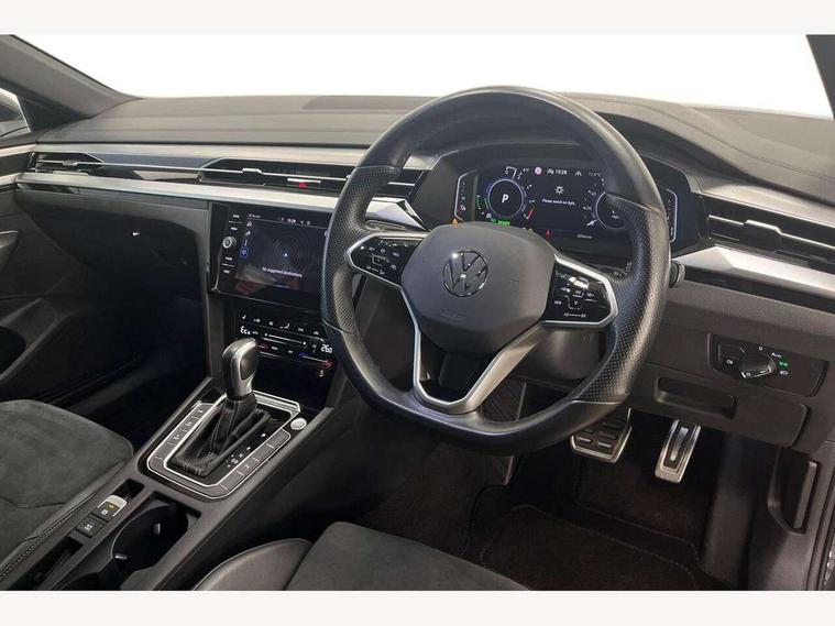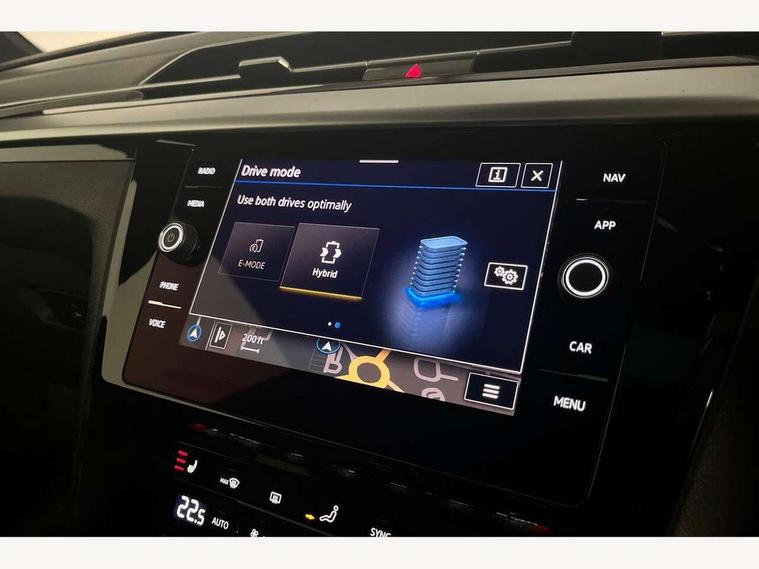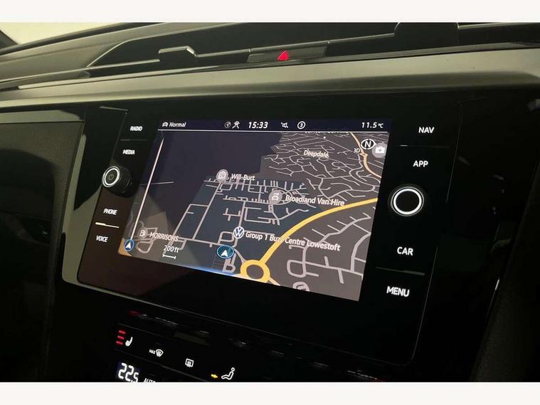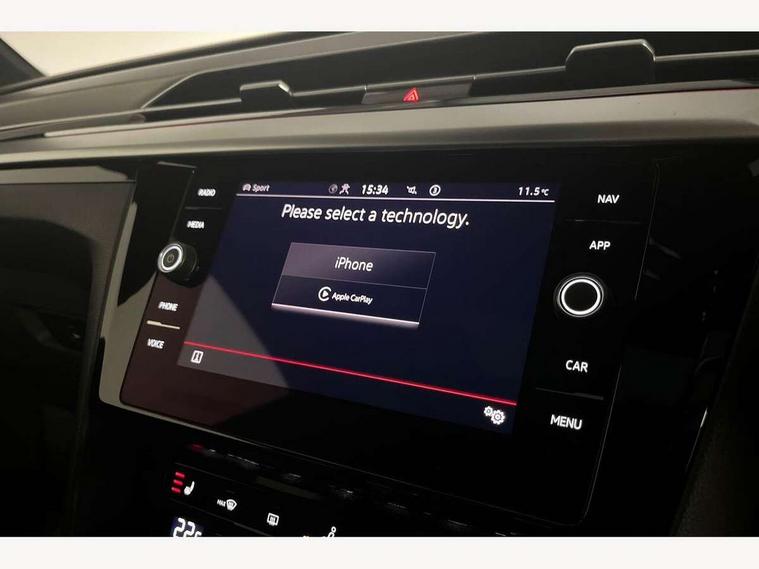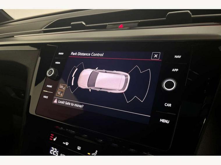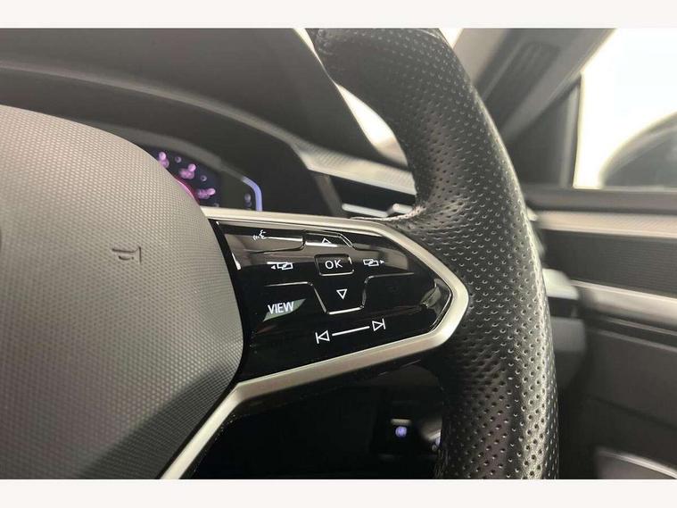 Adaptive cruise control (ACC) with speed limiter, front assist (reacting vehicles pedestrian and cyclists) and follow to stop, App connect including wireless Apple CarPlay, Camera for warning system, Digital cockpit with 10.25" high resolution TFT display screen with customisable menus and information, Driver alert system with fatigue detection, Driver profile selection including ECO function, Dynamic road sign display, eCall - Emergency call service for SOS calls to emergency response, Emergency assist, Hands free boot opening, Press and drive key, Progressive steering, Speedo and rev counter, electronic odometer, trip, service interval display and exterior temperature gauge, Travel assist - Lane keeping assist and traffic jam assist, Voice activation for telephone and navigation, 10 amp mode 2 charging cable, 16 amp mode 3 charging cable, Start/stop function with battery regeneration, Premium USB cable in choice of either Apple or Android smartphone compatibility, Auto dimming interior rear view mirror, Body colour door handles, Body colour side skirt, Body coloured top and matt black lower door mirrors with integrated indicators, Chrome plated radiator grille inserts and light switch surrounds, Chrome side window surrounds, Dynamic headlight range control, Electric folding door mirror, adjustable, heated with front passenger exterior mirror lowering function, Front and rear electric windows, Front and rear stainless steel door sill protection, Front windscreen washers and wipers with 4x interval delay, Heat insulating glass windscreen, Heat insulating side and rear windows, Heated rear windscreen, Heated windscreen washer jets, High level 3rd brake light, LED rear combination lamp with dynamic indicators, LED rear number plate lights, Panoramic sunroof with tilting and sliding including integrated roller blind, R Line design body coloured bumpers, Rain sensor, Rear fog lamp on one side and reversing lamp on both sides, Rear windscreen washer and wiper with interval delay, Tailpipes behind rear bumper, 12V socket in front centre console, 12V socket on rear of front centre armrest, 3 rear head restraints, 30 colours options interior ambient lighting, 60:40 split folding rear seat backrests with centre armrest, Air care climatronic 3 Zone electronic air conditioning with automatic air recirculation, Black roof lining, Chrome trim on upper and lower air vents extending across cockpit, Driver and front passenger sunvisor with vanity mirror, Front + rear carpet mats, Front cupholders x 2, Front footwell illumination, Front sports comfort seats, Glovebox, Heated front seats, Height/reach adjust steering wheel, Isofix child seat preparation easy fit for two outer rear seats, Luggage compartment lighting, Removable luggage compartment cover, Split folding front seat backrest with front centre armrest, Stainless steel pedals, Two LED front reading light, 3 rear three point seatbelts, ABS+EBD+Brake assist, Driver airbag and front passenger airbags with deactivation switch including driver knee airbags, Electronic parking brake, Electronic stability control (ESC) and Electromechanical brake booster, Front disc brakes, Front side airbags with curtain airbags, Hill start assist, Pro active occupant protection to detect critical situations with elevated accident potential from the front, Rear disc brakes, Three point height adjust front seatbelts + pretensioners, Two tone horn, Tyre pressure loss indicator, Warning buzzer for seatbelts if unfastened, Warning triangle, Alarm with interior protection with deactivation via infotainment system, Electronic engine immobiliser, Keyless entry system including start/stop button on centre console, Aluminium decorative inserts, Chrome trim on lower doors in front and rear, Leatherette insert on door and side trim panel in foam film, Piano black decorative inserts in centre console, 19" Montevideo alloy wheels with Airstop tyres + anti-theft wheel bolts, Tyre mobility kit,