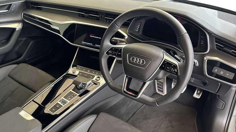 Audi connect safety and service (e-call), Audi connect with Amazon Alexa Integration, Audi drive select, Audi parking system plus - acoustic and visual park assist system for front and rear, Audi virtual cockpit, Automatic start/stop system with coasting functionality, Bluetooth interface, Camera based traffic sign recognition, Lane departure warning system, MMI navigation plus with 10.1" and 8.6" touch screens, Power operated tailgate, Progressive steering, Rear view camera, Service interval indicator, Smartphone interface includes wireless Apple carplay/Android Auto, Voice control system, Sports suspension, Audi front music interface, Audi sound system, Auxiliary input socket, DAB Digital radio, USB connection, Audi beam, Black roof rails, Body colour rear roof spoiler, Electric front/rear windows, Electrically adjustable heated and folding + automatically dimming exterior mirrors with memory function, Frameless auto dimming interior rear view mirror, Front intermittent wipers, Heat insulating darkened glass in side and rear windows, Heat insulating glass in windshield, LED rear lights with dynamic indicators, LED signature front daytime running light, LED third brake light, Matrix LED headlights, Matt black rear diffuser with diffuser strip and tailpipes in chrome, Matt black side air intake grille with inlay in matt aluminium, Omission of output/technology badging, Privacy glass, Radiator grille in anthracite black matt, single frame in chrome and horizontal struts in matt aluminium silver, Rain and light sensors, Rear side wing doors, Rear wiper, 2 zone deluxe electronic climate control, 40/20/40 split folding 3 rear seat bench in 3 parts with rear centre armrest, Audi phone box light, Black cloth headlining, Electrically adjustable front seats including seat height, fore/aft position, backrest angle and 4-way lumbar with memory for driver's seat, Front and rear floor mats, Front centre armrest, Front head restraints, Heated front seats, Height/reach adjust steering wheel, Illuminated door sill trims with S logo, Illuminated sun visors with vanity mirrors, Leather gear knob, Luggage compartment system, Rear headrests, Single front passenger seat, Stainless steel pedals and foot rest, Tool kit and car jack, Black styling package plus - A6 Black edition, LED Interior Ambient Lighting Pack - A6, Non smoking pack - A6, S line exterior style pack - A6, 3 point seatbelts on all seats, Airbags - Front side, front and rear including head, Audi pre-sense front, EBD - Electronic brakeforce distribution, Electromechanical parking brake, Electronic Stability Control (ESC) including ABS, ASR and EDL, Extended pedestrian protection measures, ISOFIX child seat mounting for front passenger seat and ISOFIX child seat mounting with Top Tether for outer rear seats, Manual child proof rear door locks, Seatbelt monitoring, Tyre pressure warning light, Warning triangle and first aid kit, Anti theft alarm with tow away protection, Anti-theft wheel bolts and wheel loosening detection, Immobiliser, Keyless Go, Remote central locking, Carbon twill inlays,