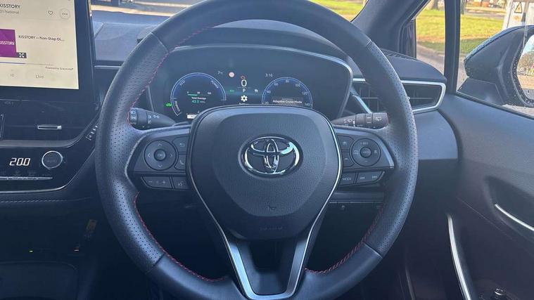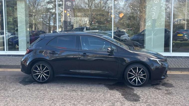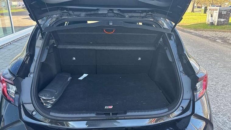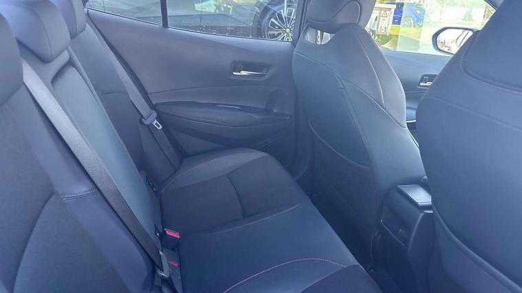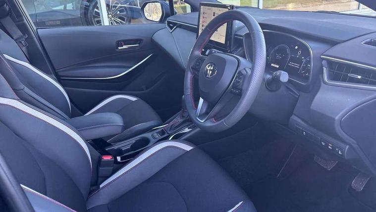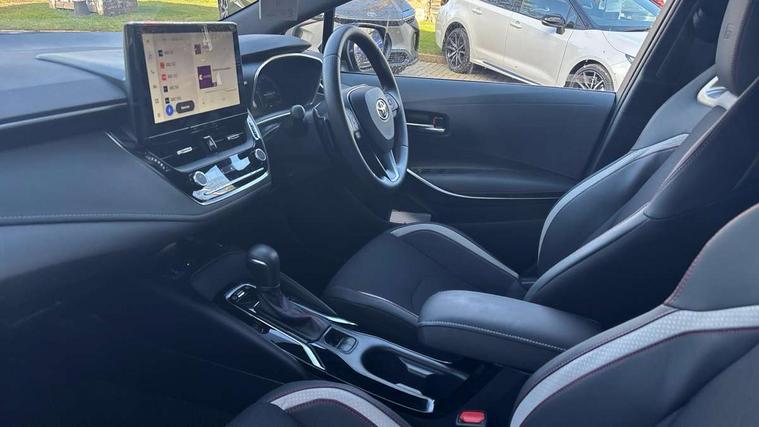 10.5" Multimedia display screen, Bluetooth telephone connectivity, Connected car functionality upgrade, tracker, remote status and e-care, Drive mode select (Eco, Normal), E-call, Electrically assisted power steering, EV drive indicator, Front and rear parking sensors, Full Digital 12.3" TFT Digital Combimeter, Intelligent clearance sonar, Key reminder warning, Lane Departure Alert (LDA) switch on steering wheel, Memory on adjustable speed limiter, MyT connected services, Proactive driving assist (PDA), Reversing camera, Smart entry and push button start with GR Logo, Smartphone integration with Apple CarPlay and wired android auto, Tailgate, Toyota remote services, Toyota smart connect navigation, Wireless charger, Gasoline particulate filter, Vehicle Stability Control (VSC), 6 speakers, AM/FM radio, DAB Digital radio, Front USB-C in centre console, Front USB-C in dashboard, Smart voice assist/ Voice recognition, USB and Aux in connectors + 12V front outlet, Anti-jam protection on power windows, Auto up and down function on all power windows, Automatic folding mirrors, Automatic headlights with high beam assist, Black centre and side air vents, Black toyota logo in front, Body coloured bumpers, Body coloured door mirrors, Body coloured outside door handles, Dark chrome lower grille, Electrochromatic mirror, Follow me home headlights, GR Sport dark chrome front mesh grille and black rear grille, GR Sport exclusive under guard, GR sport scuff plates, LED daytime running lights, LED dual beam projector headlights, LED front fog lights, LED High mounted stop light, LED rear combi lights with LED lightguide, Manual headlight levelling system, New grille pattern, Noise reduction layer on windscreen, Piano black diffuser, Power adjustable heated door mirrors, Power front windows, Power rear windows, Privacy glass with UV filter, Rain sensing wipers, Rear side wing doors, Rear window defogger, Rear window wiper, Reverse tilting door mirrors, Rocker and door lower moulding, Roof spoiler, Satin chrome insert on front air vents, Satin chrome insert on front door assist grips, Satin silver front spoiler, Shark fin antenna, Tailgate release with push button, Time adjustment on intermittent wiper, Turning signal integrated indicators in door mirrors, Unique lower skirt, Unique side rocker with black insert, UV-filter on driver and passenger windows, 2 Shopping bag hooks in luggage compartment, 3 rear headrests, 3 seat bench in 2nd row, 3 spoke steering wheel with satin insert and red stitching, 4 tie down hooks in luggage compartment, 60/40 split folding rear seat, Adaptive cruise control (ACC) switch on steering wheel, Adjustable speed limiter switch on steering wheel, Audio, multimedia and telephone switches on steering wheel, Black armrest on centre console box, Black gear shift console, Boot light, Boot underfloor storage, Centre room light, Driver and front passenger personal light, Driver and passenger assist grip, Driver and passenger seatback pockets, Driver and passenger sun visor with mirror and light, Dual zone automatic air conditioning with ECO mode switch, Electric lumbar support for passenger, Fabric/synthetic leather upholstery, Front and rear cup and bottle holders, Front door pockets, Front head restraints, Front passenger seat, Front sliding synthetic leather armrest, Gear knob, GR Sports seats with partial leather bolsters, Heated front seats, Illuminated entry system in room lamp, ISOFIX seat fixing (2 fixings on rear outer seats), Manual height adjustable for driver and front passenger seat, Manually tilt with sliding driver and front passenger seat, Nanoe-X air purifier, Paddle shifts, Parcel shelf, Pollen filter, Power adjustable lumbar support on driver seat, Power window switches with satin chrome inserts, Rear armrest with 2 cupholders, Rear passenger coat hooks (2), Red stitching on gear shift, Remote air conditioning, Satin chrome inside door handles, Satin chrome surround on speedometer, Sliding armrest on centre console box, Slow opening glovebox with lights, Textile floor mats, Tilt/telescopic steering column, Voice recognition switch on steering wheel, Whiplash Injury Lessening (WIL) feature (active headrest) for seats, White ambient lighting on open tray and front cup holder, Toyota safety sense 3 pack - Corolla, 3x3 point rear seatbelts, Adjustable driver and front passenger seat belt extender to top anchor point, Anti lock braking system + Electronic brake force distribution, Brake assist function, Child locks on rear doors, Downhill Assist Control (DAC), Electronic parking brake, Emergency brake light signal (EBS), Front passenger airbag on/off switch, Front seatbelt reminder, HAC - Hill start assist control, Rear seat belt reminder, Seatbelt pretensioners and force limiters, Supplemental restraint system (SRS) 7 airbags - dual driver, dual side curtain, side impact and driver knee airbags, Traction control, Tyre pressure warning system, Acoustic vehicle alert system (AVAS), Alarm with motion sensor and immobilizer, Power passenger window lock, Remote central locking + deadlocks, GR Sport interior and exterior styling, Satin chrome dash trim, Soft touch texture on upper dashboard, Stitching on lower dashboard, 18" 10 spoke black machined face alloy wheels, Tyre repair kit, Unique wheel finish with red wheel cap,